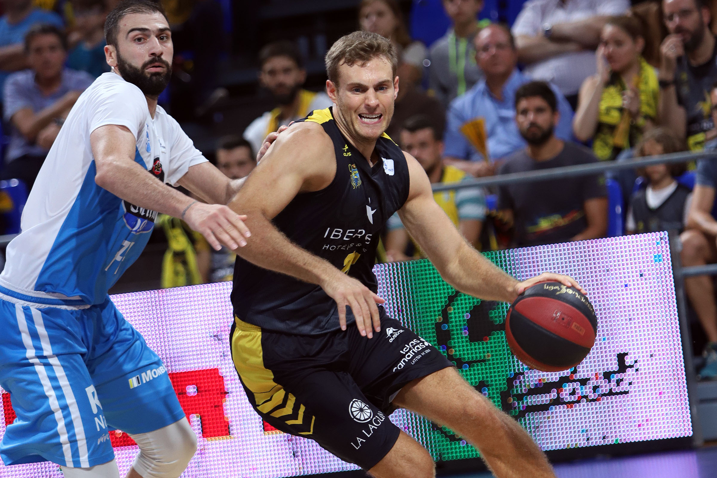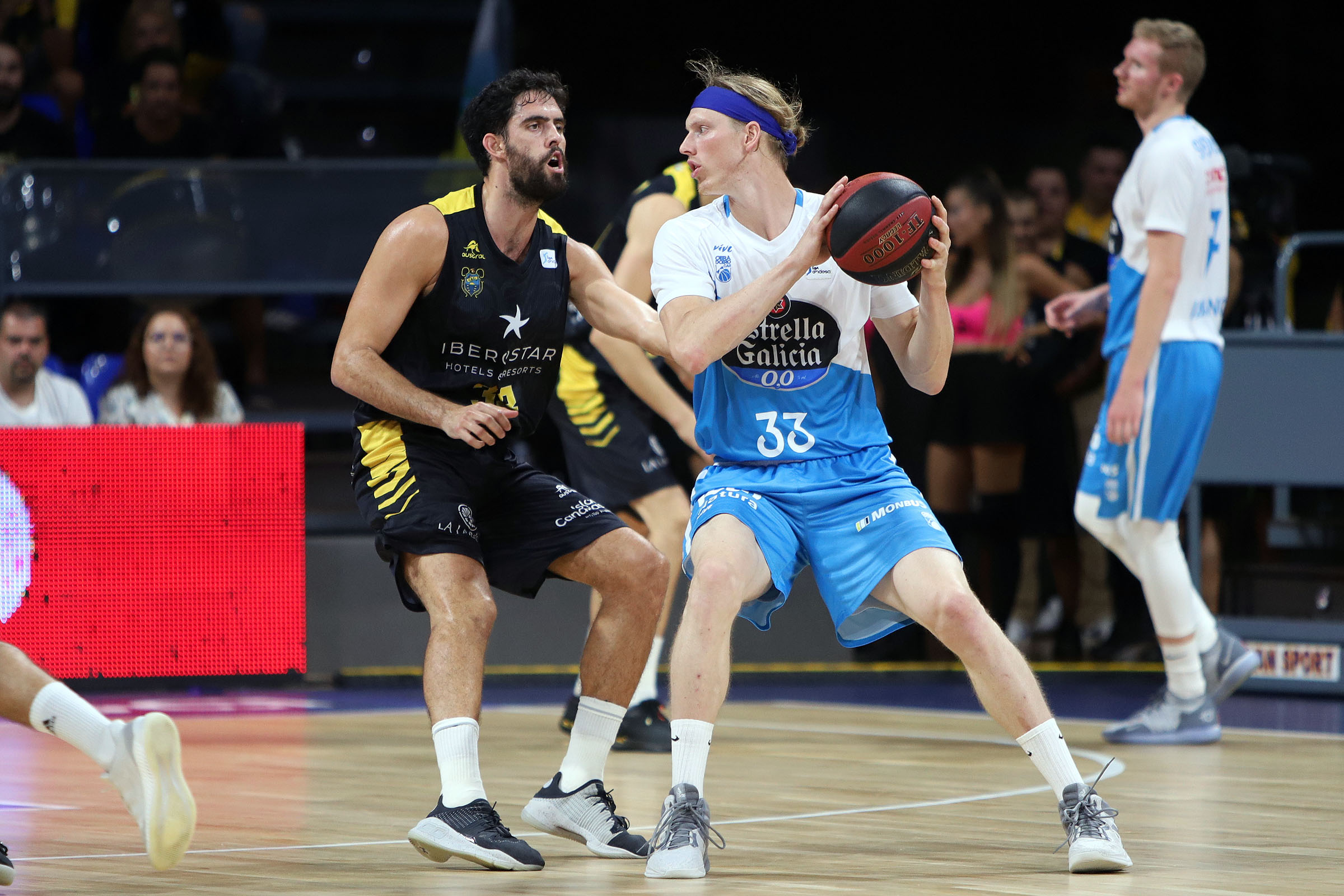 Fue entonces cuando surgió la mejor cara de Nico Brussino lo que, unido al buen trabajo defensivo del bloque, hizo que el Iberostar Tenerife cogiera las riendas del partido con contundencia. Con Vasileiadis, una de sus principales fuentes ofensivas, totalmente eclipsado, primero por San Miguel y luego por Staiger; y sin que su pareja de bases pudiera imponer el ritmo que más convenía a los suyos, el Obradoiro se quedó en solo seis puntos durante el segundo cuarto para irse nueve abajo al descanso (32-23).