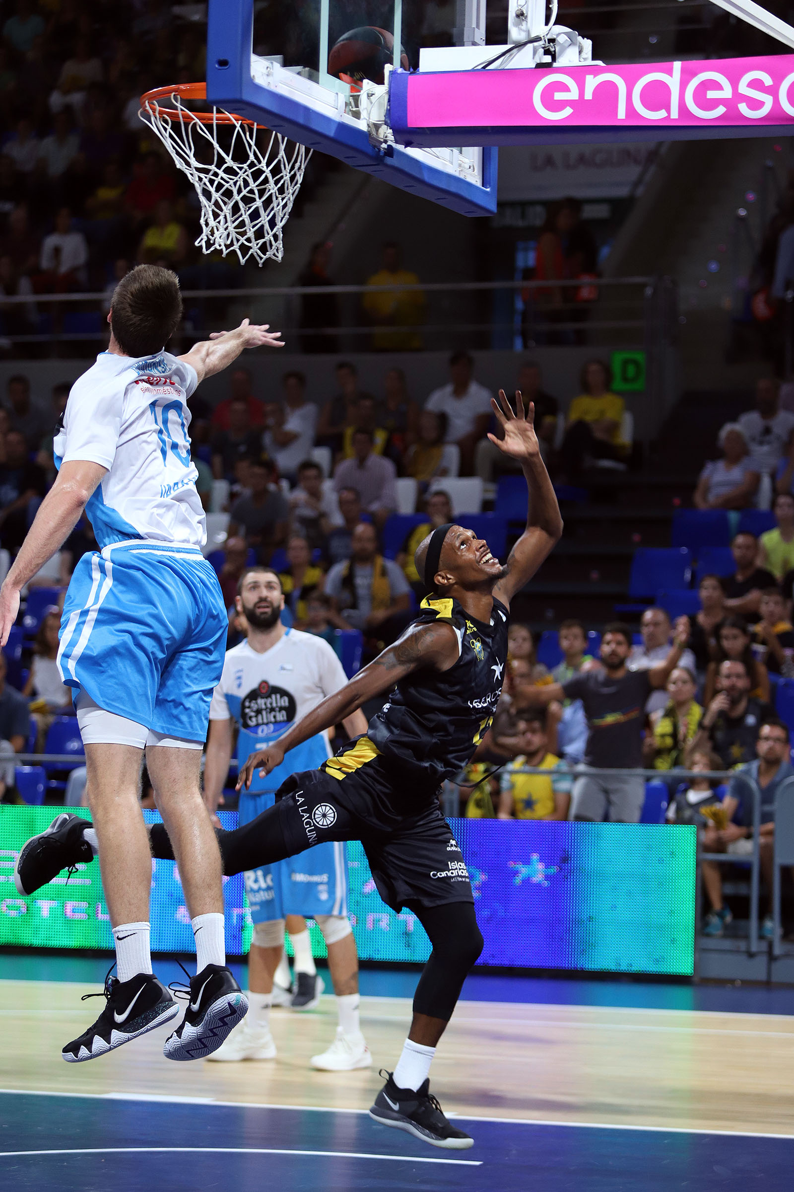 sábado, 6 octubre, 2018 - 10:10¡No en nuestra casa! El Iberostar Tenerife exhibió este sábado noche su versión más sólida para superar al Monbus Obradoiro (78-52) y sumar su segunda victoria de la temporada en tres partidos. La fortaleza defensiva de los aurinegros, que firmaron la tercera mejor marca atrás de su historia en la élite, la paciencia y su acertado criterio para leer bien el encuentro e ir acumulando argumentos a su favor conforme pasaban los minutos, tumbaron a un equipo, el gallego, que llegaba invicto a la Isla.