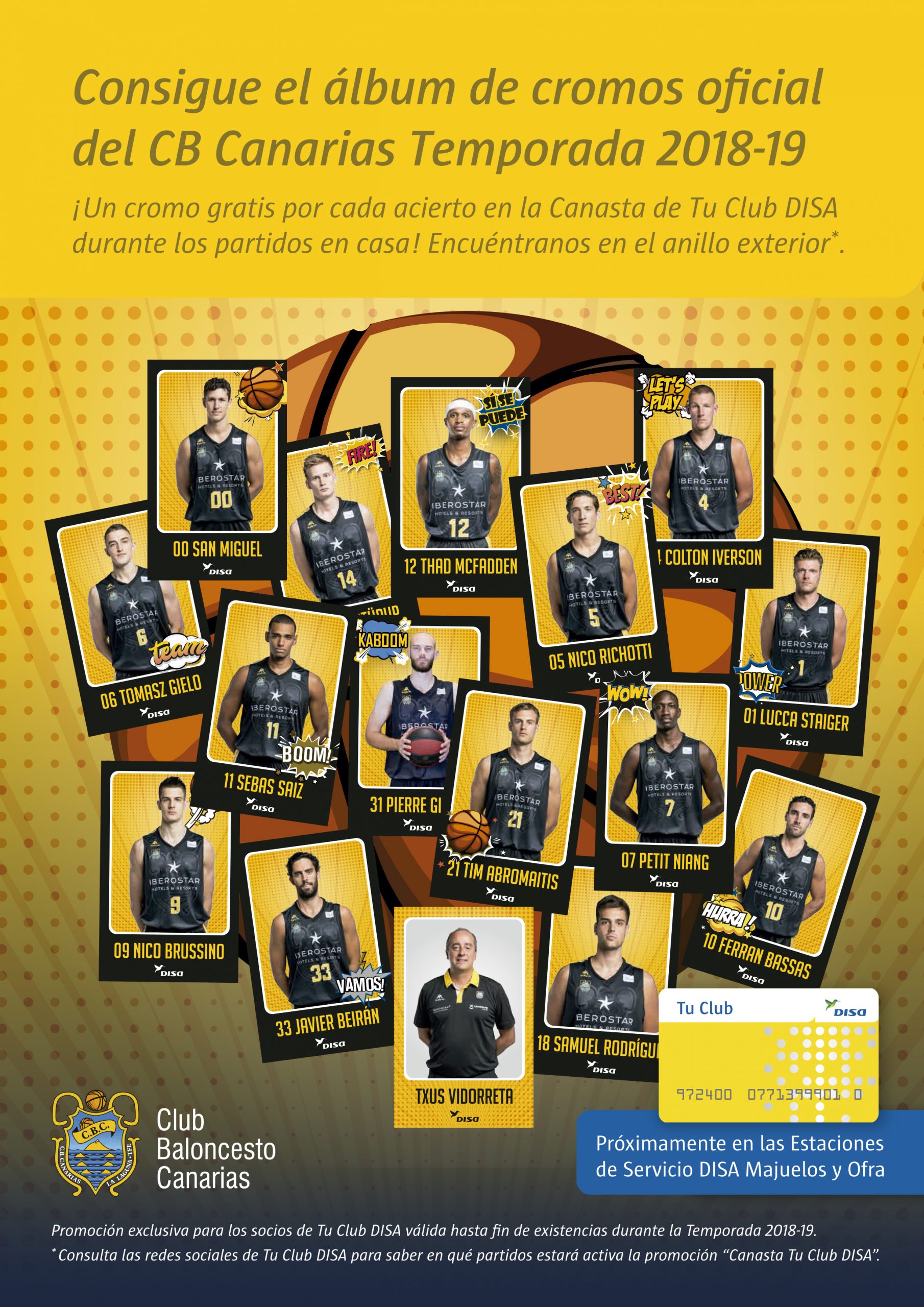 Cada aficionado que acierta a encestar recibe como regalo un cromo del jugador o técnico que ha marcado previamente la ruleta. Así hasta completar un atractivo álbum en el que figuran los miembros del Iberostar Tenerife 2018-19.