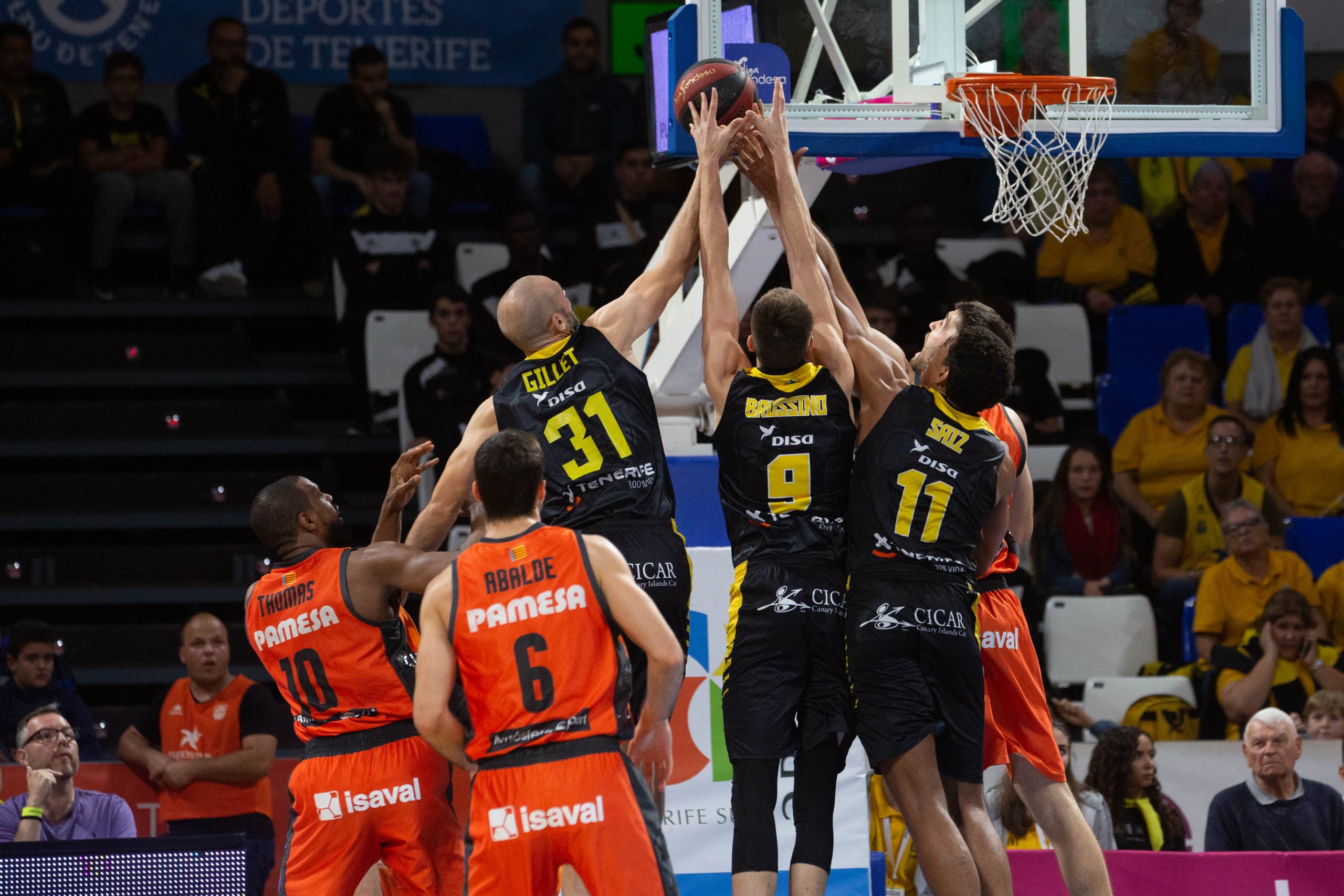 Con un Santiago Martín totalmente volcado con la causa, el equipo aurinegro volvió a cuajar un gran ejercicio colectivo para desactivar desde la defensa a un Valencia que no supo como contrarrestar el vendaval canarista tras el receso. El buen trabajo atrás, el criterio a la hora de circular el balón para otra tarde notable desde el 6,75 (15/32) y el buen hacer para ganar la batalla de los interiores, explica en parte el triunfo de los tinerfeños.