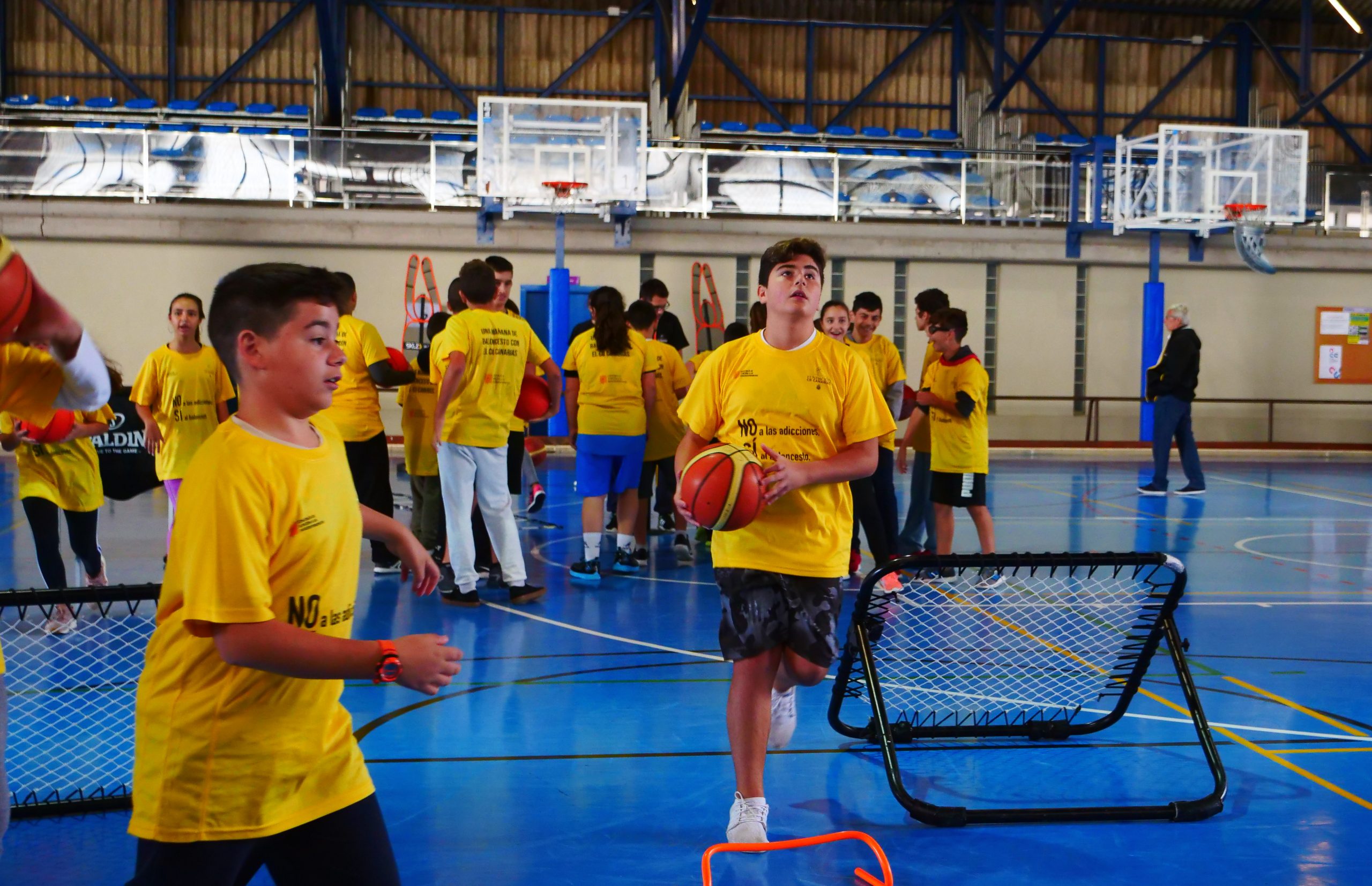 viernes, 23 noviembre, 2018 - 02:11Más de 120 niños de tres institutos de La Laguna participaron este viernes en la actividad lúdico deportiva “Una mañana de baloncesto con el CB Canarias”, iniciativa incluida en el proyecto “NO a las adicciones, SÍ al baloncesto” que desarrolla la entidad canarista en convenio con la concejalía de Atención a las Drogodependencias del Ayuntamiento lagunero en las instalaciones deportivas de la Universidad de La Laguna (ULL).