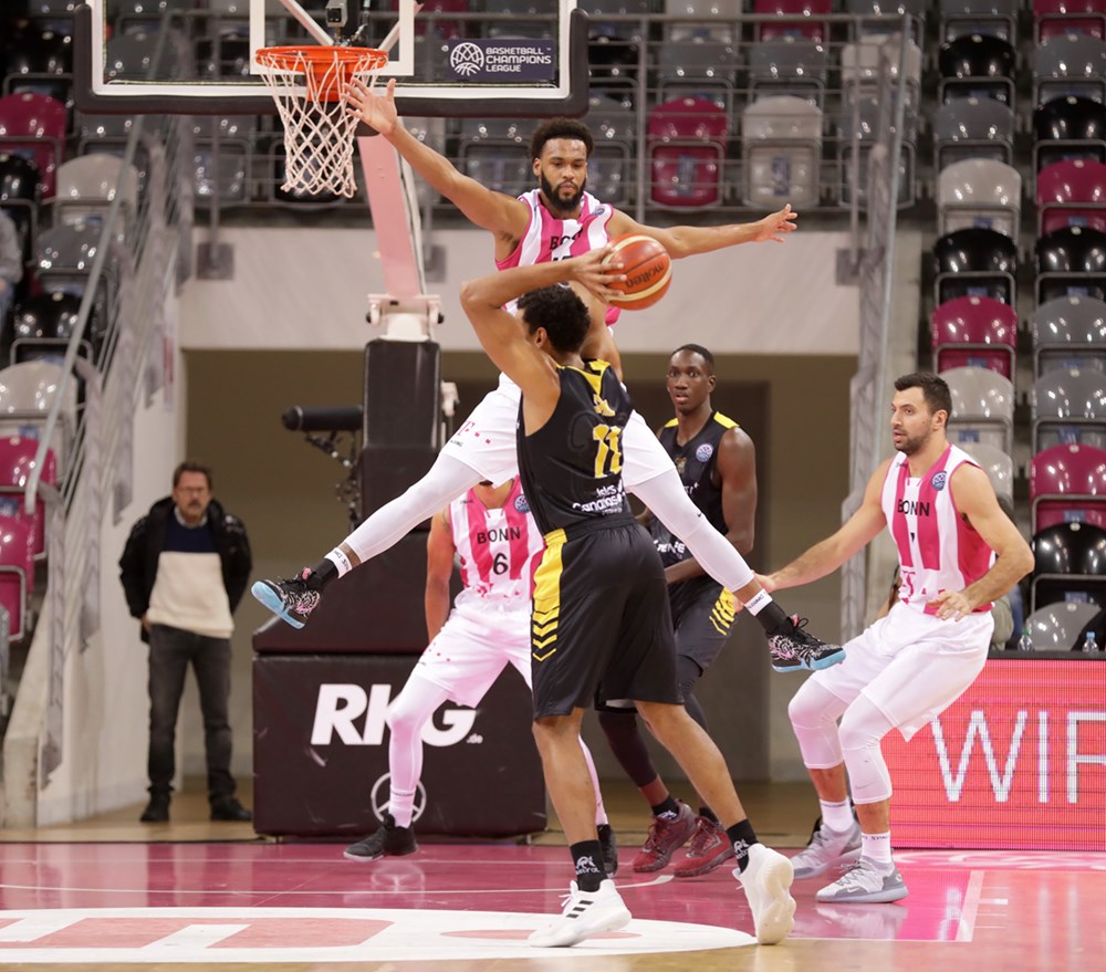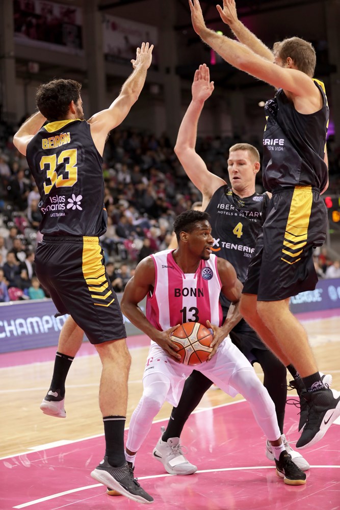 El caso es que el Telekom Bonn también jugó sus bazas. Di Leo sacó provecho de sus continuas visitas al tiro libre y los alemanes comenzaron a sumar de tres en tres. Sufría entonces sus peores minutos el Iberostar Tenerife, al que le costaba jugar con la fluidez deseada en ataque. Sin embargo, y ya con la rotación exterior aún más mermada por los problemas físicos de San Miguel, el conjunto insular respondió con entereza a las dificultades (63-53).