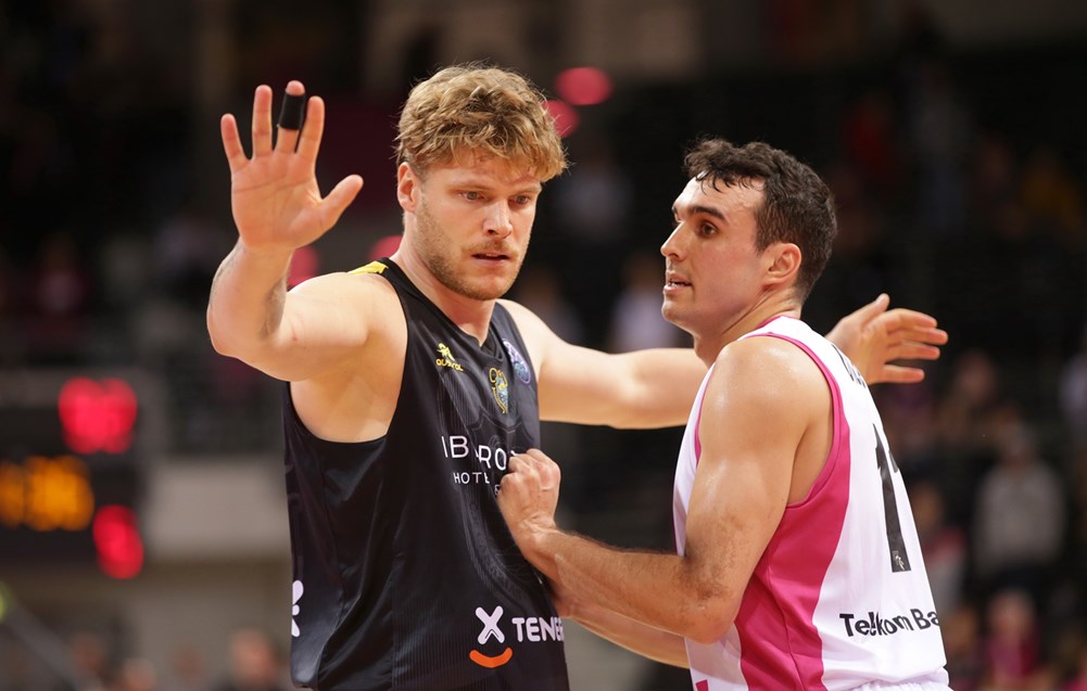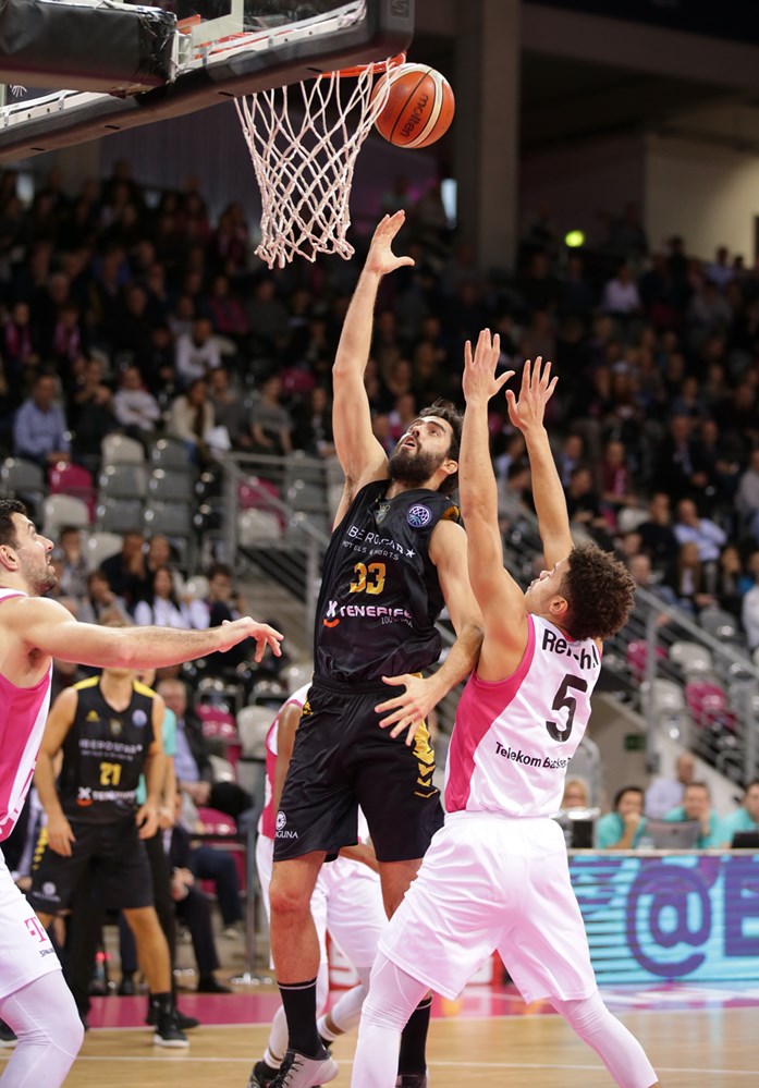 martes, 11 diciembre, 2018 - 11:12Victoria contra viento y marea. El Iberostar Tenerife se impuso en la prórroga a un buen Telekom Bonn (92-99), no sin tener que superar antes un buen puñado de contratiempos. El grupo de Txus Vidorreta sacó adelante un partido que se le puso realmente cuesta arriba (63-53, min. 27) tras tener que sobreponerse a las lesiones de Thadd McFadden cuando apenas habían transcurrido tres minutos (sufrió un golpe en el cuádriceps izquierdo, pendiente de pruebas para valorar el alcance); y de Rodrigo San Miguel, con un esguince en el tobillo izquierdo, que también le impidió jugar en la recta final.