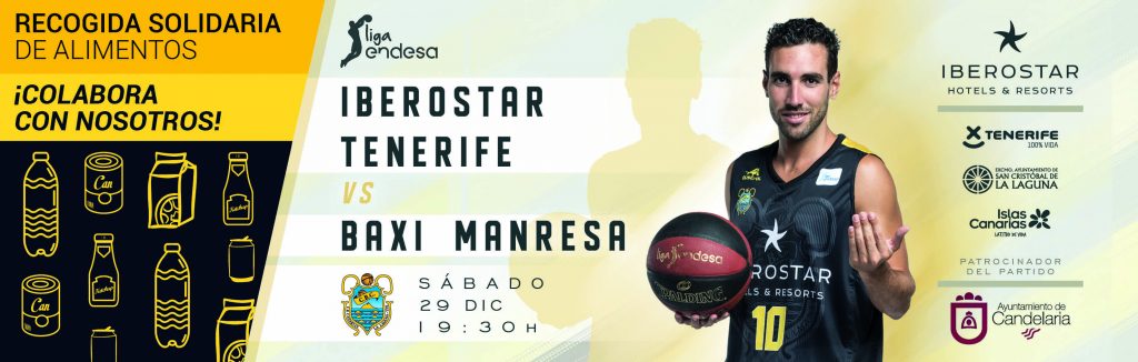lunes, 24 diciembre, 2018 - 12:12El Iberostar Tenerife promueve para este sábado coincidiendo con la visita al Santiago Martín del Baxi Manresa (19:30 horas), en choque correspondiente a la 14ª jornada de la Liga Endesa, una recogida de alimentos no perecederos, en colaboración con la Cofradía de Penitentes de la Misericordia Santo Domingo de Guzmán de La Laguna.
