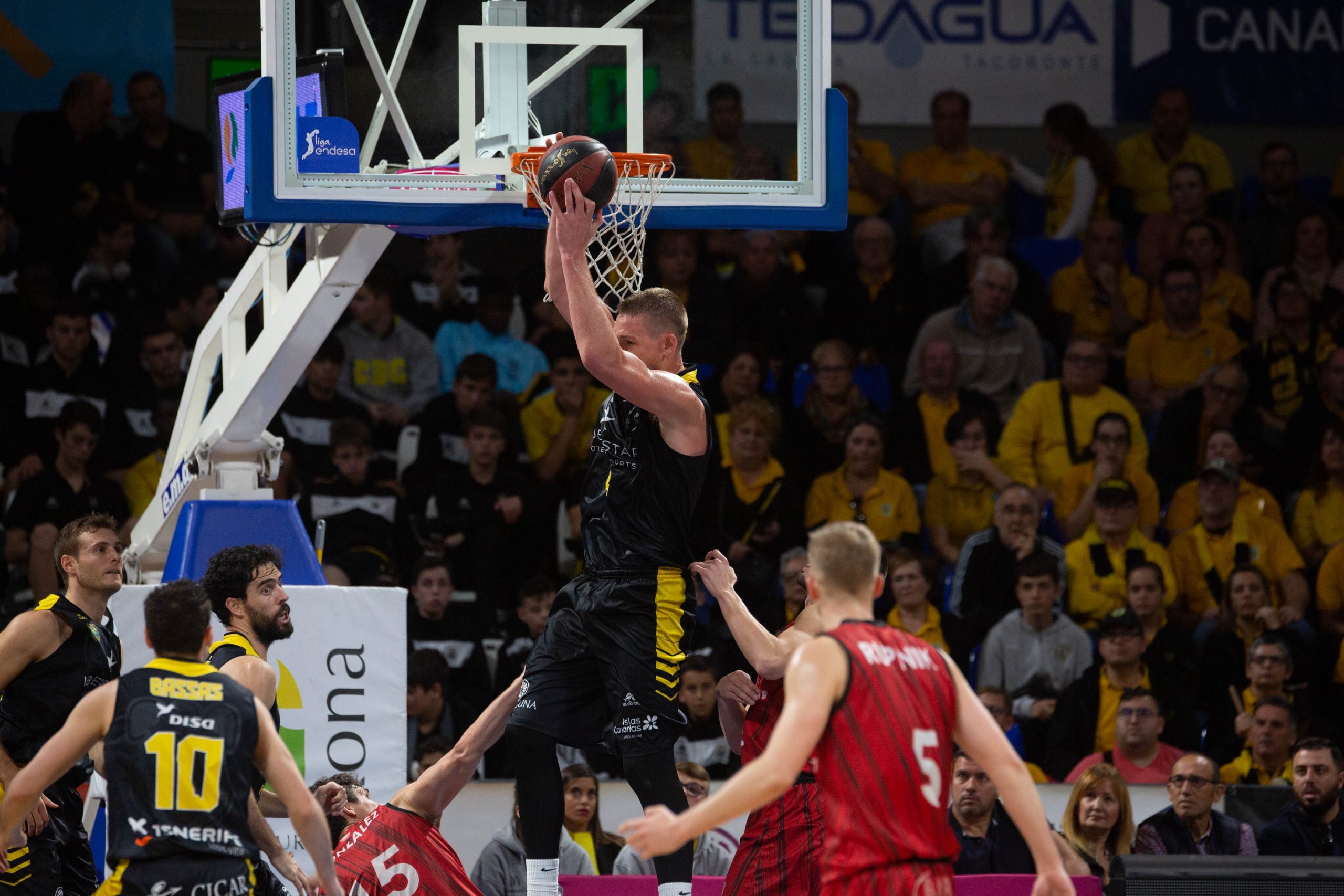 El recital defensivo de los insulares tras la pausa, el control del rebote y el criterio para mover el balón y buscar siempre buenas situaciones de tiro (27 asistencias y un 13/24 en triples para una valoración global de 125 créditos) explican en parte la exhibición colectiva de este domingo (hasta seis jugadores acabaron en dobles dígitos de valoración). En definitiva, otra faena coral made in Canarias, que contó además con el inestimable respaldo de la fiel afición aurinegra, que volvió a colgar el cartel de “no hay billetes”, y festejó el triunfo de los suyos por todo lo alto.