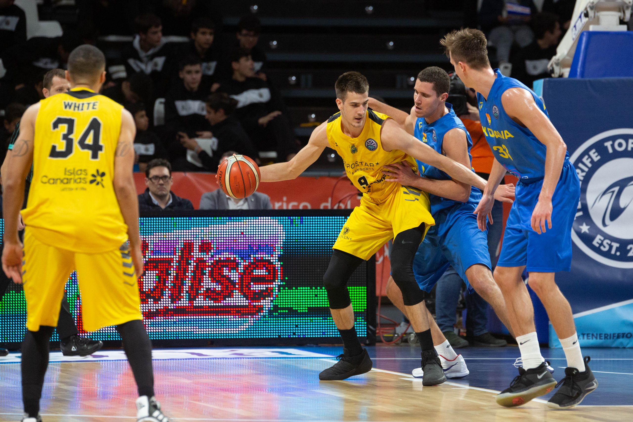 La excelente puesta en escena de un todoterreno Pierre Gillet (36 de valoración e infalible en el triple, con un 4/4) y el poder interior de Mamadou ‘Petit’ Niang en los primeros compases, ya advirtieron de que los tinerfeños no darían pie a ningún tipo de relajación (29-8, min. 10). Tres triples de Davin White al poco de iniciarse el segundo cuarto, la fortaleza atrás de los aurinegros y su hegemonía bajo tablero (Saiz y Gillet se fueron hasta los 14 rechaces cada uno) no hicieron más que prolongar la superioridad de un Iberostar Tenerife que ya ganaba por un contundente 54-19 al descanso.