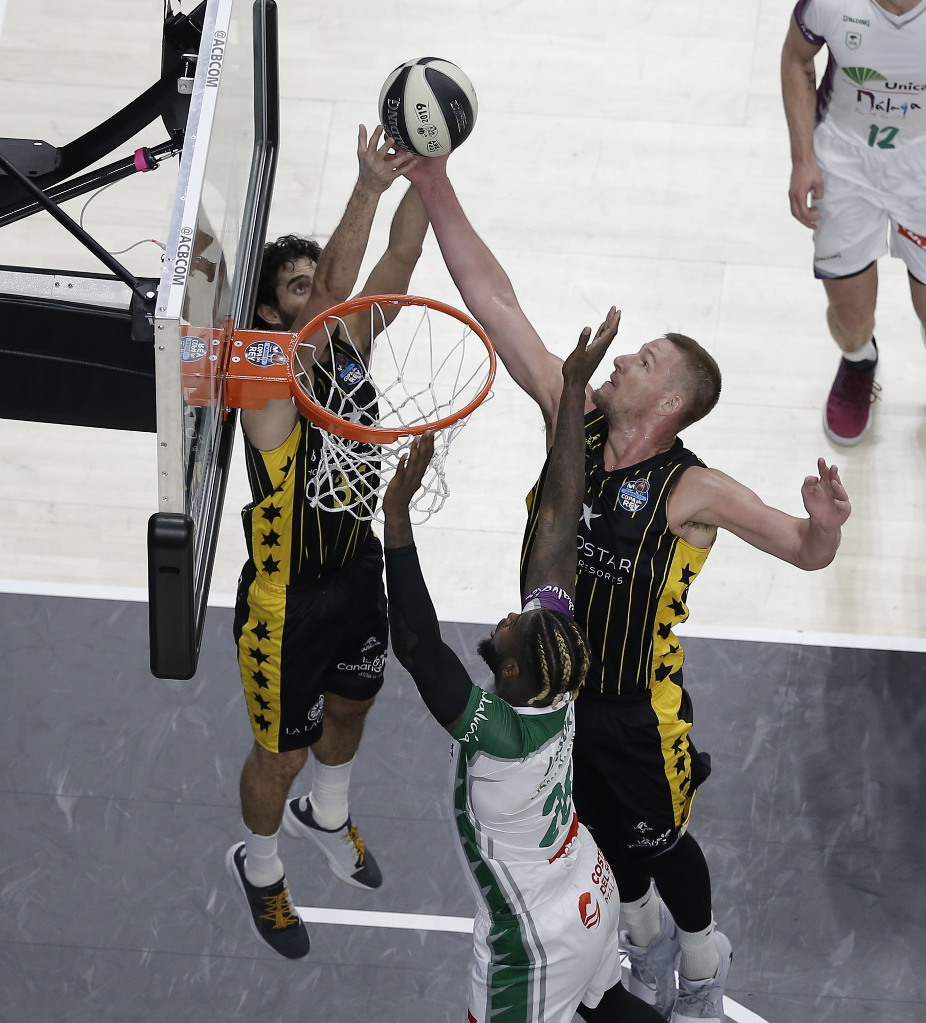 Es más, los insulares opositaban cada vez con más argumentos a la victoria. El partido notable de Bassas se convirtió en sobresaliente; Javi Beirán dejó varios canastones para la causa; Colton Iverson se hizo el dueño de la pintura, muy bien escoltado por un partido muy serio de Niang y Saiz en las dos zonas; y las conexiones aurinegras se sucedían una detrás de otra ante un Unicaja impotente (55-46, 64-51, 66-56).