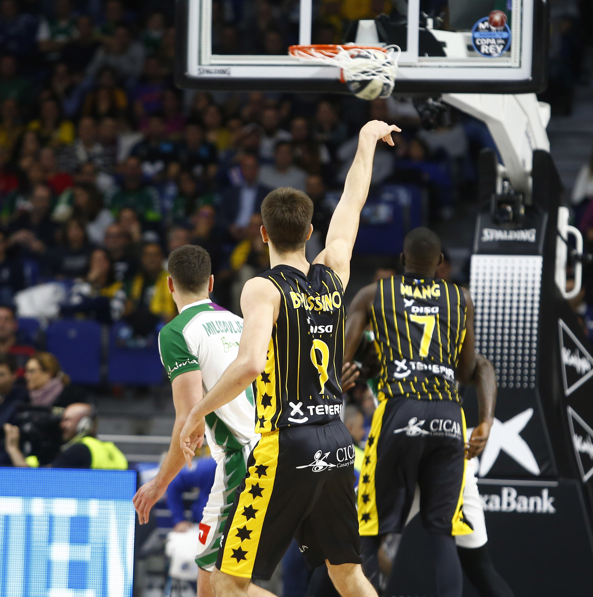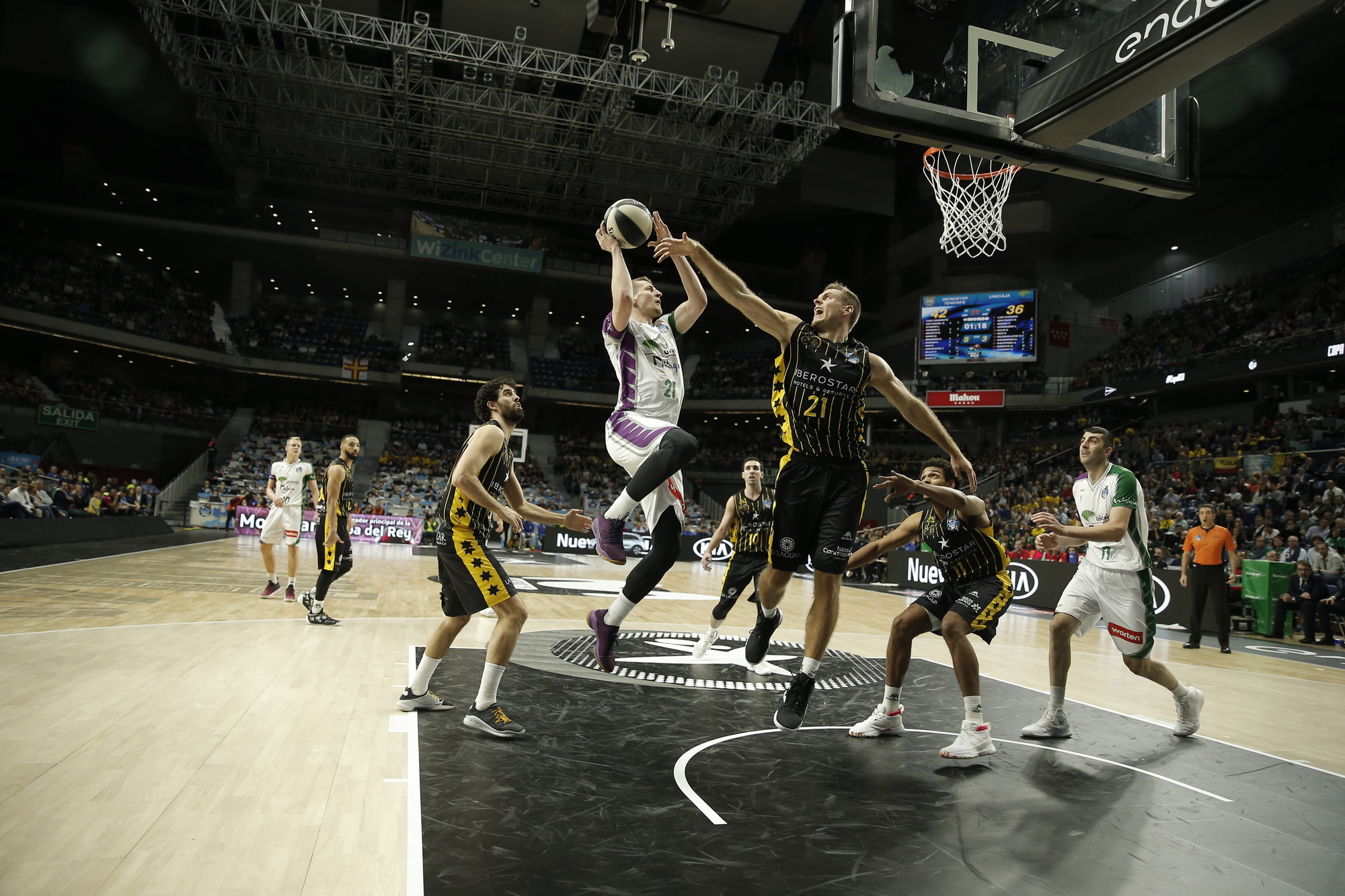 El partido crecía a favor de corriente de los aurinegros que acabaron refrendando todo lo bueno acumulado hasta entonces. Un triple de Nico Brussino y un mate suyo, tras una asistencia de fantasía de Nico Richotti, apuntalaban las posibilidades de un Canarias lanzado. La renta insular se fue incluso hasta los 16 puntos (79-63, min. 35) para desatar ya del todo la euforia entre los aficionados aurinegros, que se dejaron oir, y mucho, en el Wizink Center.