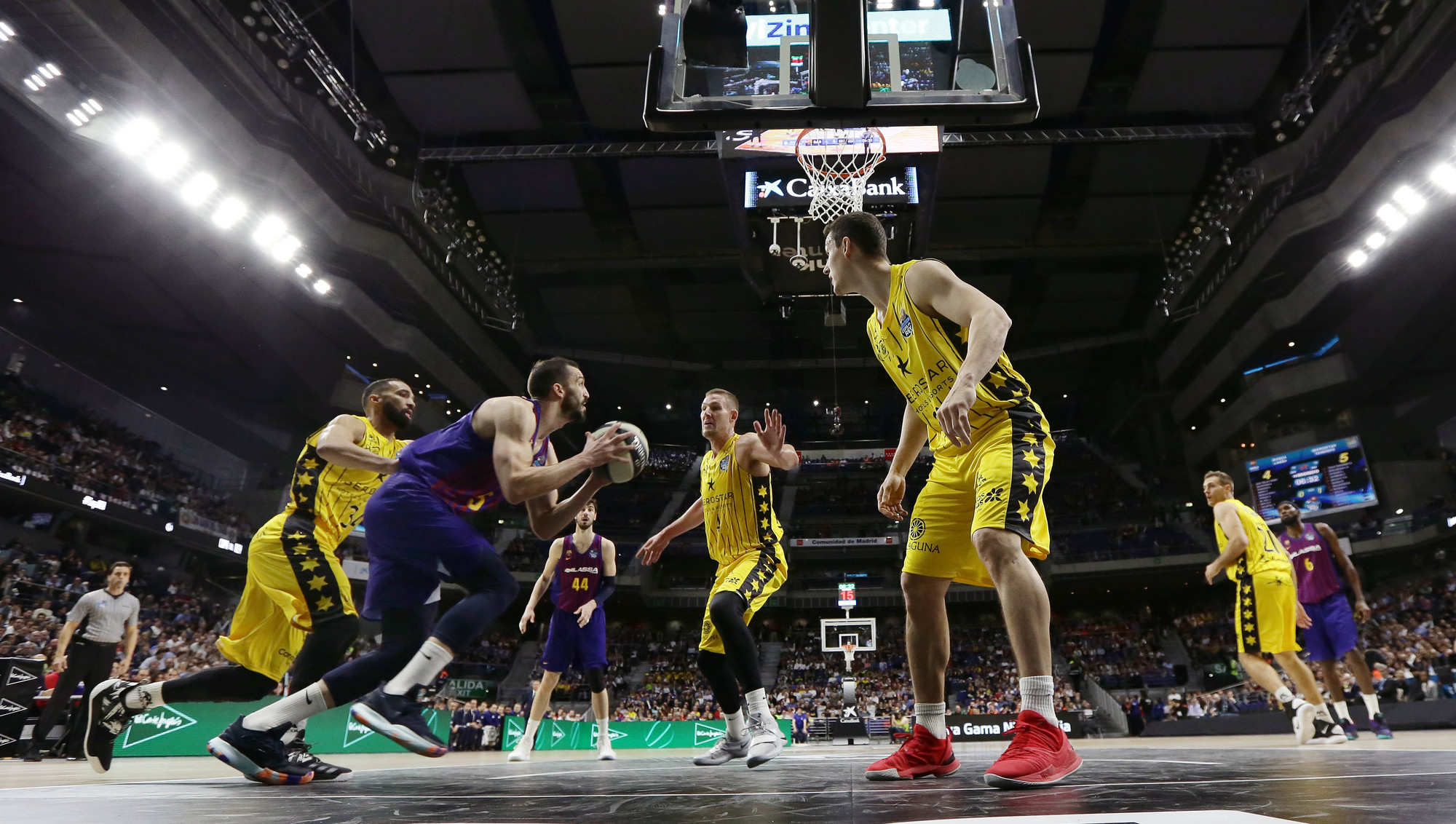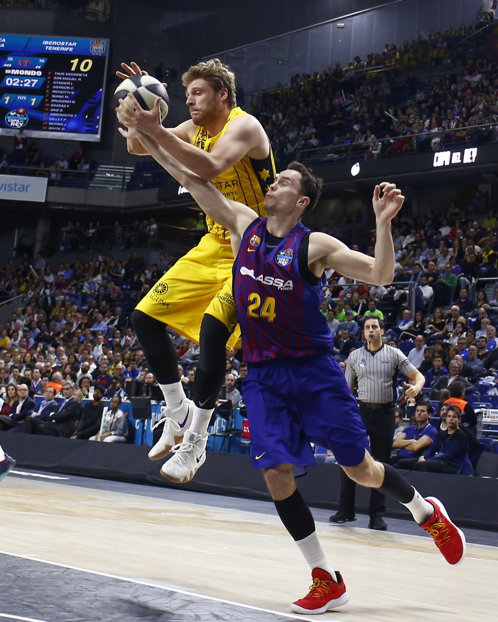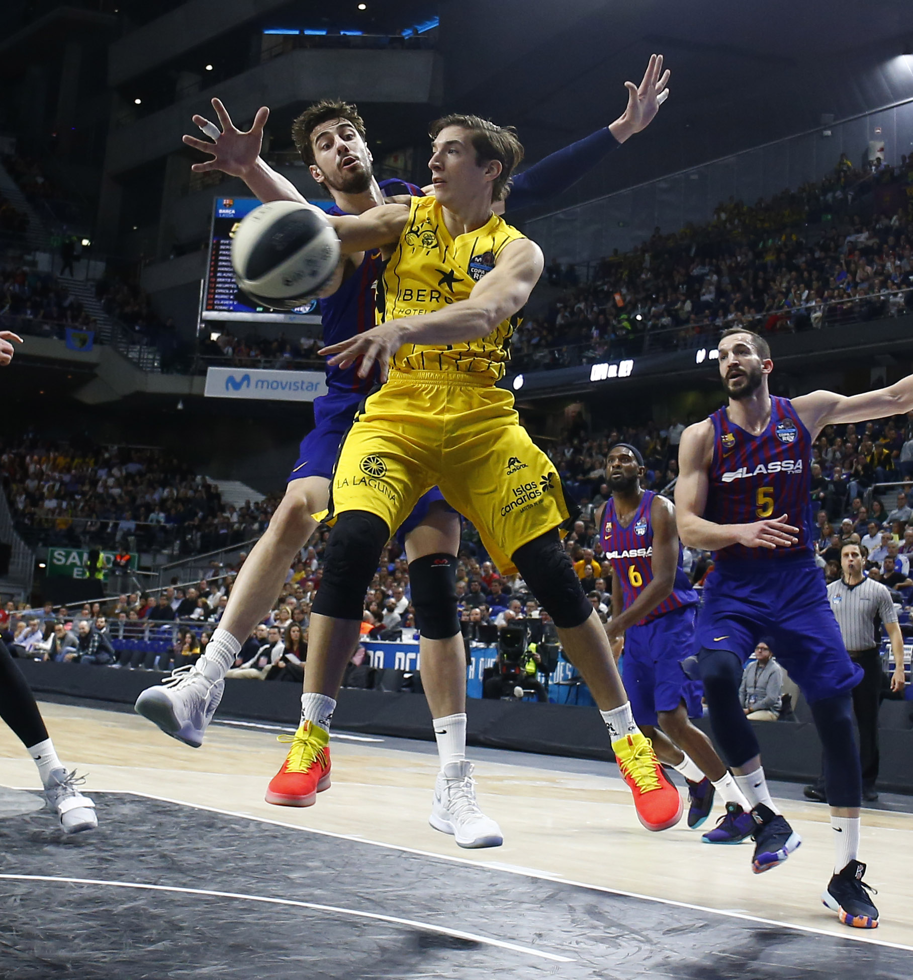 La jugada posterior colmó ya del todo la paciencia canarista. Un robo de Nico Brussino fue castigado con falta y Txus Vidorreta, arrodillado en el parqué implorando clemencia, recibió la segunda técnica y la consiguiente descalificación, con casi todo el Wizink Center indignado por los acontecimientos que se sucedían. Pau Ribas no falló desde el 4,60 y allanó ya el triunfo del Barça Lassa, con su pertinente billete para la final de la Copa del Rey.