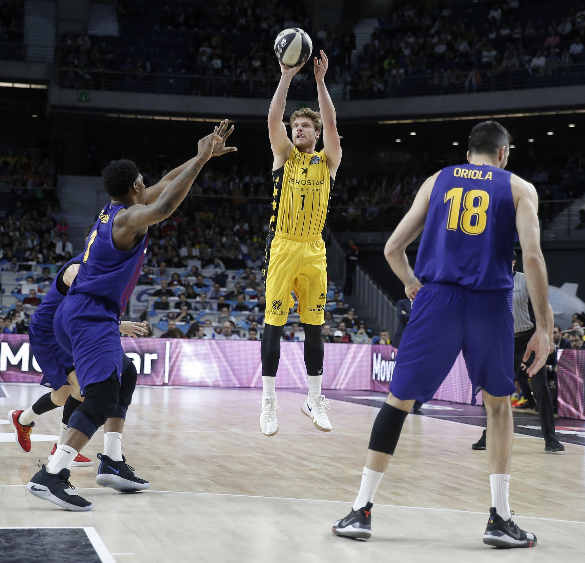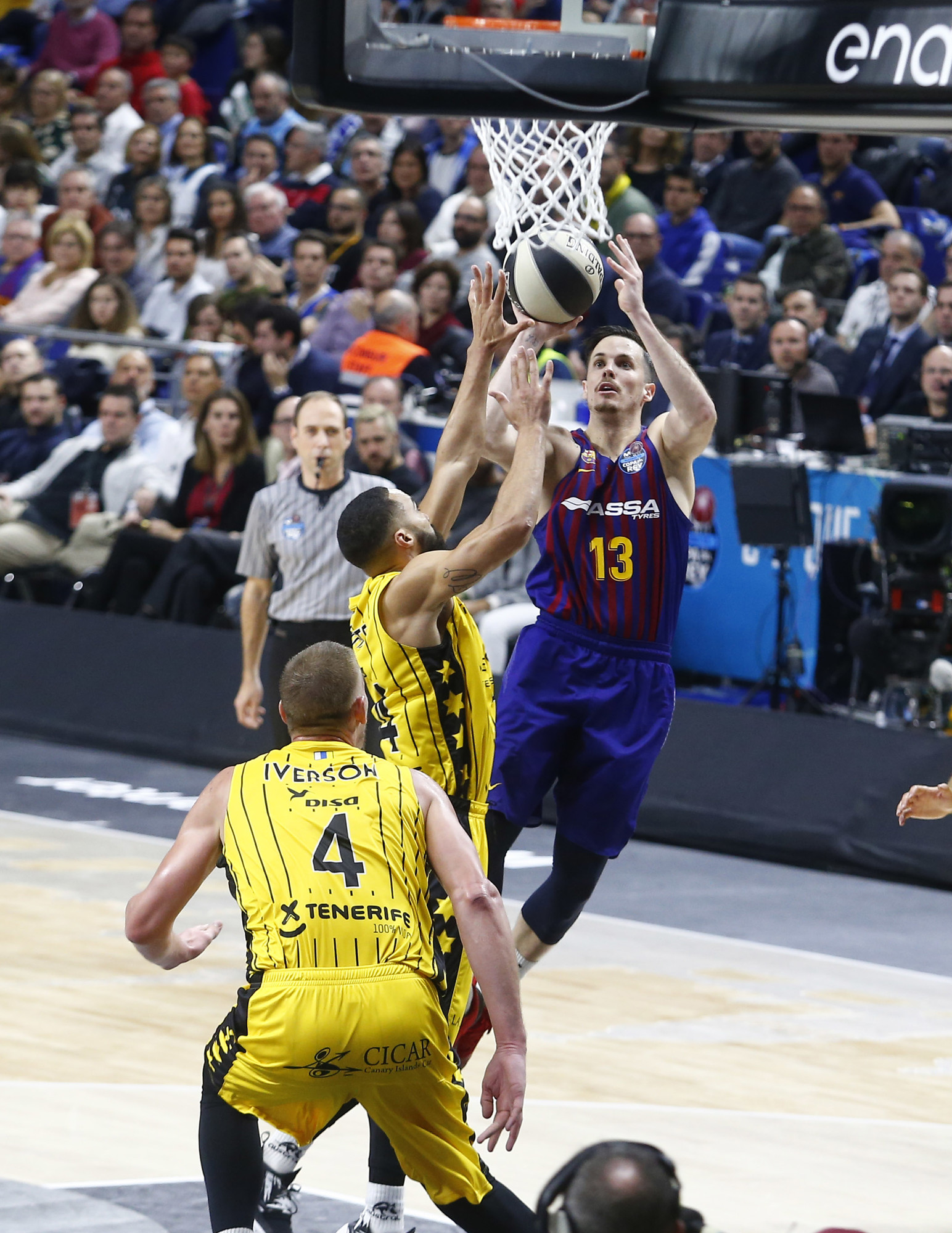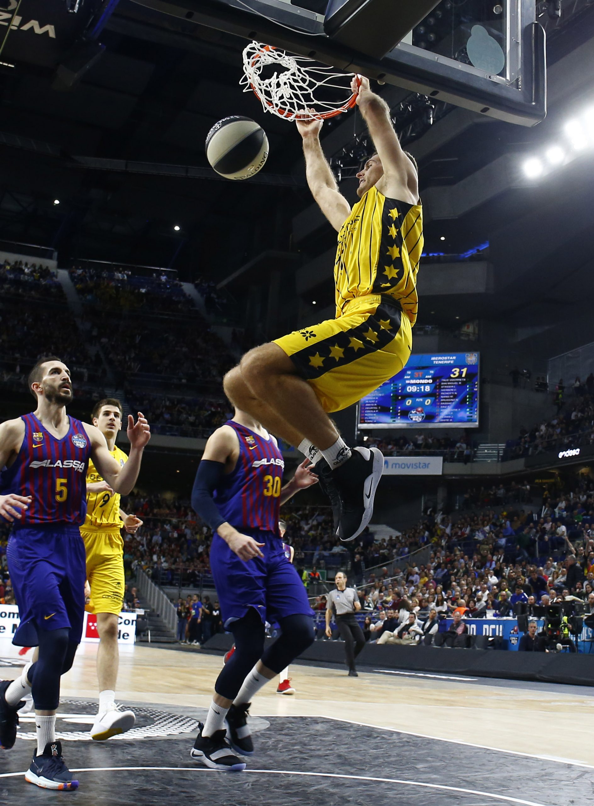 El grupo de Pesic no perdonó y respondió con otro parcial aún más contundente (10-1) para encarrilar un encuentro que a partir de ahí creció del lado catalán. Los triples de Kuric, primero; y la calidad de Seraphin y Hanga, después, ampliaron la renta de los catalanes hasta los 14 puntos (41-27). El Iberostar Tenerife sufría entonces sus peores minutos (41-29 al descanso) y, aunque volvió de vestuarios con dos acciones de mérito de Iverson y Abromaitis, el Barça tiró de su enorme repertorio para tomar el mando del choque.