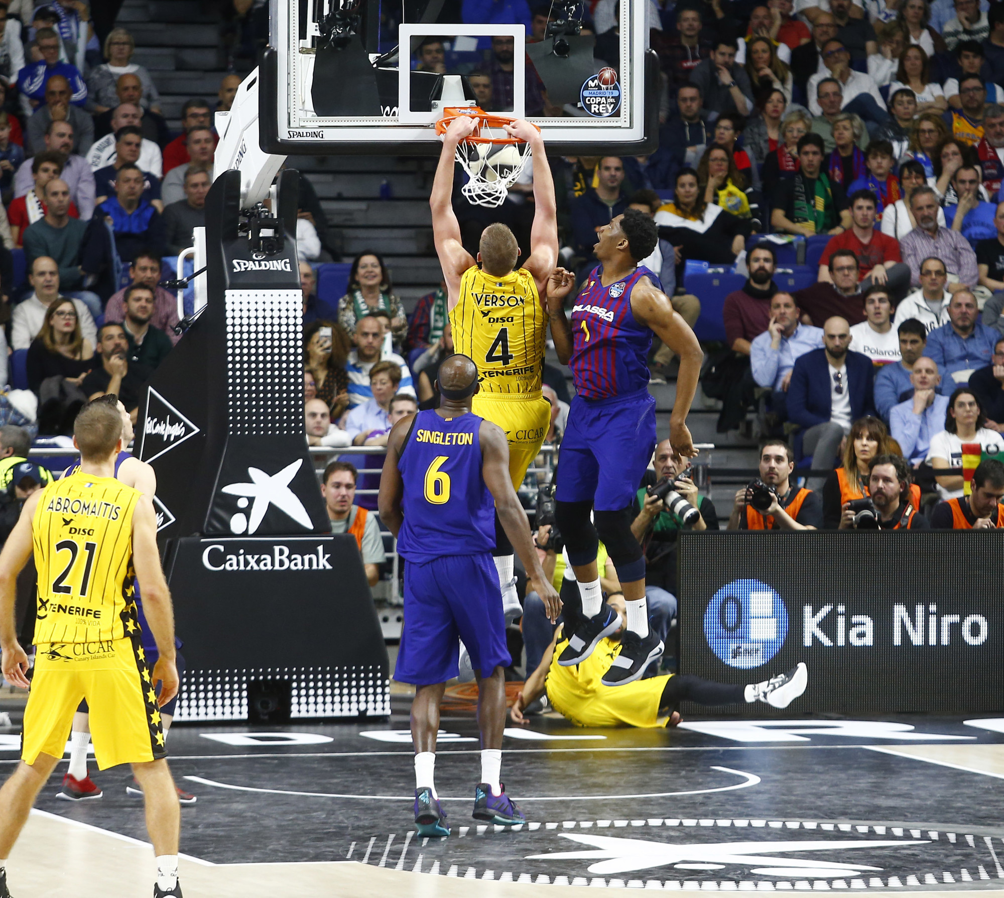 Cae dando la cara. Hasta el final, sin caer en el desaliento, y luchando contra todos los elementos. Así tuvo que despedirse este sábado el Iberostar Tenerife de la Copa del Rey, tras perder ante el Barça Lassa (92-86) en una semifinal que nació cuesta arriba para los aurinegros, pero cuyo ímpetu y corazón en la recta final les dejó cerca de una remontada épica. Pese a ir 24 abajo (80-56, 34'), el grupo de Txus Vidorreta no se rindió nunca, tiró de orgullo y forzó un epilogo apretado, no exento de polémica.