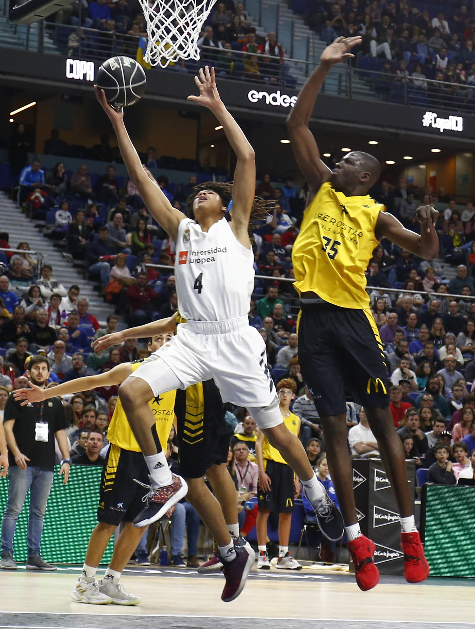 El conjunto tinerfeño palió con corazón y un notable trabajo colectivo su inferioridad física ante un gran rival. El grupo de Luca Villena no dio nunca por perdido el partido y, aunque los blancos amagaron varias veces con la ruptura, con ventajas por encima de la decena de puntos, el equipo insular plantó cara hasta los últimos minutos (65-63, min. 35).