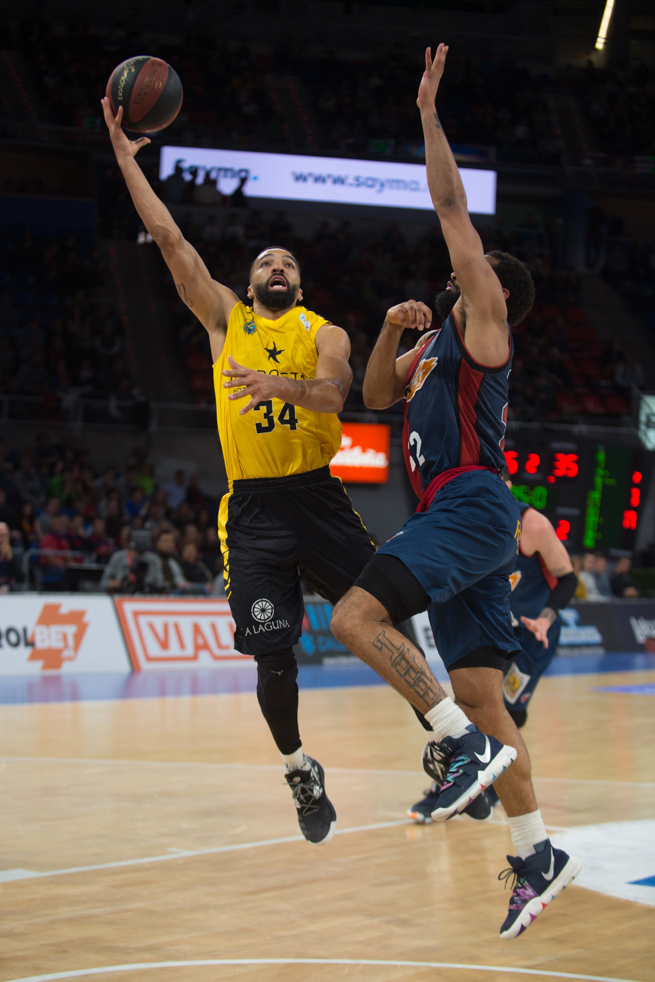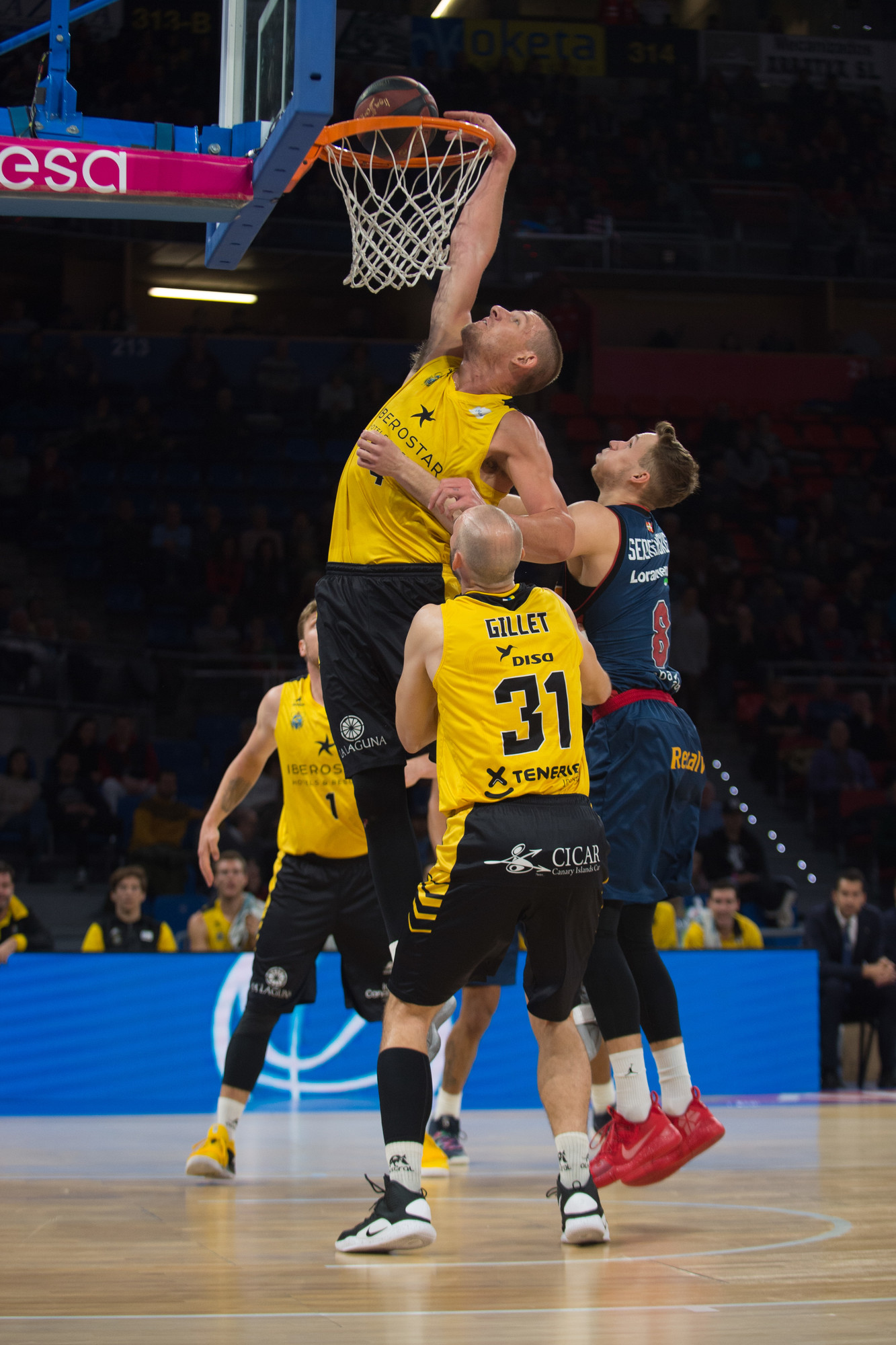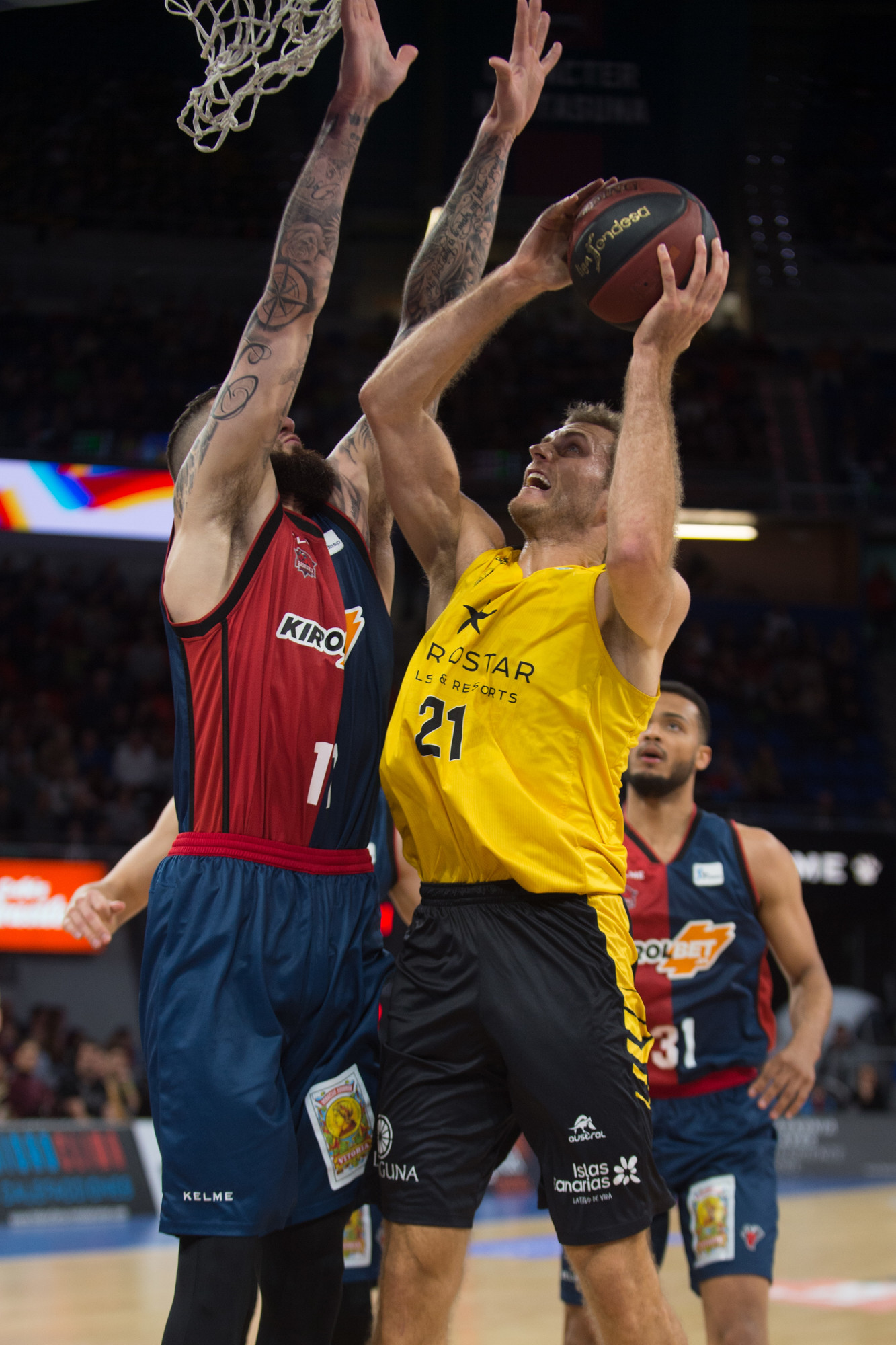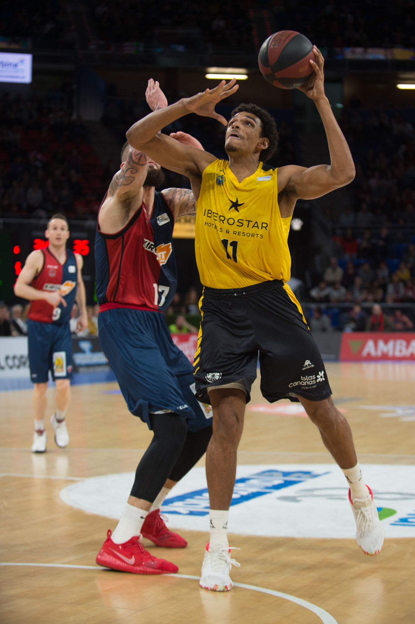 Sin embargo, el Iberostar Tenerife reaccionó en el segundo cuarto, apretó atrás, minimizó la sangría de las pérdidas y comenzó a anotar por fin con la frecuencia deseada. Un parcial primero de 3-14 y uno muy próximo de 0-9 dieron la vuelta al guión. Varias acciones de mérito de Jõesaar, las conexiones de Bassas con el estonio y con Petit, y tres triples consecutivos de los aurinegros, les permitieron incluso situarse tres arriba (32-35), antes de que en un par de jugadas el Baskonia reaccionara para irse con un punto de ventaja al receso (36-35).