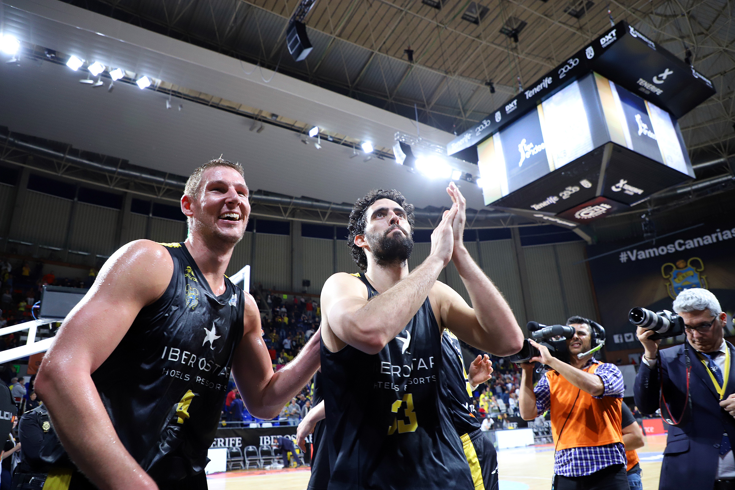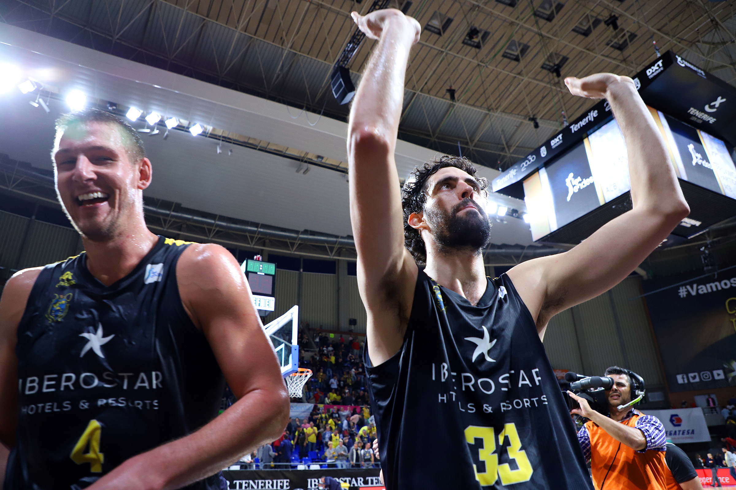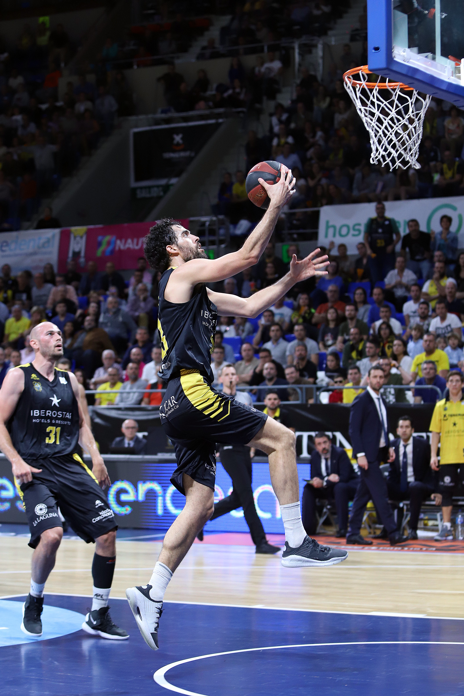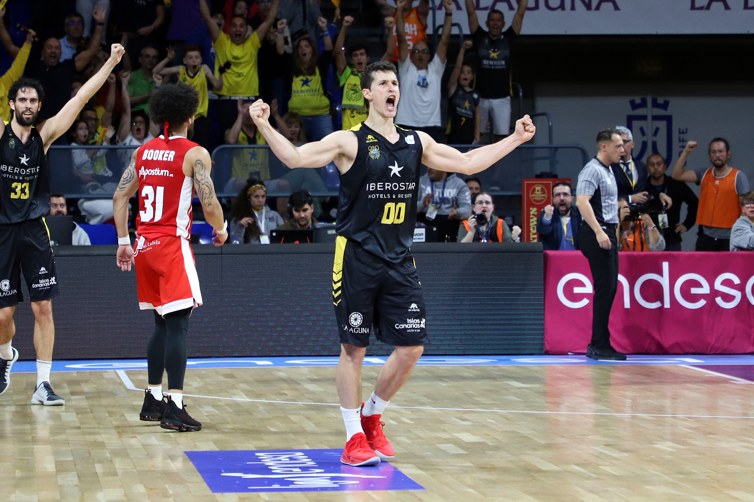 Tras la pausa, y ya sin Txus Vidorreta en el banquillo local, descalificado durante el intermedio por una segunda técnica, el conjunto aurinegro salió enrabietado a la cancha. El equipo insular, llevado en volandas por un Santiago Martín totalmente volcado con la causa y con Marco Justo y Nacho Yáñez asumiendo el relevo en la dirección, protagonizó entonces sus mejores minutos de la noche ante un UCAM Murcia sin respuesta. El modo vendaval de los laguneros se tradujo de entrada en un parcial de 14-0 (44-36) y tuvo prolongación hasta los 17 puntos de ventaja: 64-47, tras triple de Nico Brussino al inicio del último cuarto.