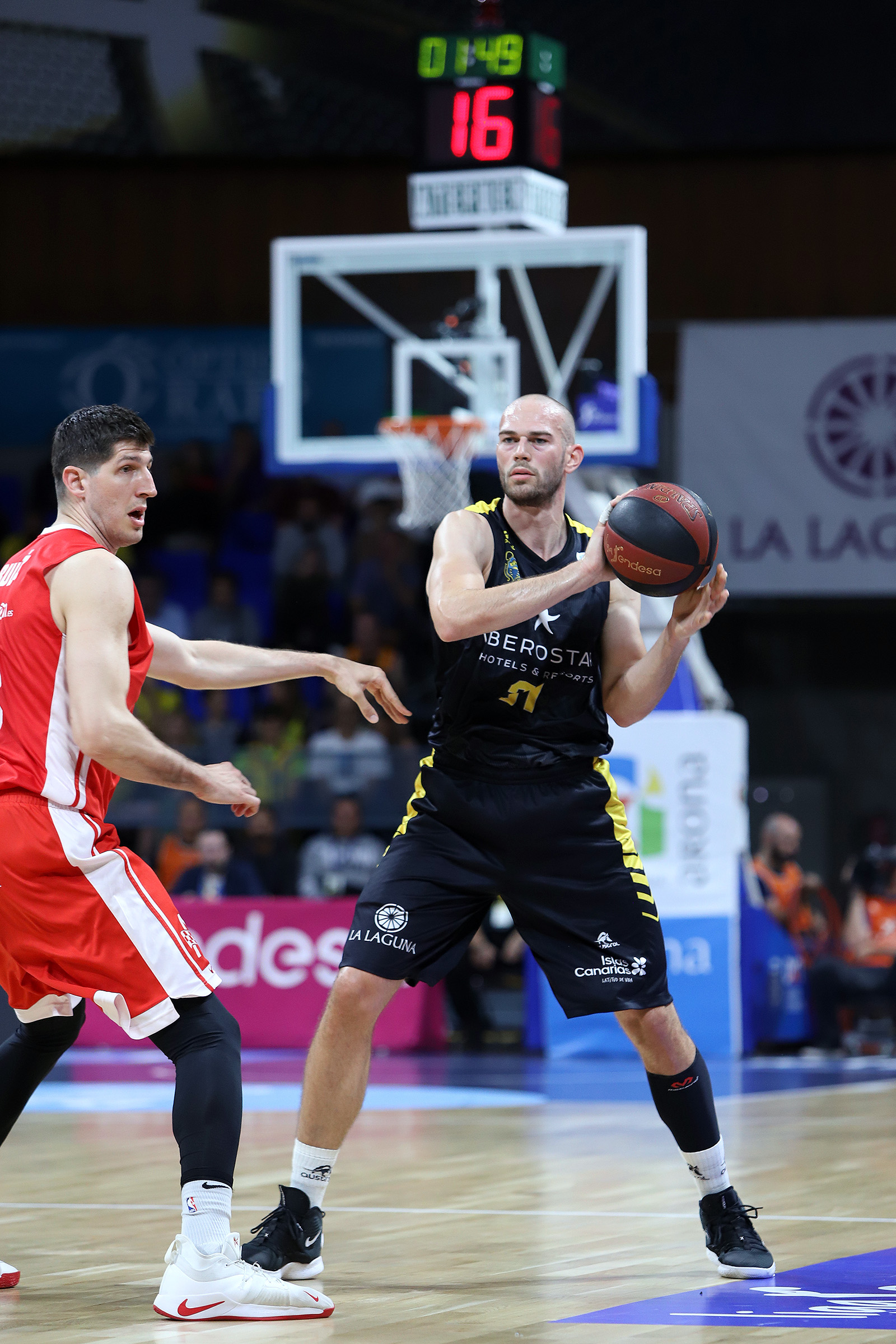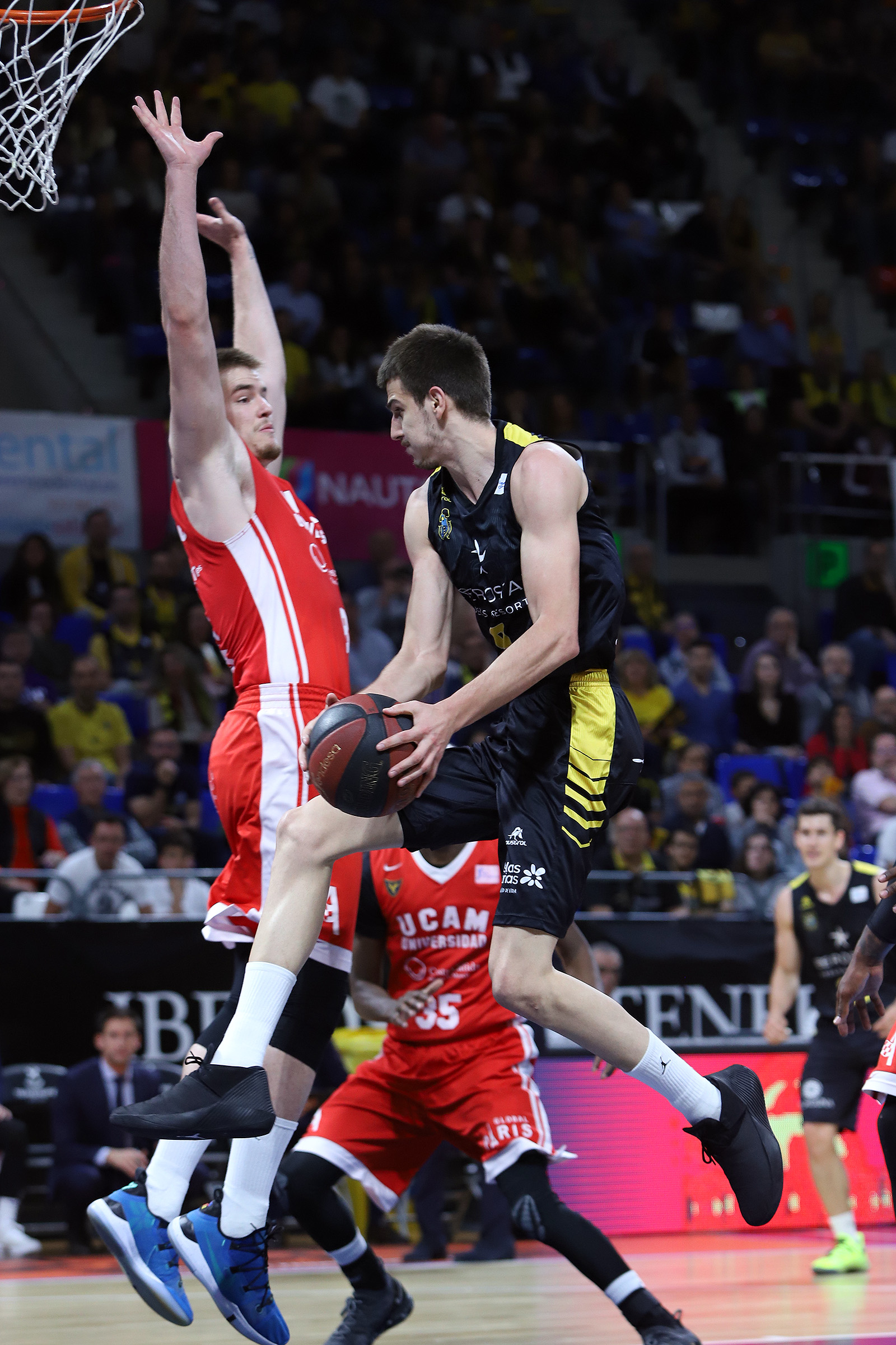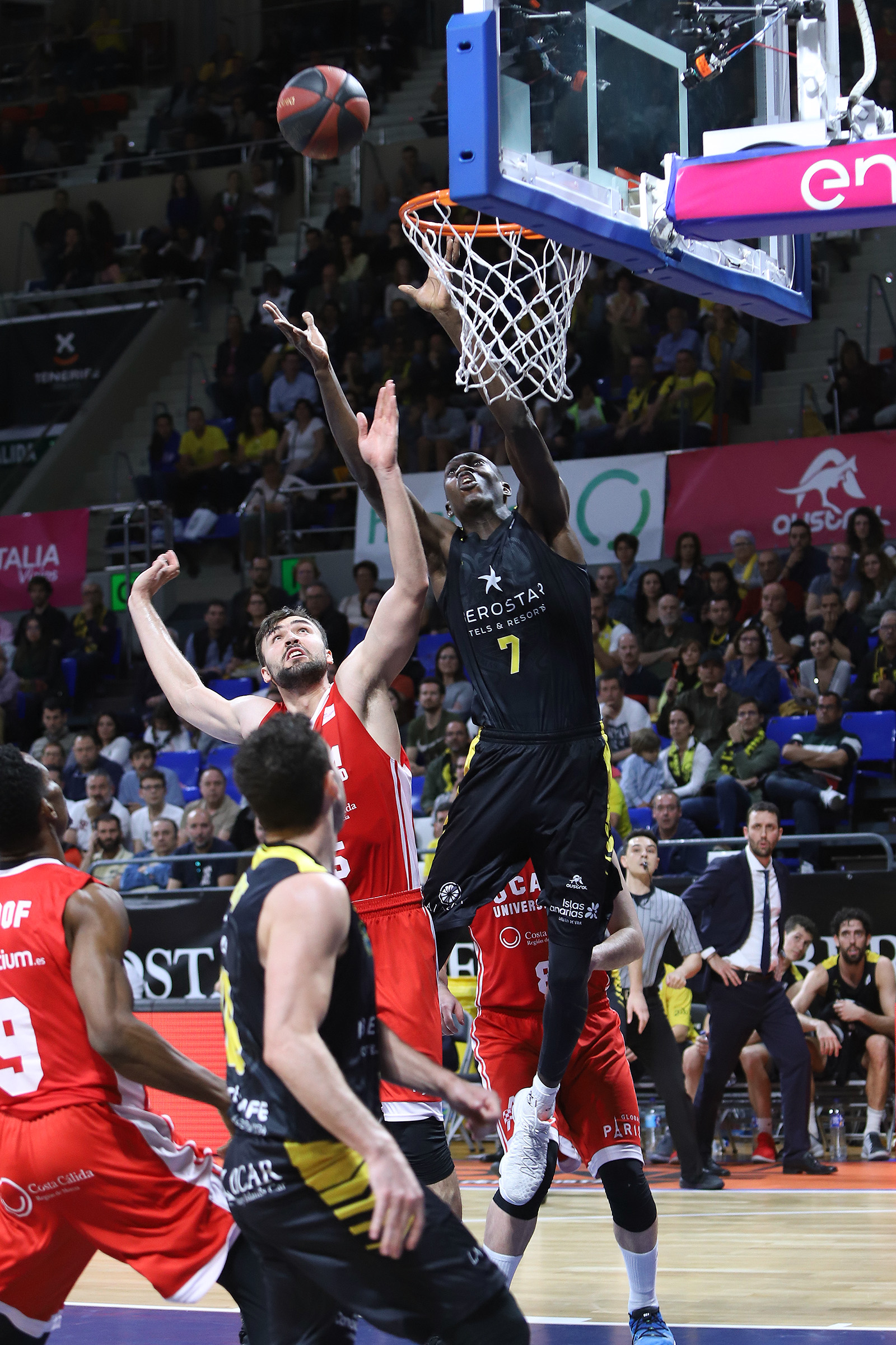 Costó lo suyo que los tinerfeños llevaran el partido a su trinchera, entre otras cosas porque se toparon con un rival muy duro atrás, que hizo mucho daño de inicio con sus segundas opciones en ataque (seis rebotes ofensivos al descanso) y aprovechó su acierto desde el 6,75 para ir cobrando ligeras ventajas en el electrónico (11-13, 19-21, min. 10). Sin Mitrovic, baja de última hora, fue Ovie Soko el que acaparó el protagonismo interior de los murcianos ante un Canarias al que le costaba jugar con la fluidez necesaria.