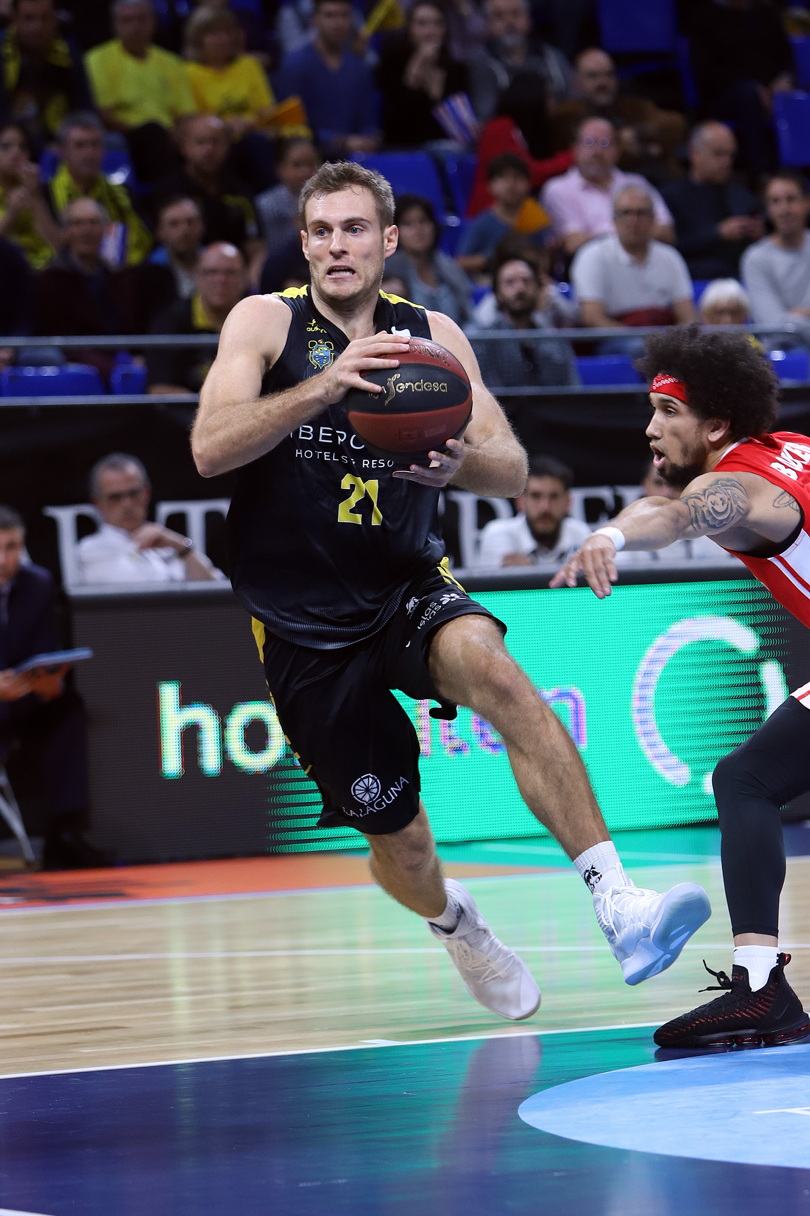 Dos triples de Rudez y Urtasun en la transición del primer al segundo cuarto (19-24) suponían un primer aviso serio de los visitantes, que imponían su físico y firmarían poco después un parcial de 0-10 para abrir una renta ya significativa: 22-32, tras triple de Sadiel Rojas. Con el público local muy molesto con varias decisiones arbitrales, el Iberostar Tenerife trataba de reengancharse al partido y lograba reducir la desventaja, gracias a un buen final de cuarto de Nico Brussino (30-36, min. 20).