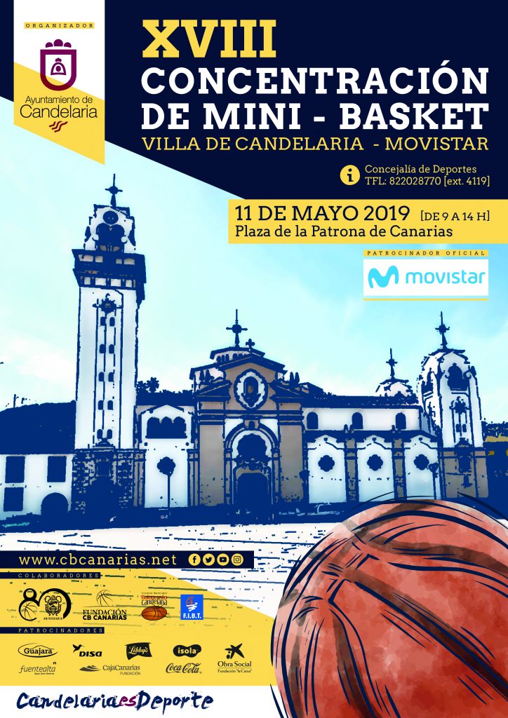 miércoles, 8 mayo, 2019 - 11:05La Plaza de la Patrona de Canarias acogerá este sábado la XVIII Concentración de Basket Villa de Candelaria Movistar, evento organizado por el CB Canarias, a través de su Fundación, así como por la concejalía de Deportes del Ayuntamiento de la Villa Mariana, la Federación Insular de Baloncesto de Tenerife (FIBT), el Club Deportivo Pozo Virgen y la Escuela Municipal de Candelaria.