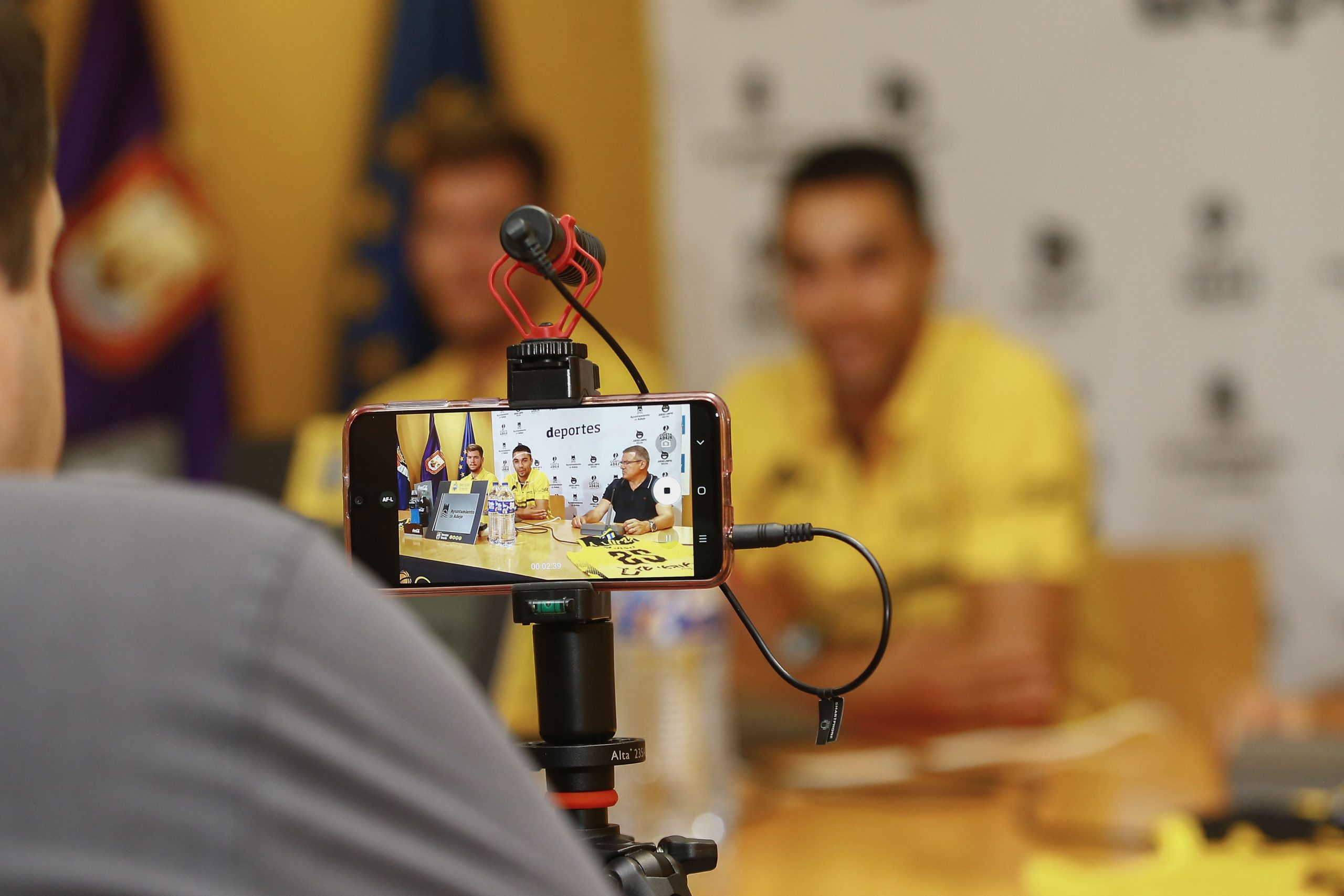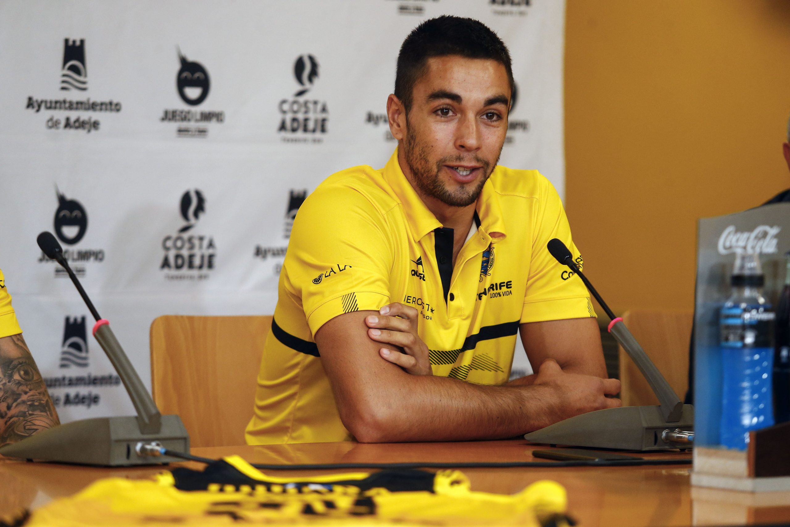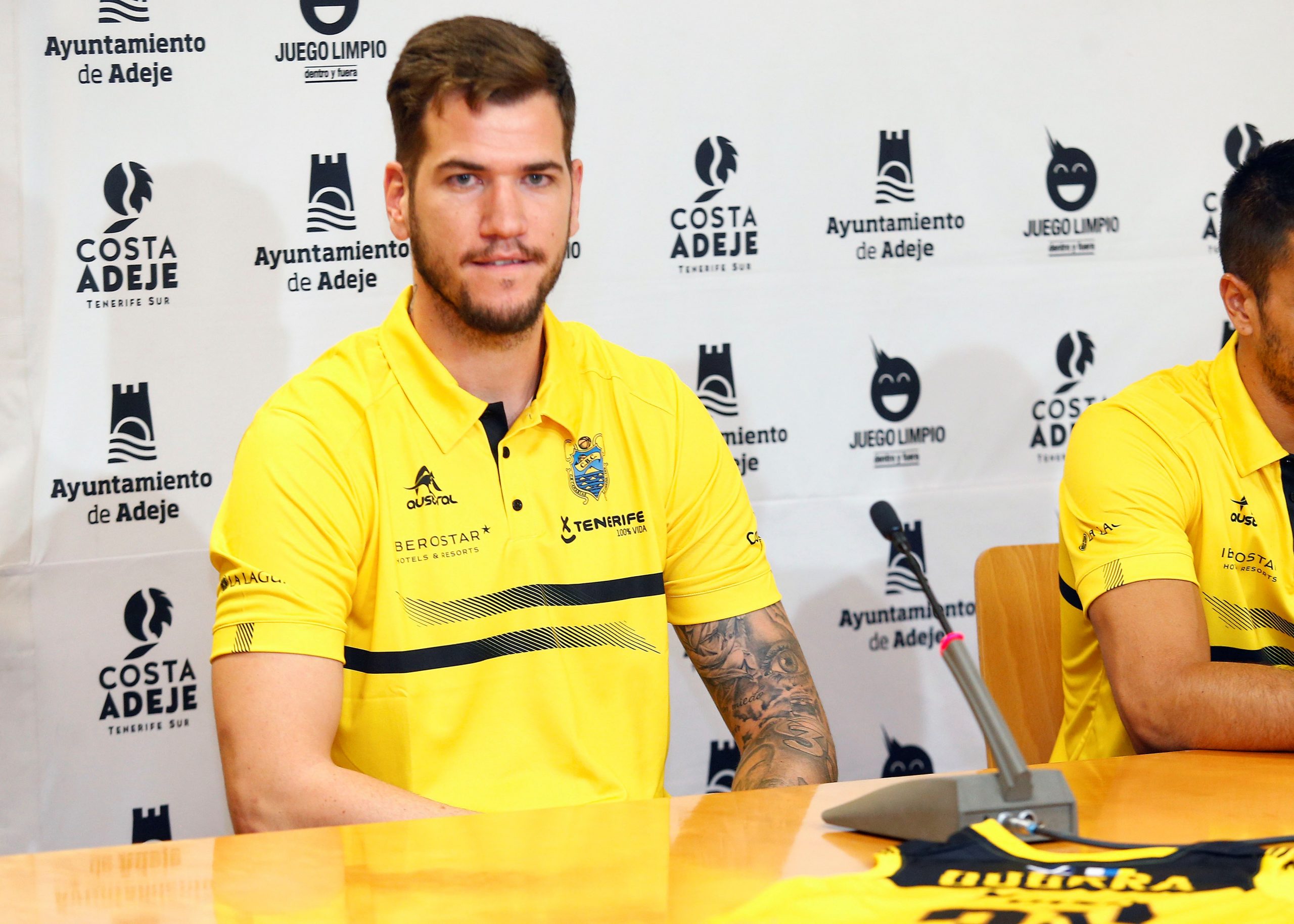 “Ilusionados” y “muy orgullosos” de pertenecer a la familia canarista. Así se mostraron esta mañana Álex López y Fran Guerra, durante su presentación ante los medios, en un acto patrocinado por el Ayuntamiento de Adeje. La cita contó con la presencia de Félix Hernández, presidente canarista, que agradeció el respaldo un año más del consistorio sureño al proyecto aurinegro; y de José Maikel Álvarez, que acudió en representación del área de Deportes del municipio adejero.