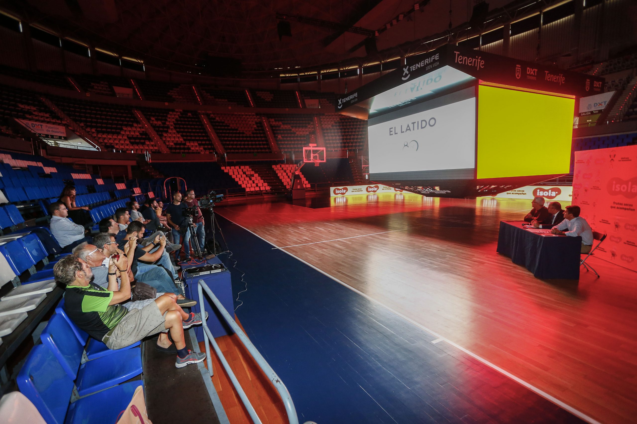 La obra fue presentada este martes ante los medios en un escenario de lujo, el videomarcador central del Santiago Martín. La cancha fue acondicionada para la ocasión durante un acto presidido por Federico García Soto e Iván López, responsables respectivamente de los departamentos de Imagen y Audiovisuales del club tinerfeño; así como Jesús Rodríguez, director de Dar2 Media.