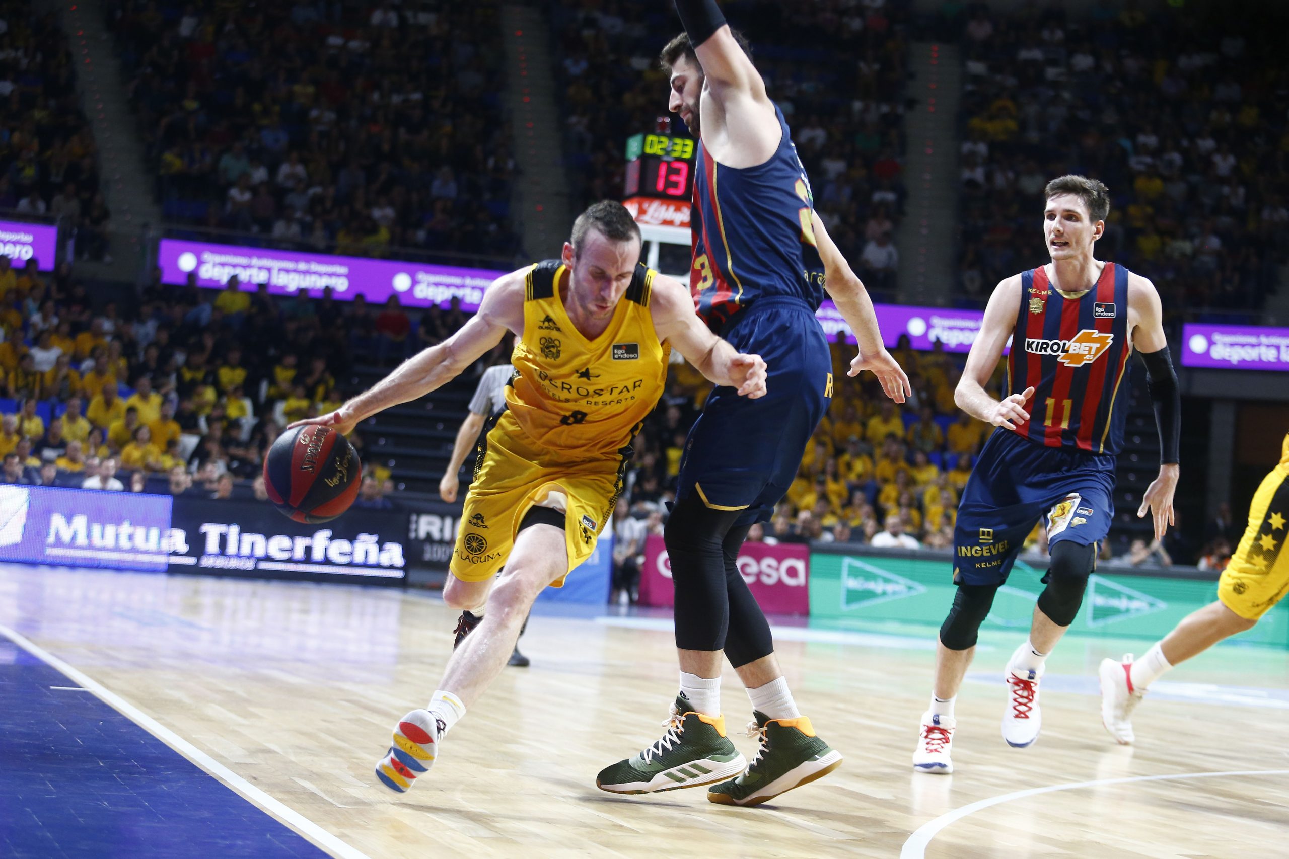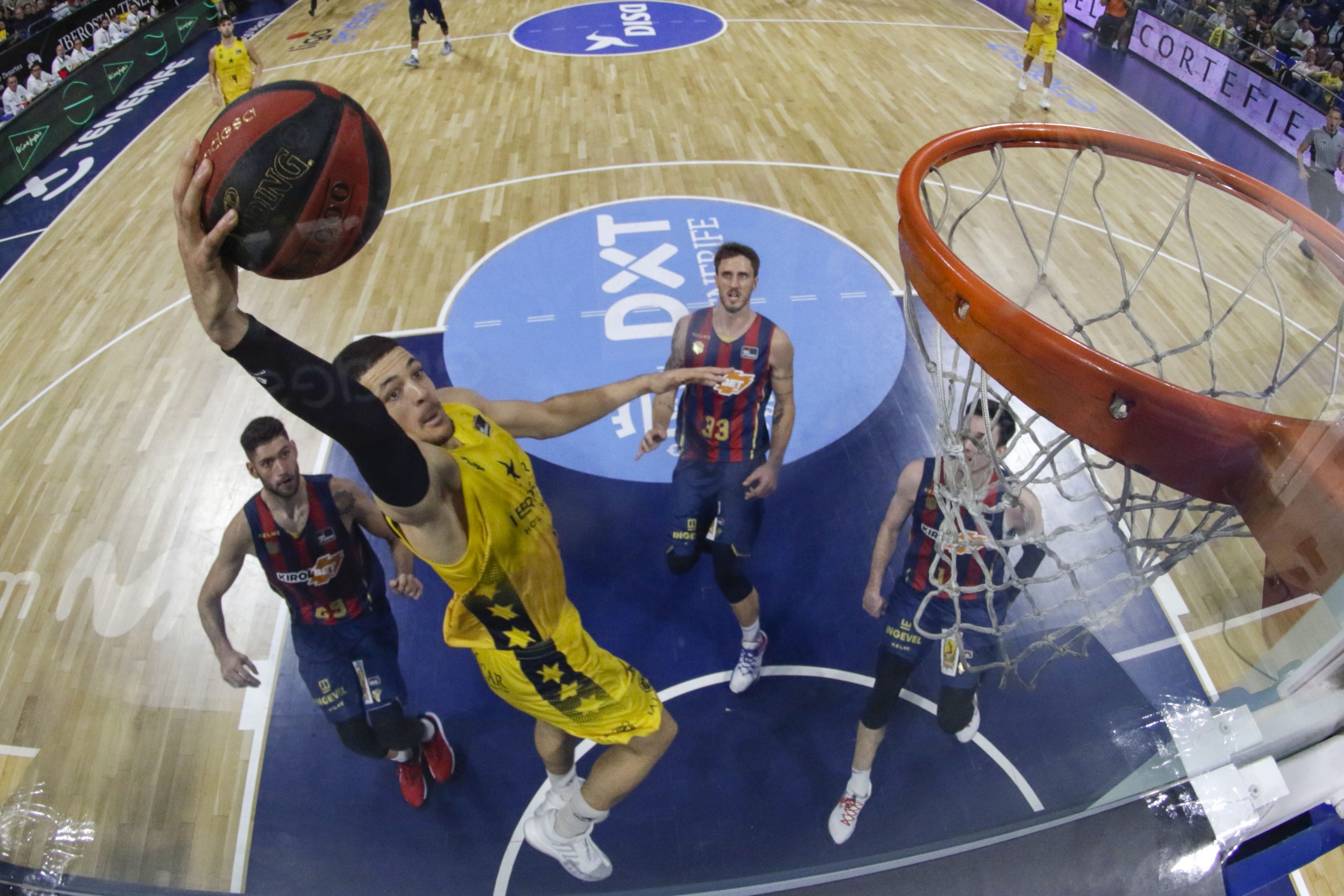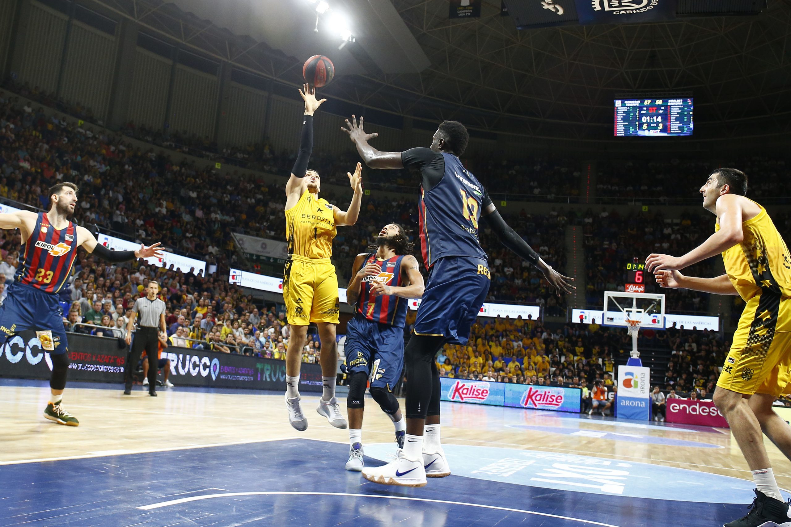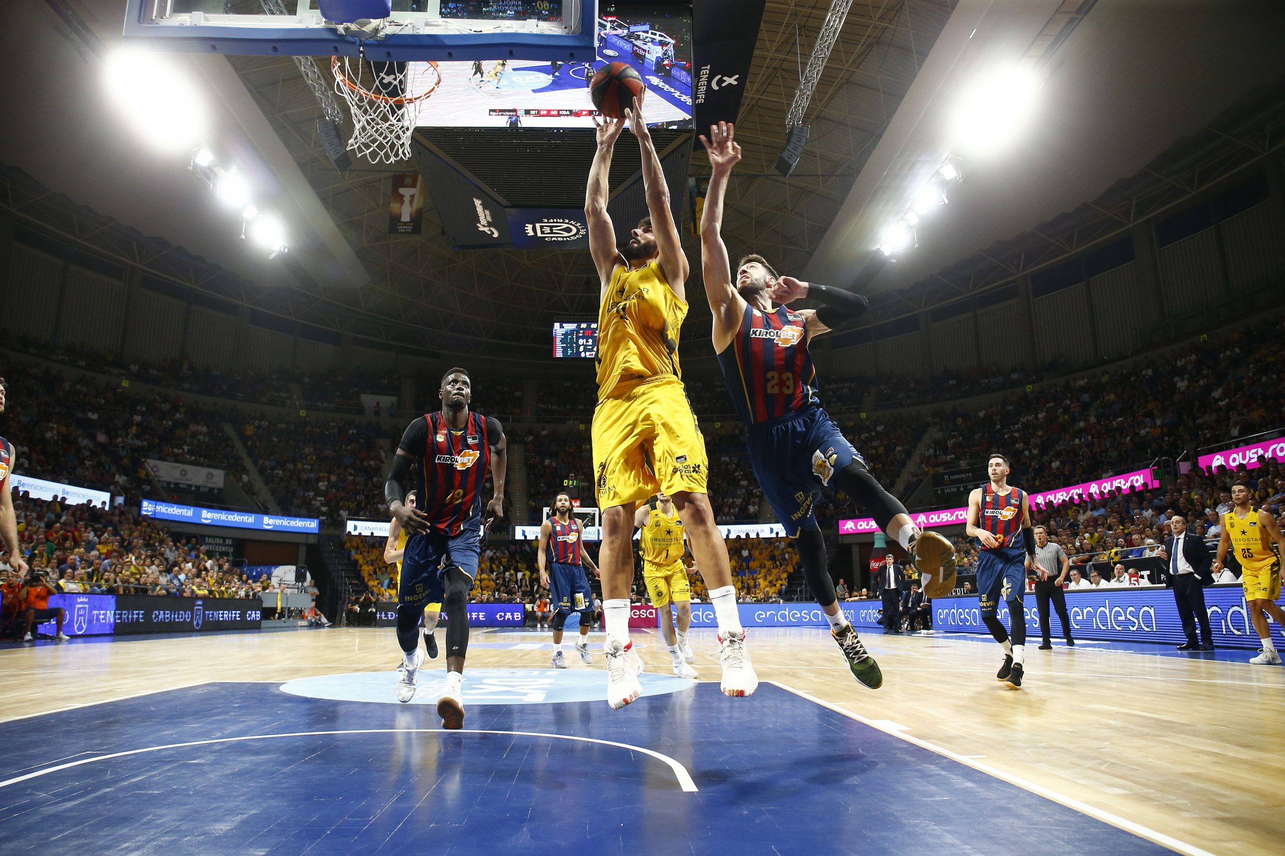 No encontraba el Canarias la fluidez necesaria ante un adversario muy físico, que encimaba muy bien las líneas de pase, y que lograba irse a la pausa cinco arriba (33-38). Tras el paso por vestuarios, el Kirolbet Baskonia amagó con abrir hueco de entrada (33-41), pero se topó con un Iberostar Tenerife mucho más metido.
