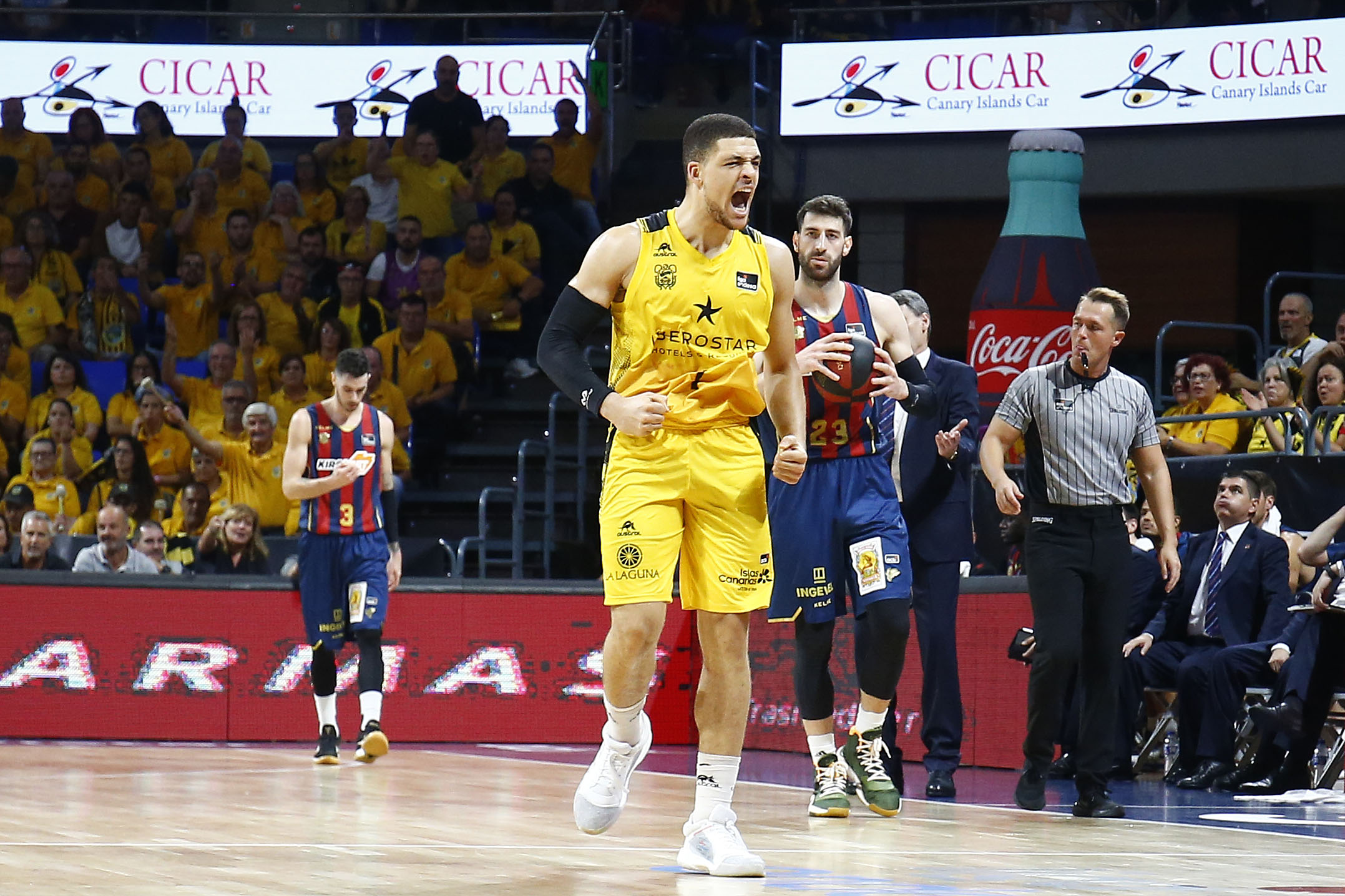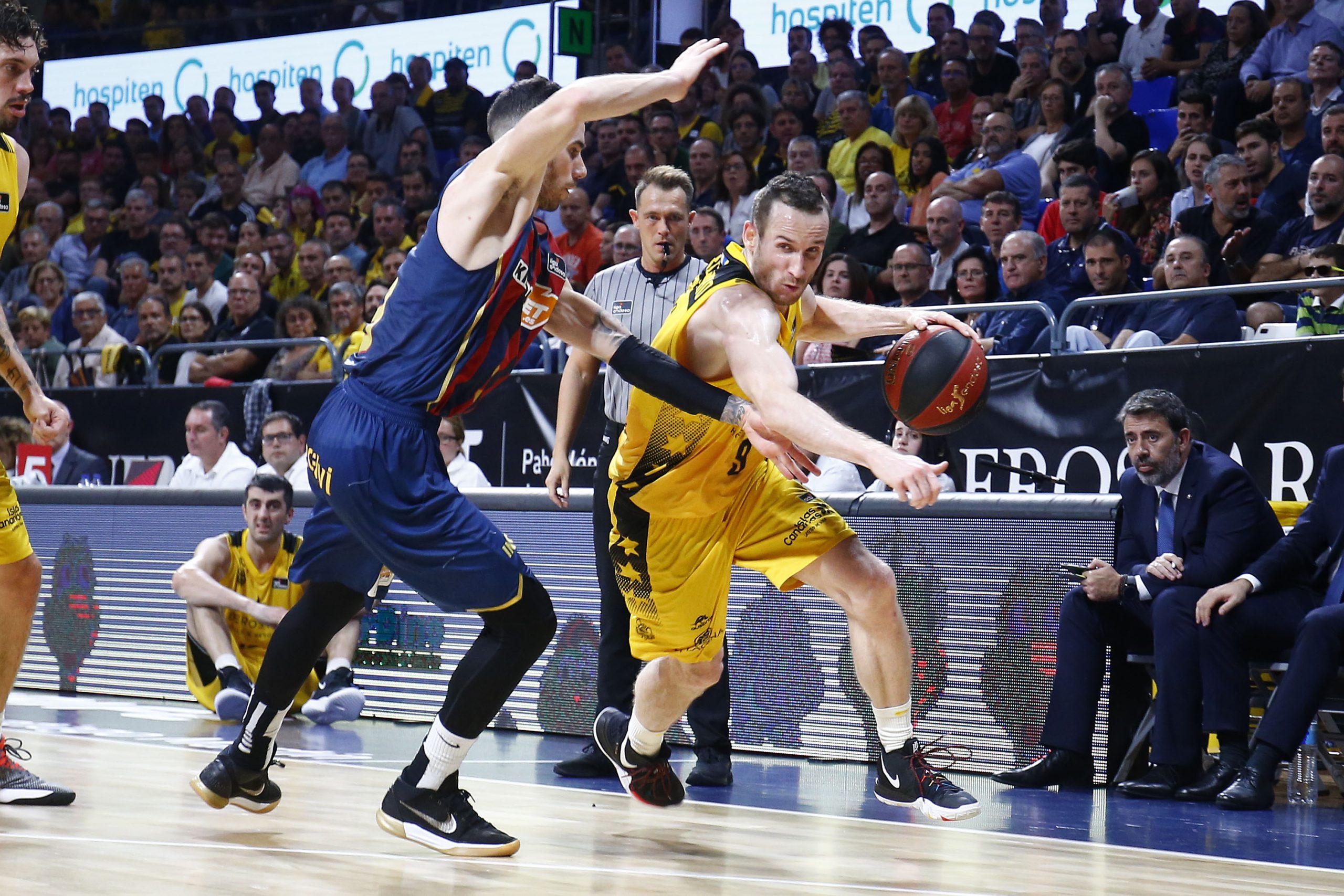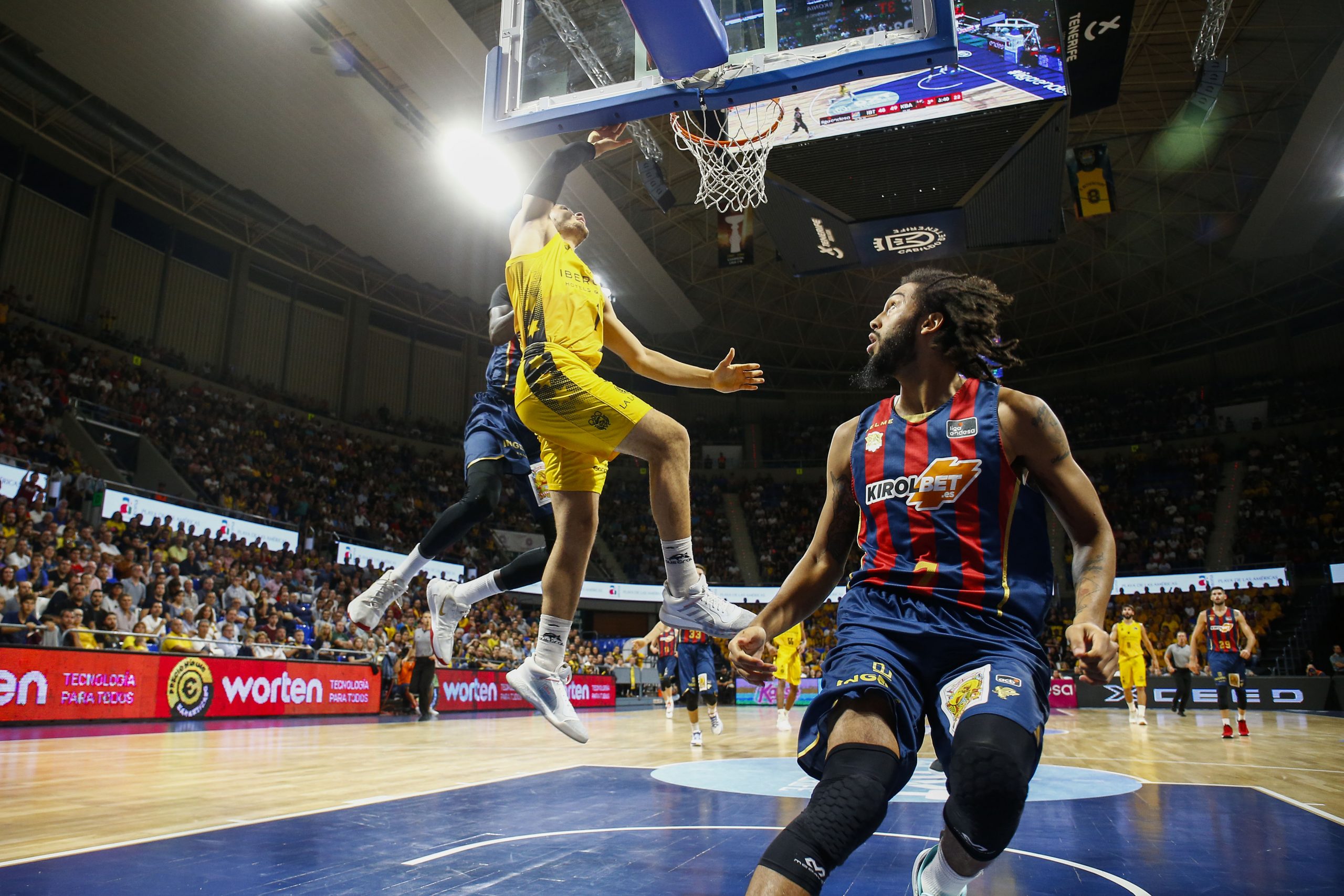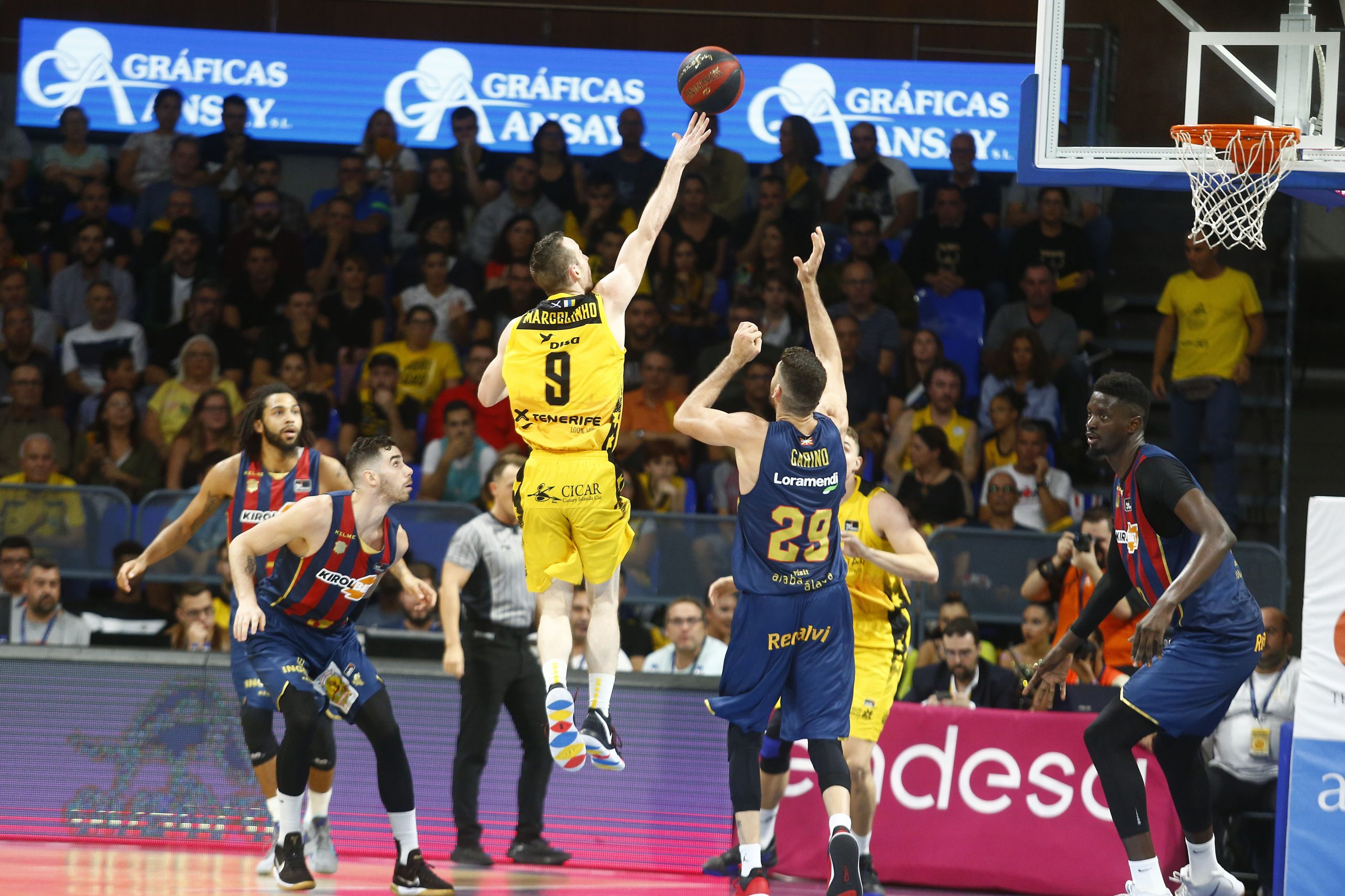 No encontraba el Canarias la fluidez necesaria ante un adversario muy físico, que encimaba muy bien las líneas de pase, y que lograba irse a la pausa cinco arriba (33-38). Tras el paso por vestuarios, el Kirolbet Baskonia amagó con abrir hueco de entrada (33-41), pero se topó con un Iberostar Tenerife mucho más metido.