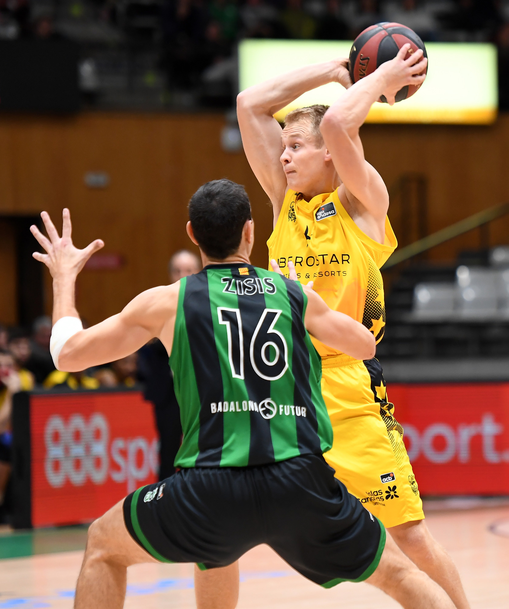 Lo intentaron los canaristas con la irrupción de Santi Yusta, que encadenó varios aciertos para situar a los suyos a solo cuatro puntos (25-21), pero el Iberostar Tenerife no acababa de estar cómodo y un nuevo arreón de los anfitriones, con un parcial de por medio de 14-5 mandaba el encuentro a la pausa con 13 puntos de ventaja para los de Badalona.