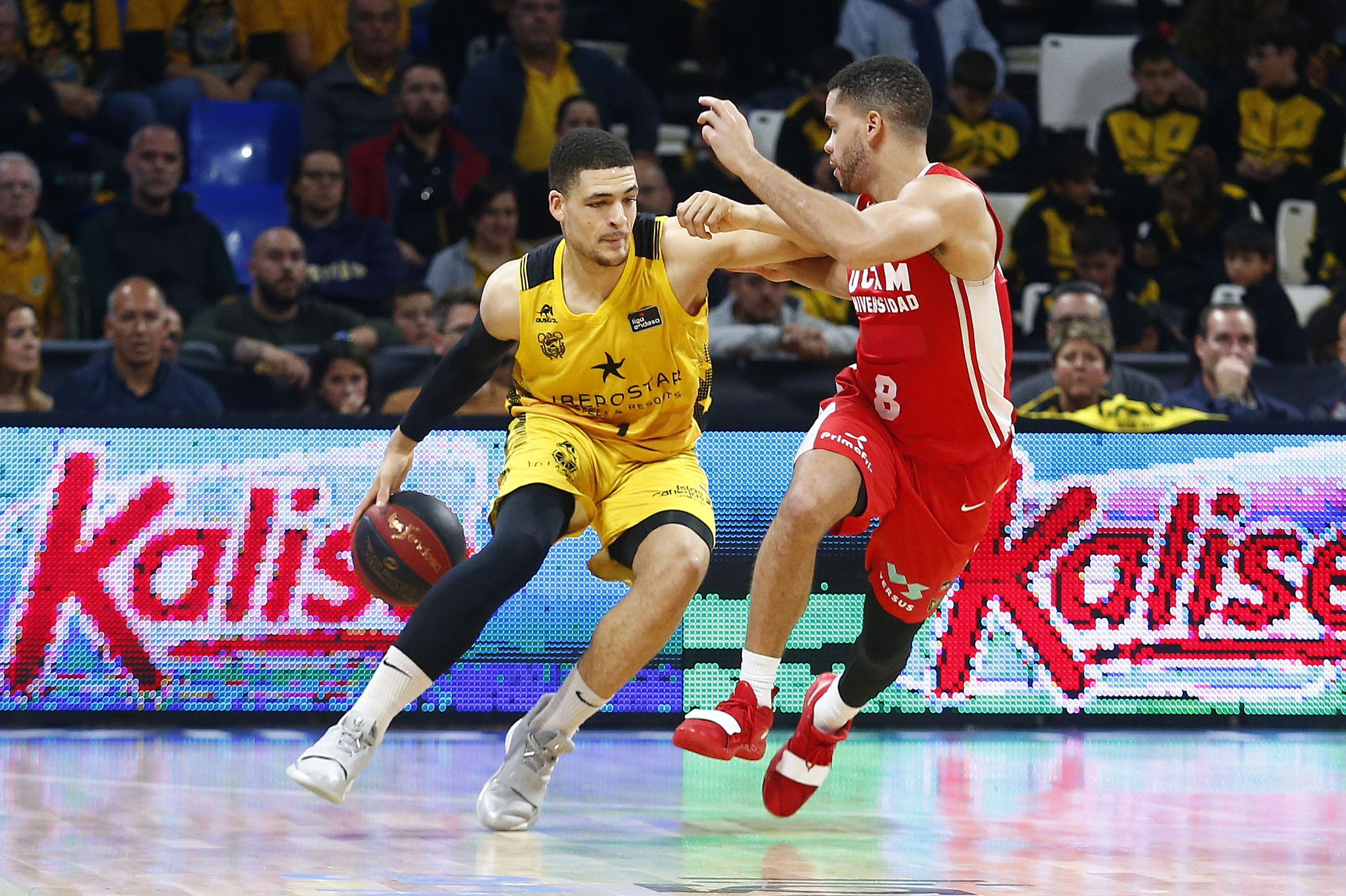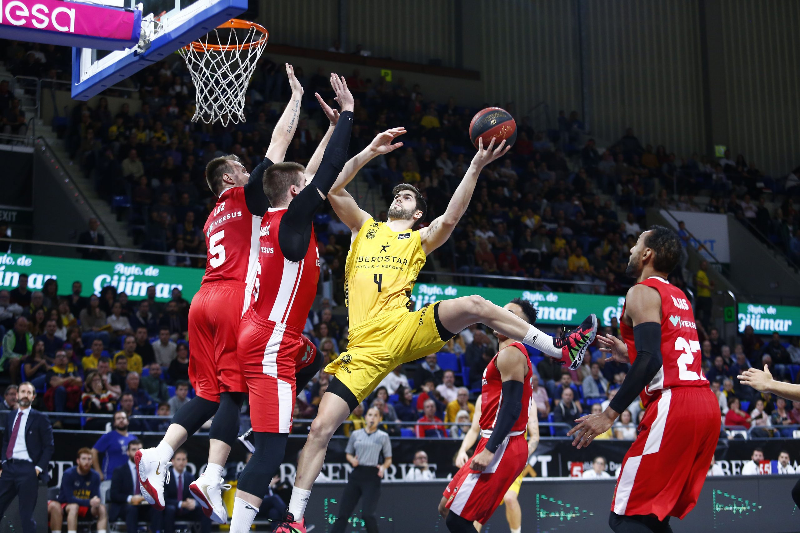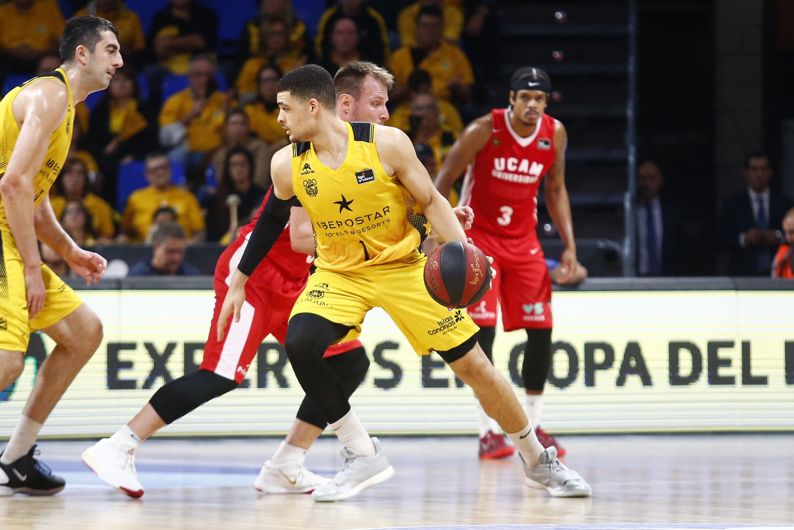 Le costó al Iberostar Tenerife encontrar su ritmo, aunque amagó con varias rupturas significativas (18-13, 22-16, 28-23, 35-29). Sin Askia Booker, principal referente anotador del UCAM, descartado por problemas físicos, el equipo rojillo jugó de manera ordenada y aprovechó la movilidad de Hunt, las penetraciones de Townes y la calidad de Larentzakis para evitar que el Canarias rompiera el choque a su favor.