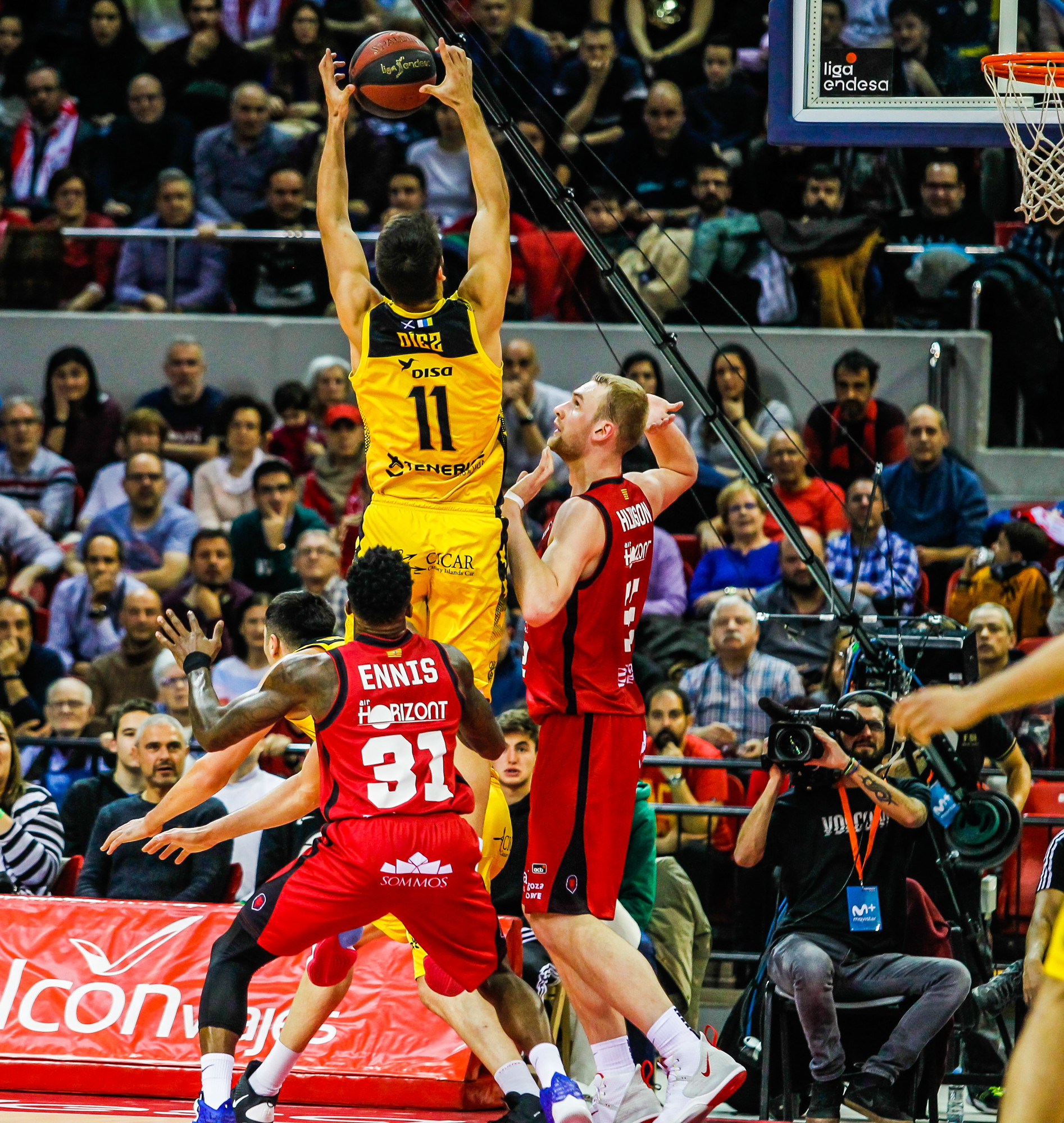 Pese a todo, el cuadro lagunero se sobrepuso con la irrupción de la segunda unidad y los primeros triples de Yusta y Gielo. El Canarias apretó atrás y comenzó a meterse en partido: 26-27, tras un 2+1 de Santi. Sin embargo, al Casademont aún le quedaba artillería que sacar. Un inspirado Dylan Ennis dinamitó el guión con un 4/4 en triples y volvió a disparar la renta de los suyos hasta los 15 puntos (58-43).