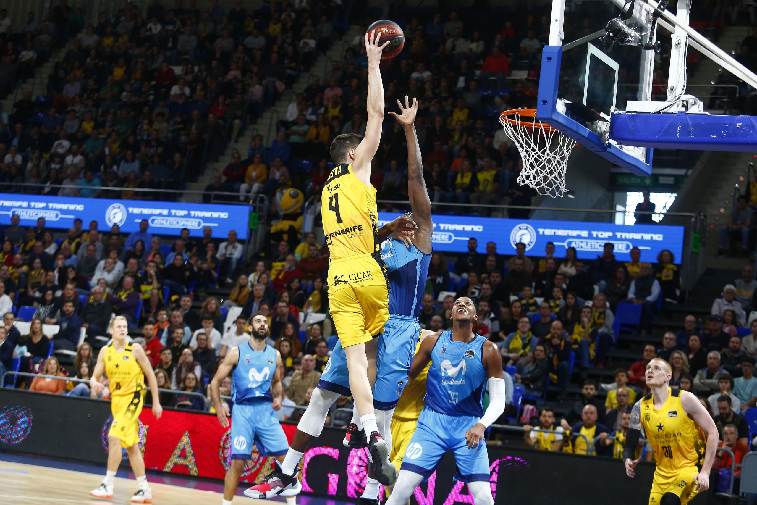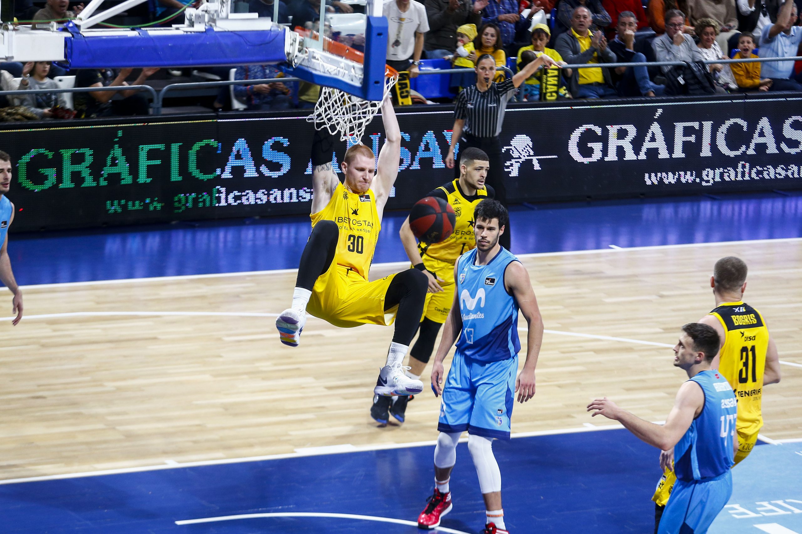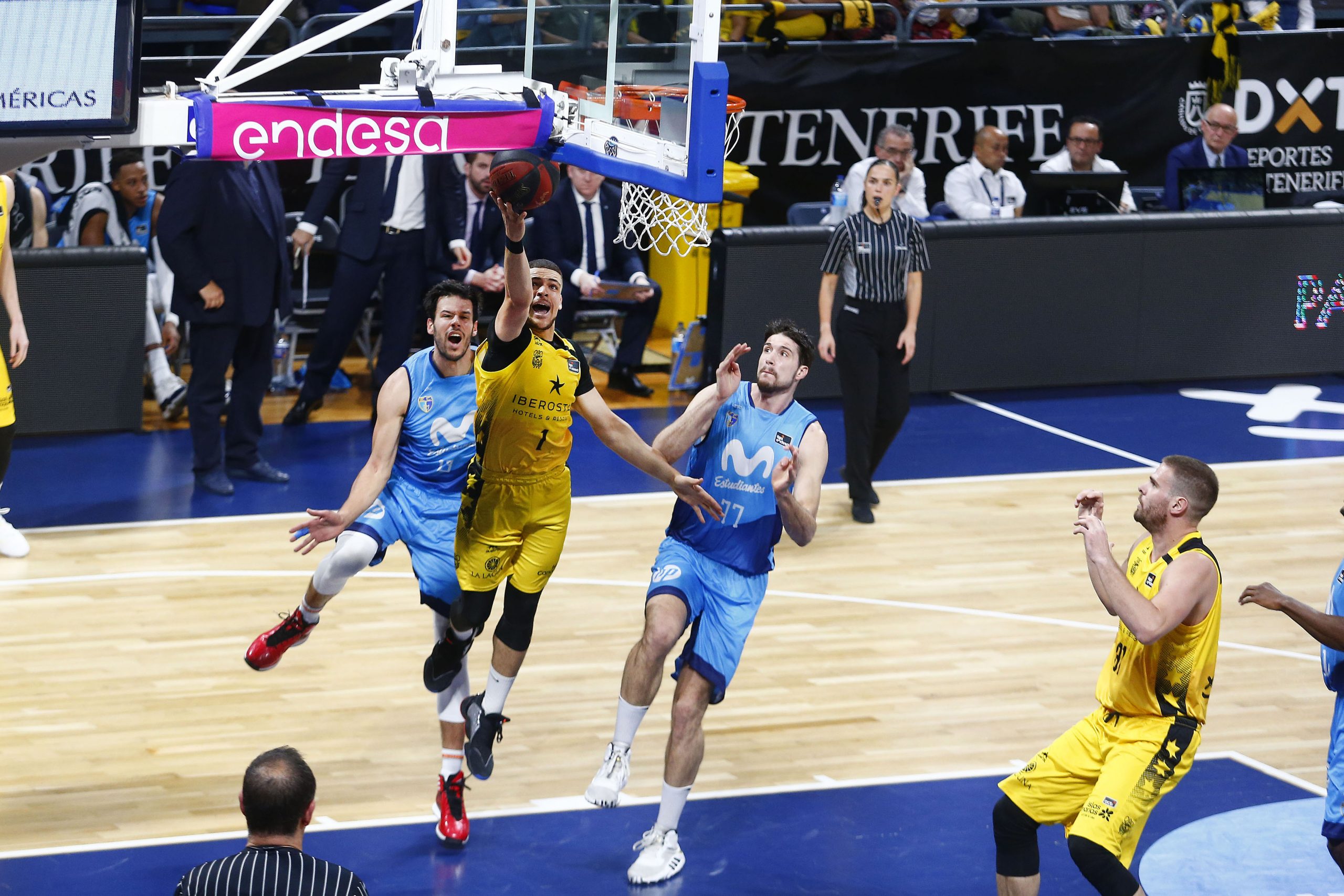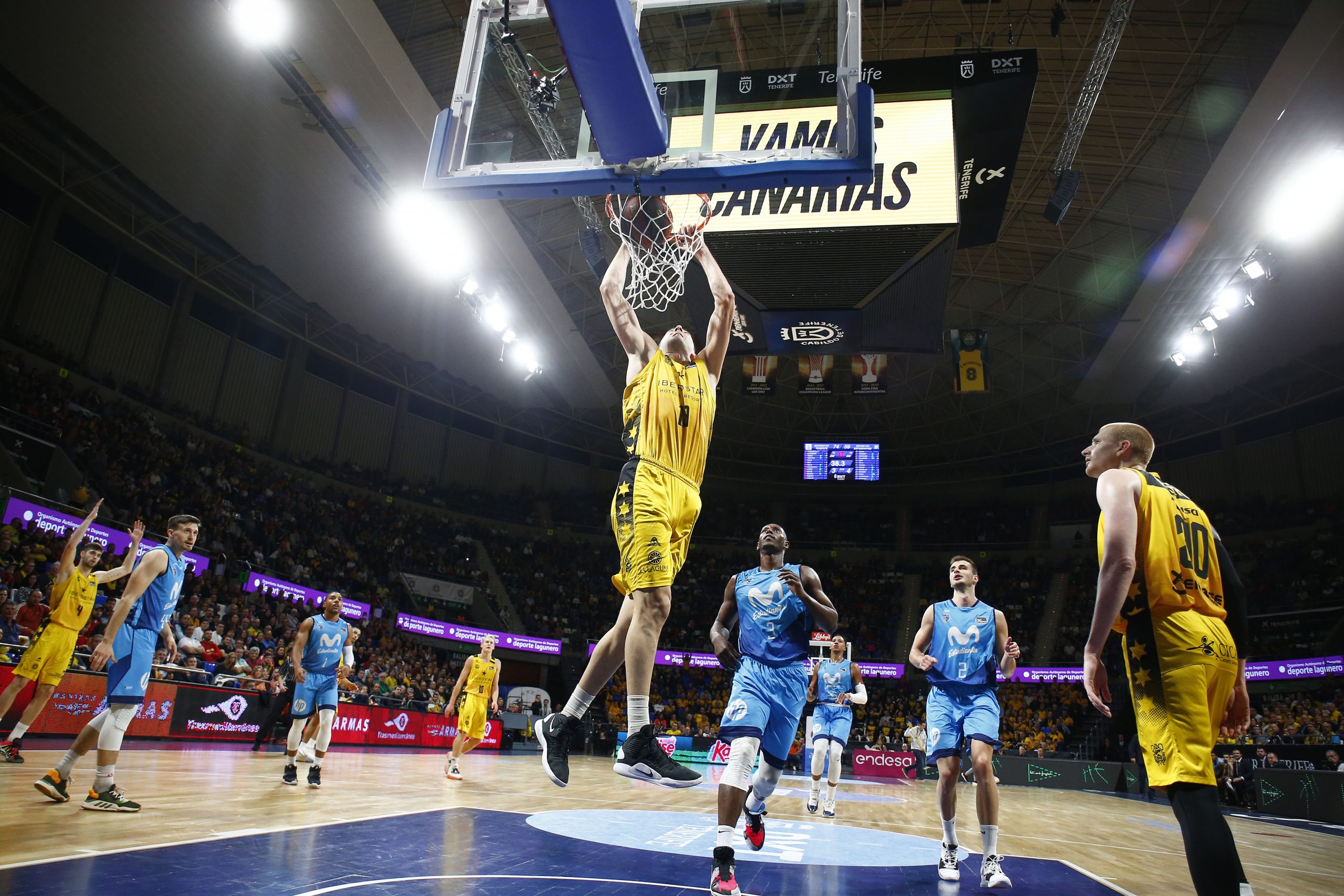 Defensa, rebote… y ¡equipo! El Iberostar Tenerife estrenó este sábado con buen pie la segunda vuelta de la Liga Endesa al imponerse al Movistar Estudiantes (76-59) en un triunfo rumiado desde la defensa, el dominio bajo aros y la solidez del bloque.