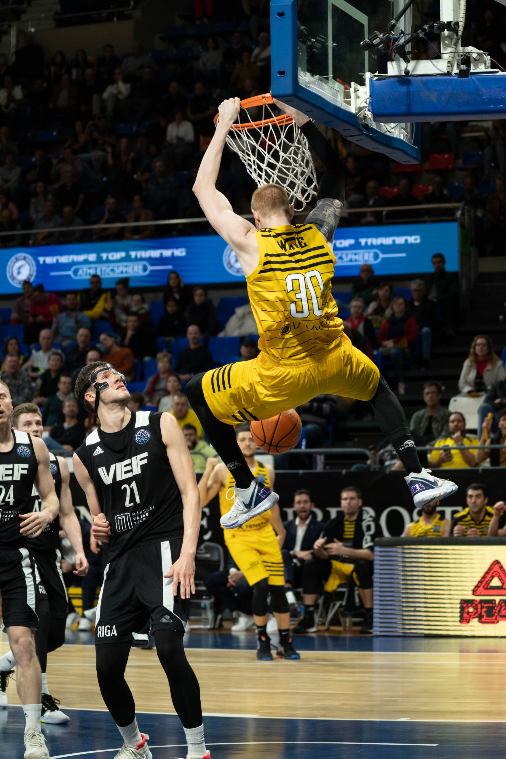 Triunfo sin concesiones. El Iberostar Tenerife superó este martes noche con claridad al VEF Riga, actual campeón letón (92-59), para sumar su undécima alegría continental del curso y aferrarse al liderato del Grupo C de la #BasketballCL.