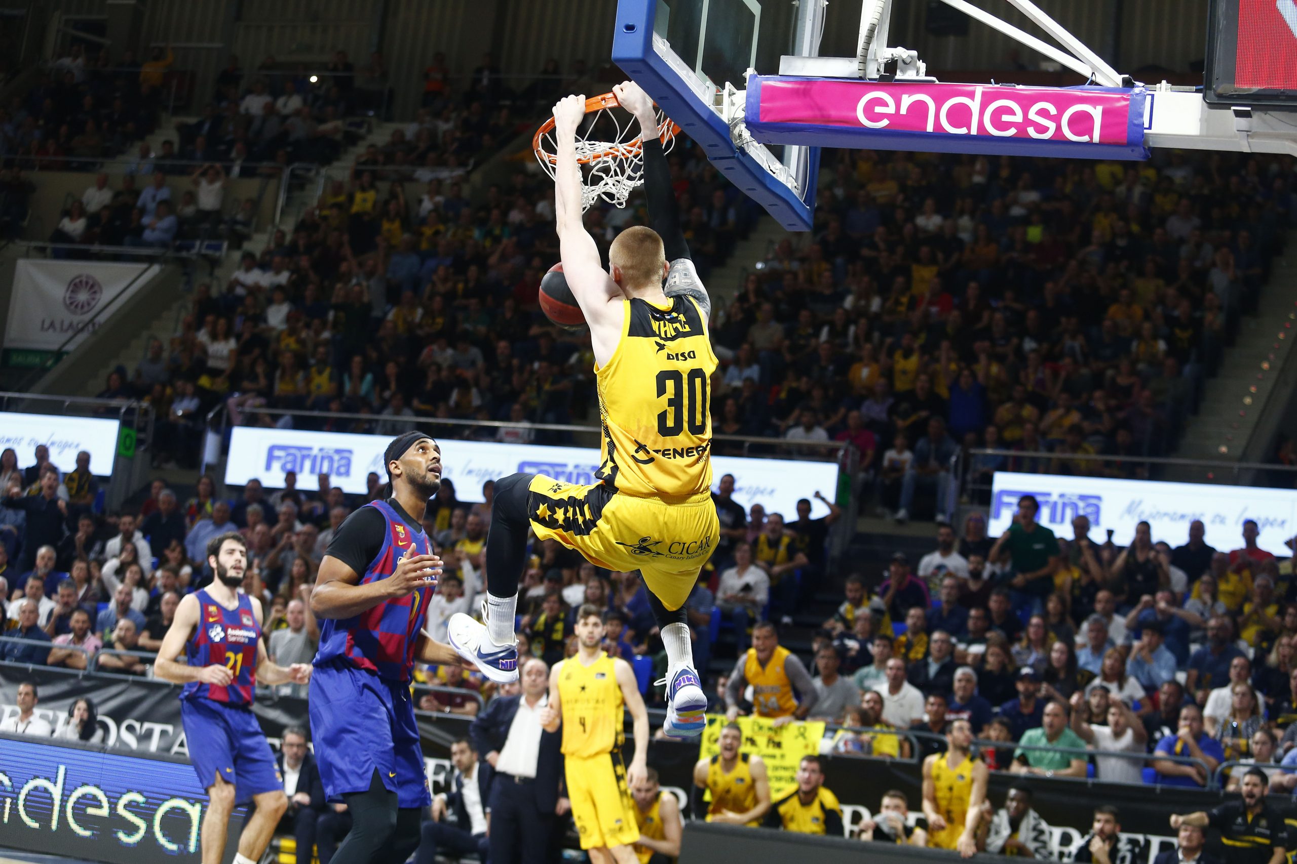 Sus segundas opciones en ataque, el poder interior de Mirotic, Davies y compañía, y la irrupción de Abrines sostuvieron al equipo azulgrana en medio del ambientazo vivido este domingo en el recinto de Los Majuelos.
