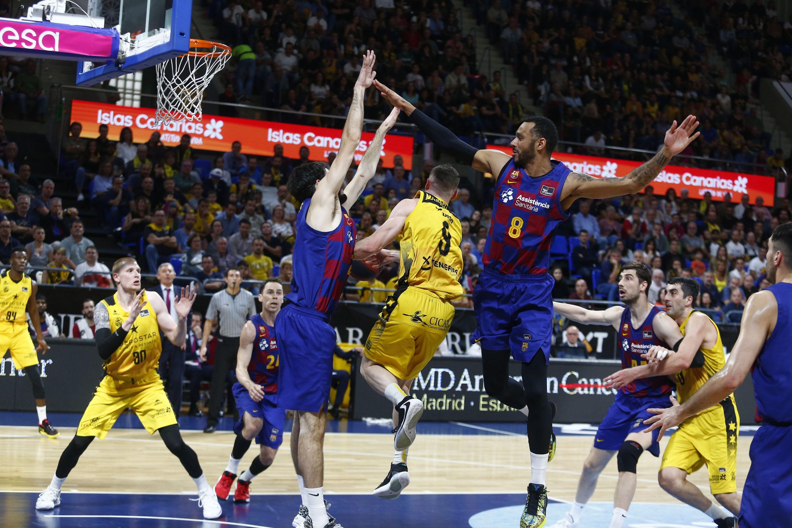 En un Santiago Martín lleno a reventar, el equipo tinerfeño vendió muy cara su derrota, opositó con argumentos a la sorpresa y exhibió un gran nivel defensivo para creer hasta el último suspiro en sus posibilidades. El Barça, con un plantillón, tuvo que emplearse a fondo para salir victorioso del Santiago Martín.