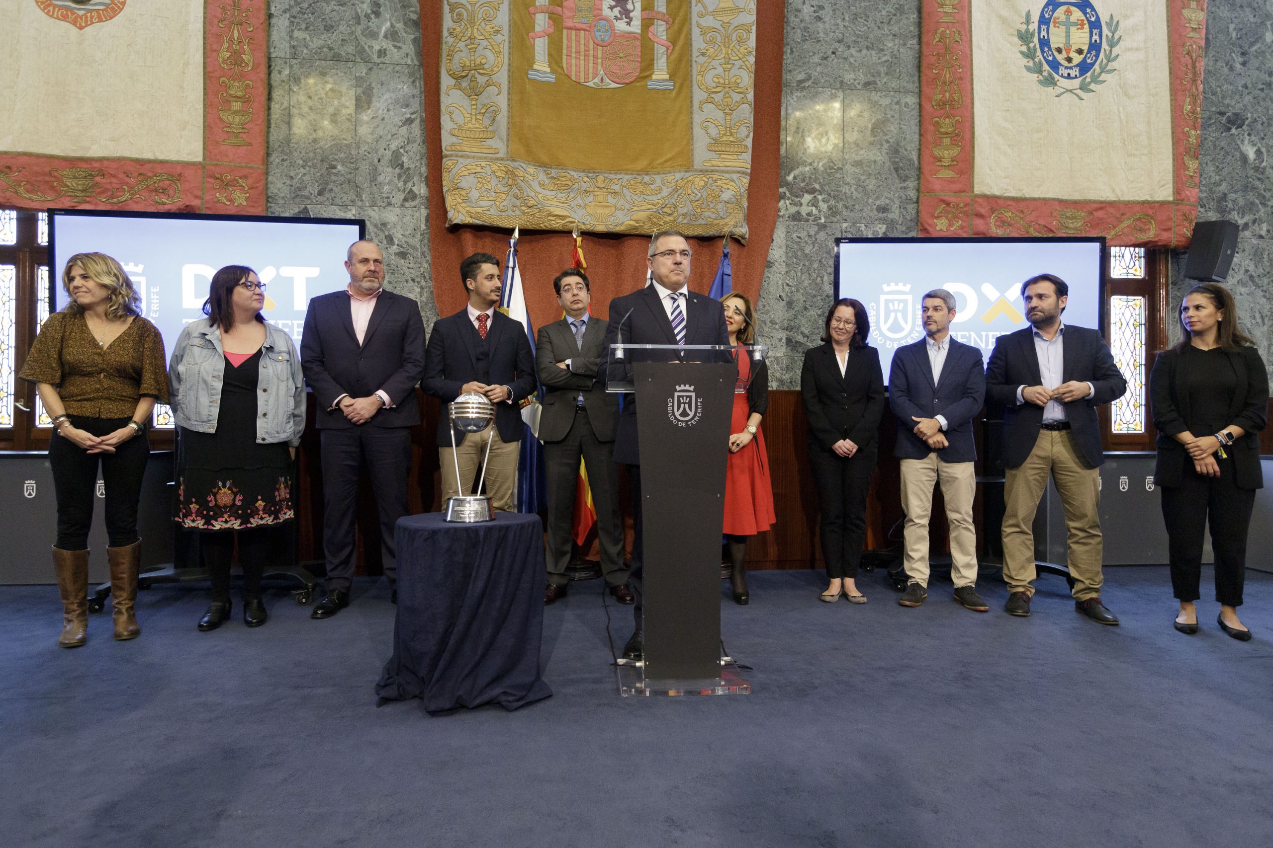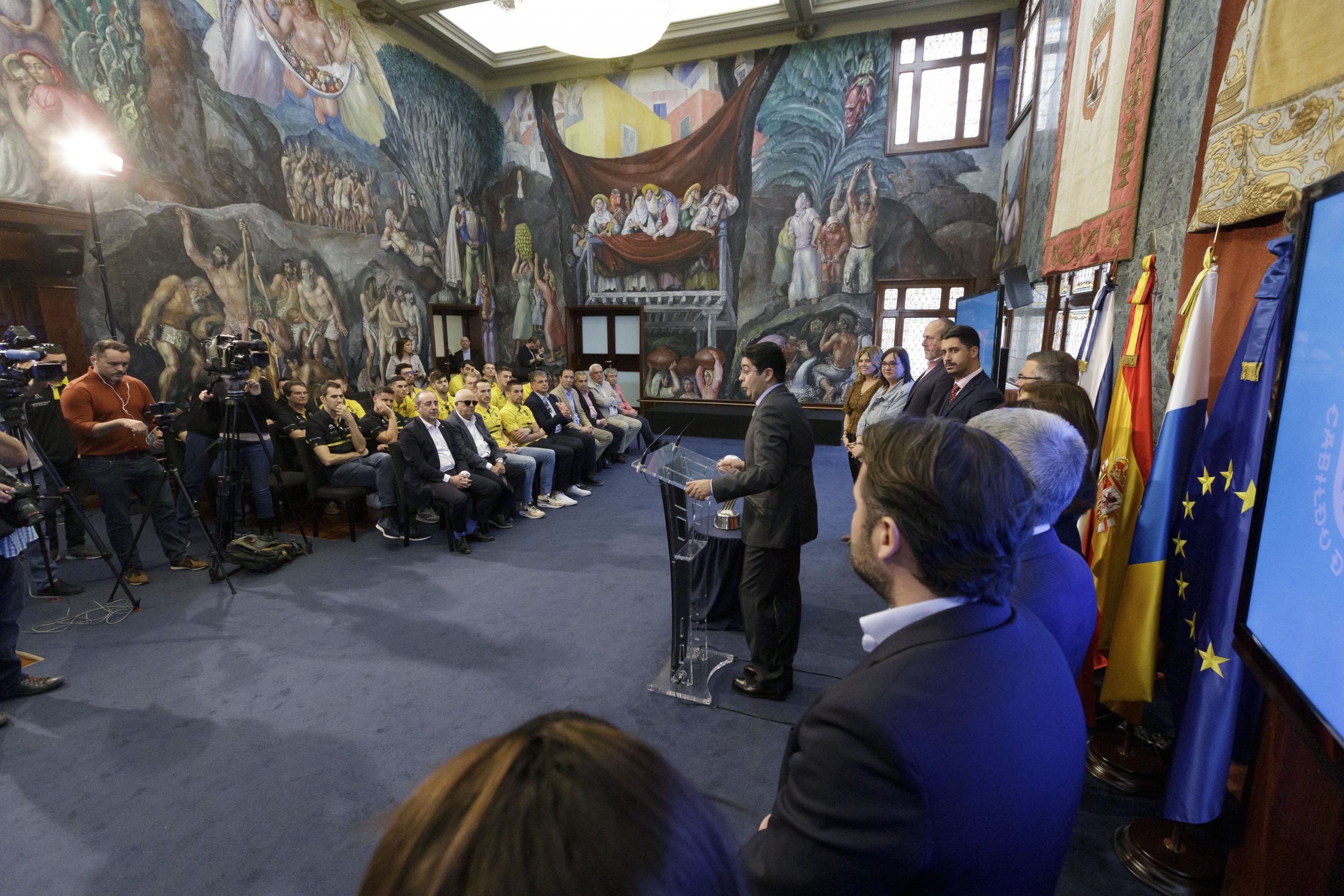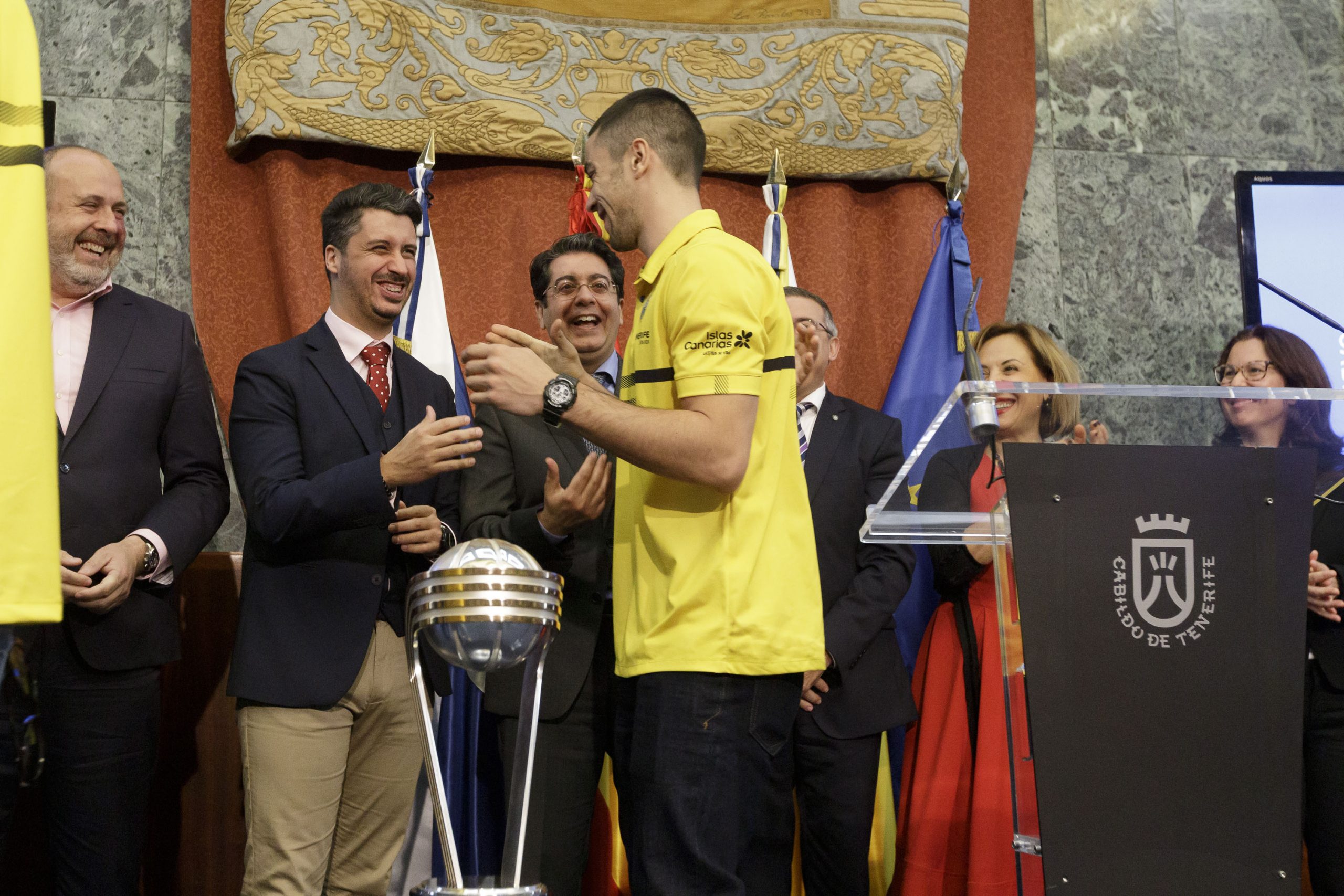 lunes, 10 febrero, 2020 - 06:02El Iberostar Tenerife recibió este mediodía el homenaje del Cabildo Insular por su conquista de la Copa Intercontinental 2020, con un reconocimiento oficial de toda la corporación, celebrado en el Salón Noble. El presidente del Cabildo, Pedro Martín, dio la bienvenida “a la casa de todos los tinerfeños y tinerfeñas” al equipo, a su cuerpo técnico y a directiva y les transmitió “el agradecimiento y el orgullo de toda la sociedad tinerfeña” por llevar el nombre de la Isla a toda Europa, así como el respaldo de la corporación ante sus próximos retos.