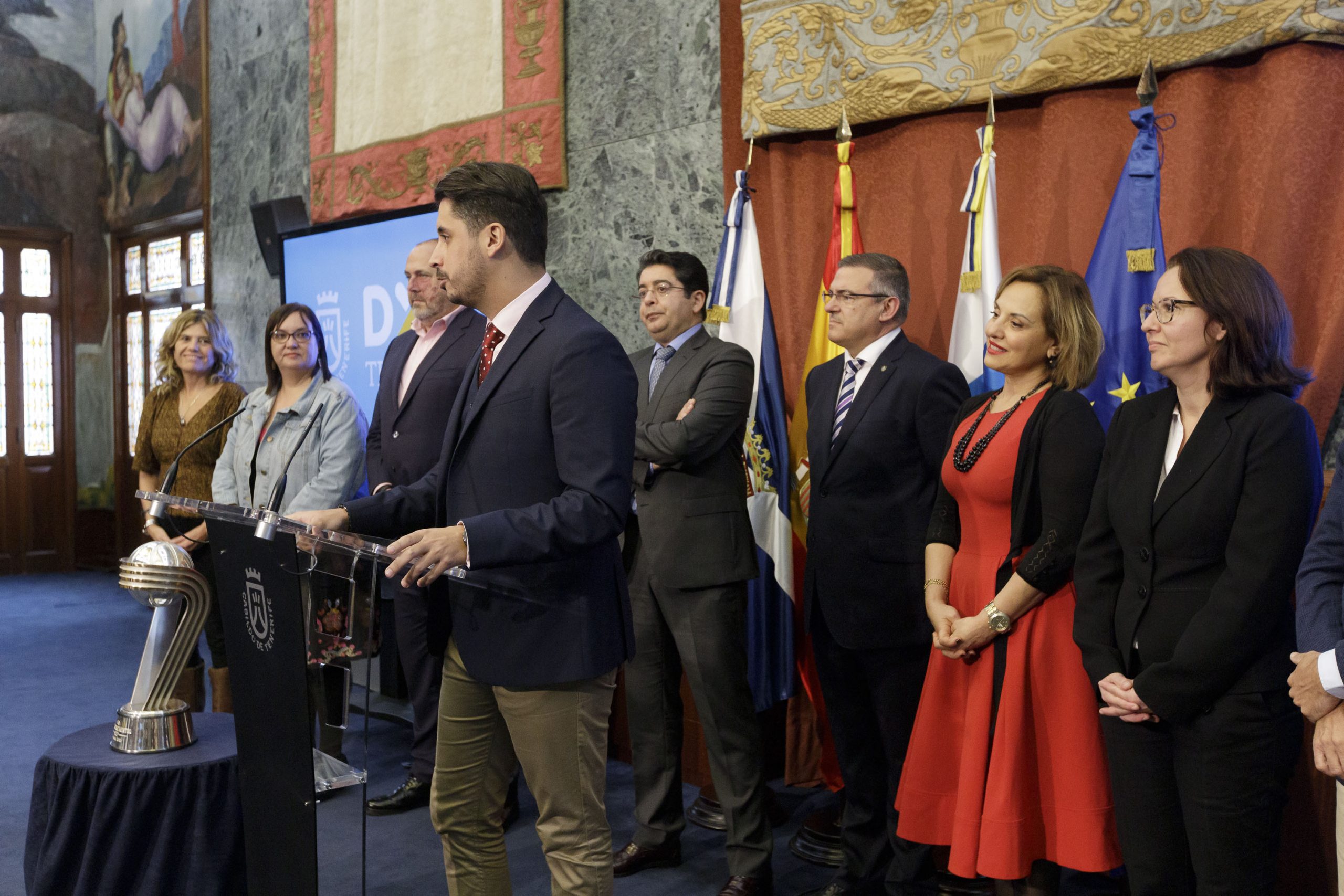El acto contó con representantes de todos los grupos políticos, asi como con las autoridades del Ayuntamiento de La Laguna. Así, el alcalde, Luis Yeray Gutiérrez, afirmó que “hablar del Canarias es hablar de La Laguna” y también manifestó su gratitud al equipo por “llevar la bandera de La laguna por Europa”.