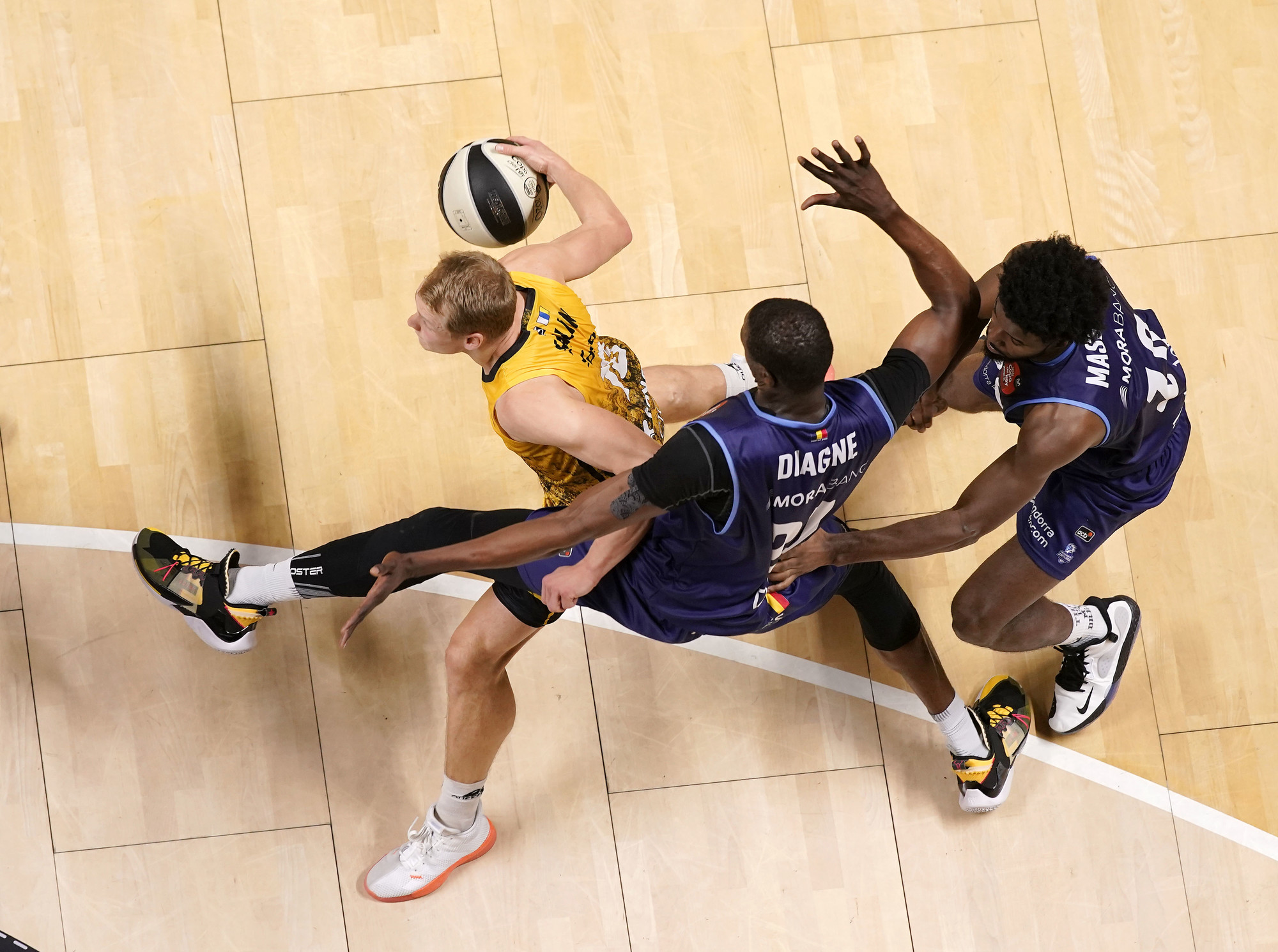 El equipo aurinegro tuvo el carácter y el empuje suficientes para entrar con opciones en el epílogo, después de que el choque se le llegara a poner realmente muy cuesta arriba (44-54). Una vez en las jugadas decisivas, una falta clara no pitada a Konate, a tres segundos para el cierre, y las continuas visitas al tiro libre del Morabanc, condenaron a los canaristas.