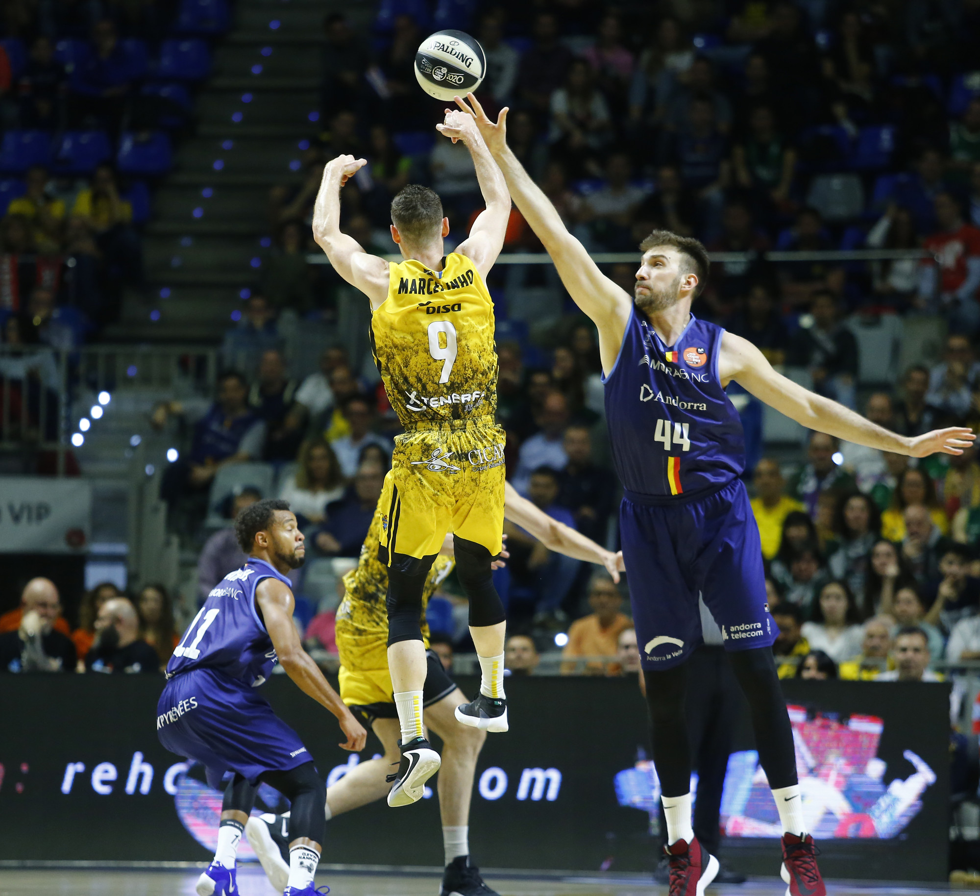 No fue un partido nada sencillo para los tinerfeños, pese a que su puesta en escena fue brillante: dos triples consecutivos de Marcelinho y Lahou (6-0) y varias acciones interiores a Bogris saldadas con canasta (10-4). Aún así, el Andorra reaccionó exprimiendo las virtudes de sus pequeños.