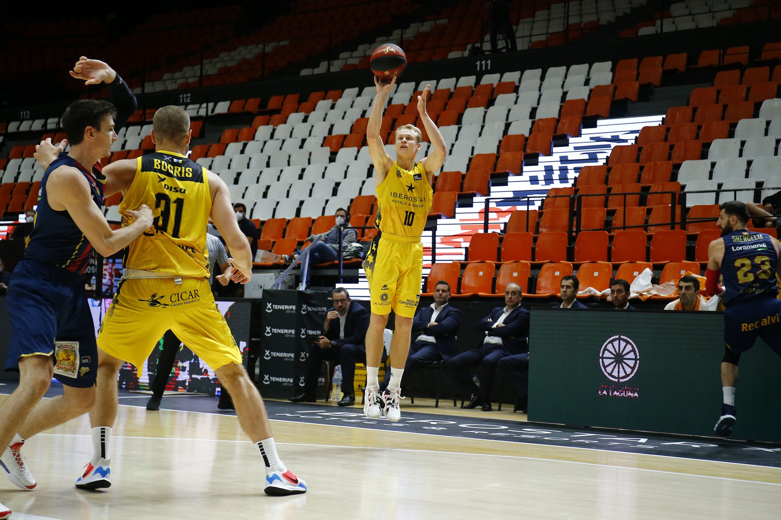 viernes, 19 junio, 2020 - 11:06Una reacción sin premio. El Iberostar Tenerife cedió este viernes noche ante el potente Kirolbet Baskonia (79-72), tras ir a remolque durante casi todo el encuentro, amagar con la remontada en la recta final y quedarse luego a medias ante un rival, el baskonista, que impuso su físico para impedir que los aurinegros hicieran su juego.