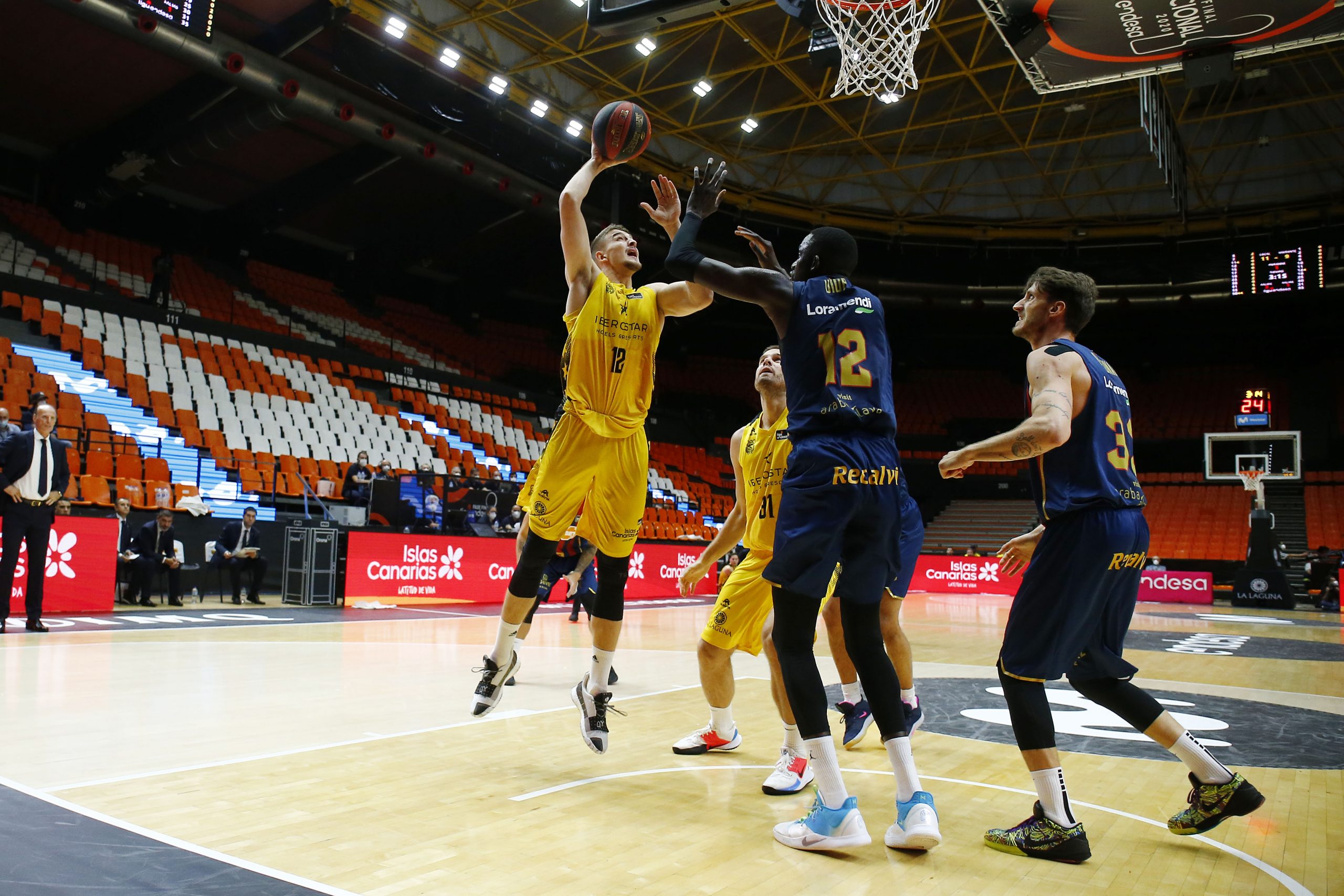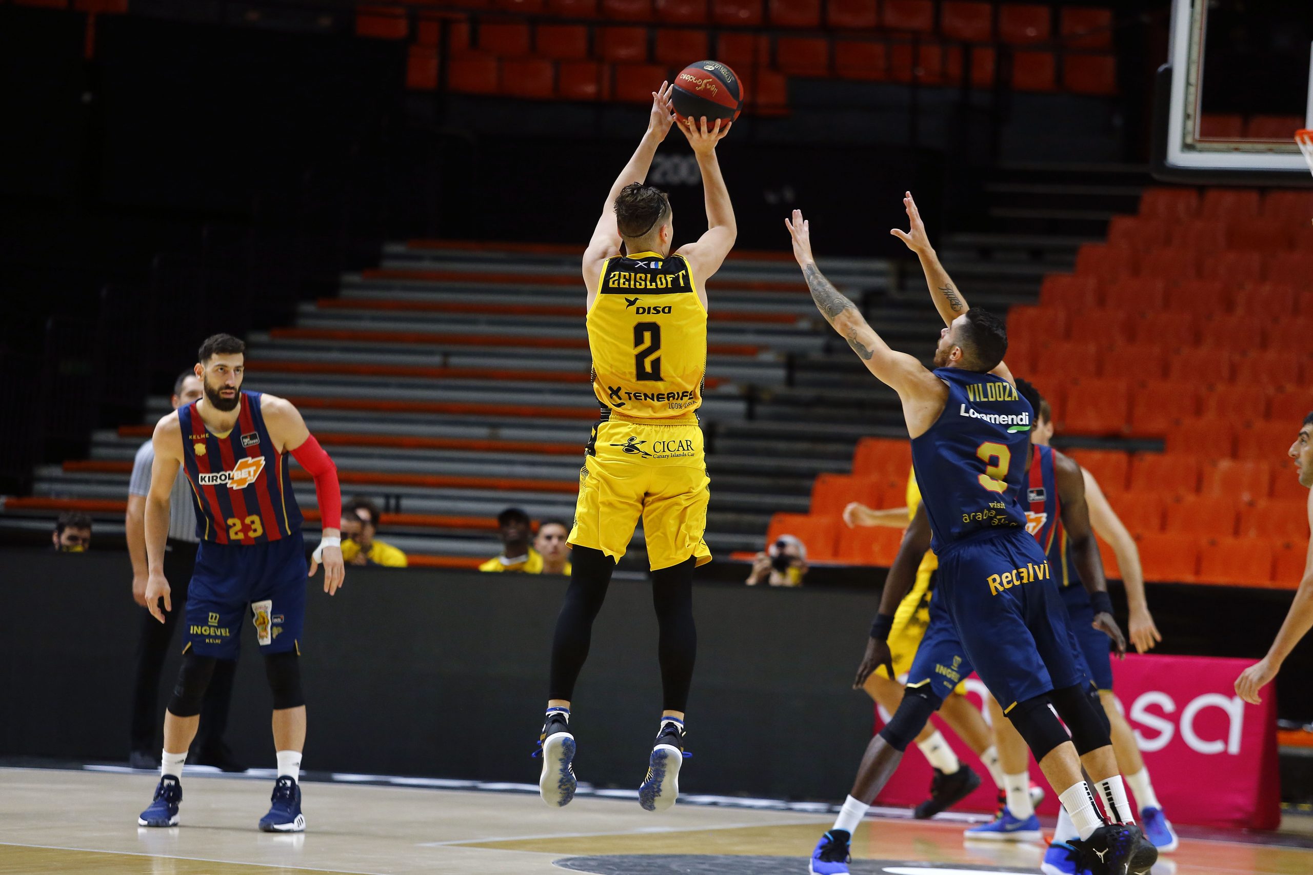 La intimidación del Baskonia se dejó notar desde los primeros minutos. Los errores canaristas fueron castigados con un parcial de 8-0 (17-9) y a partir de ahí el grupo de Txus Vidorreta tuvo que remar siempre con el partido cuesta arriba. Tornike Shengelia (7 asistencias y 34 de valoración) leyó bien la zona insular para explotar el juego con sus interiores; mientras que al Iberostar Tenerife le costaba jugar con fluidez en ataque.