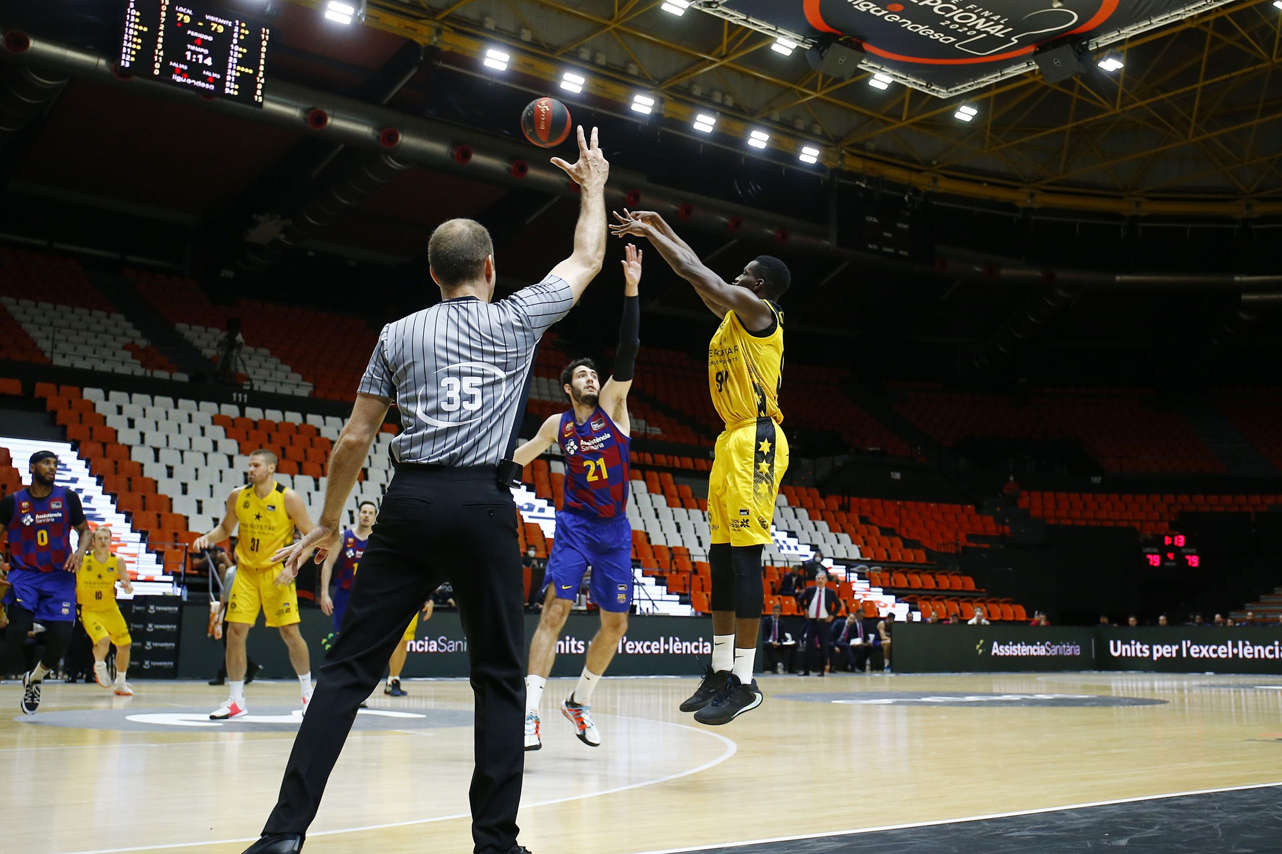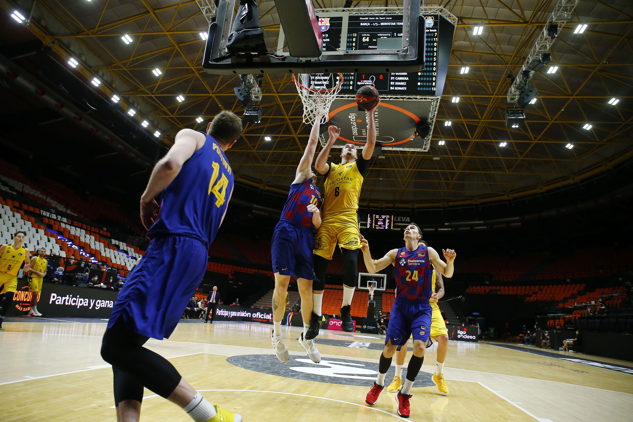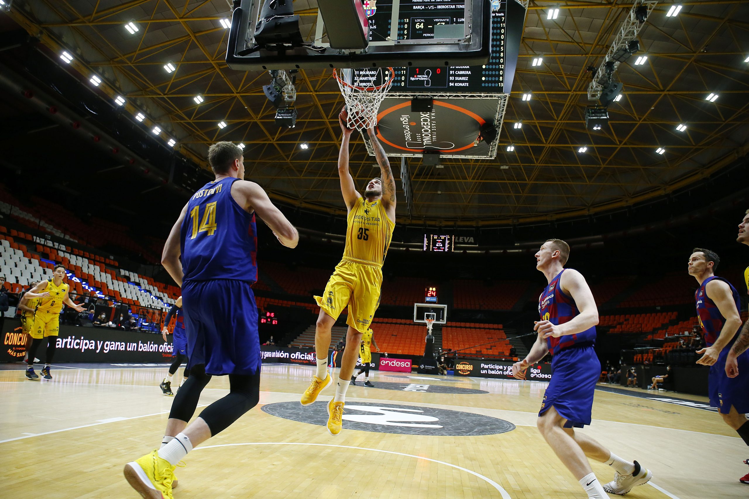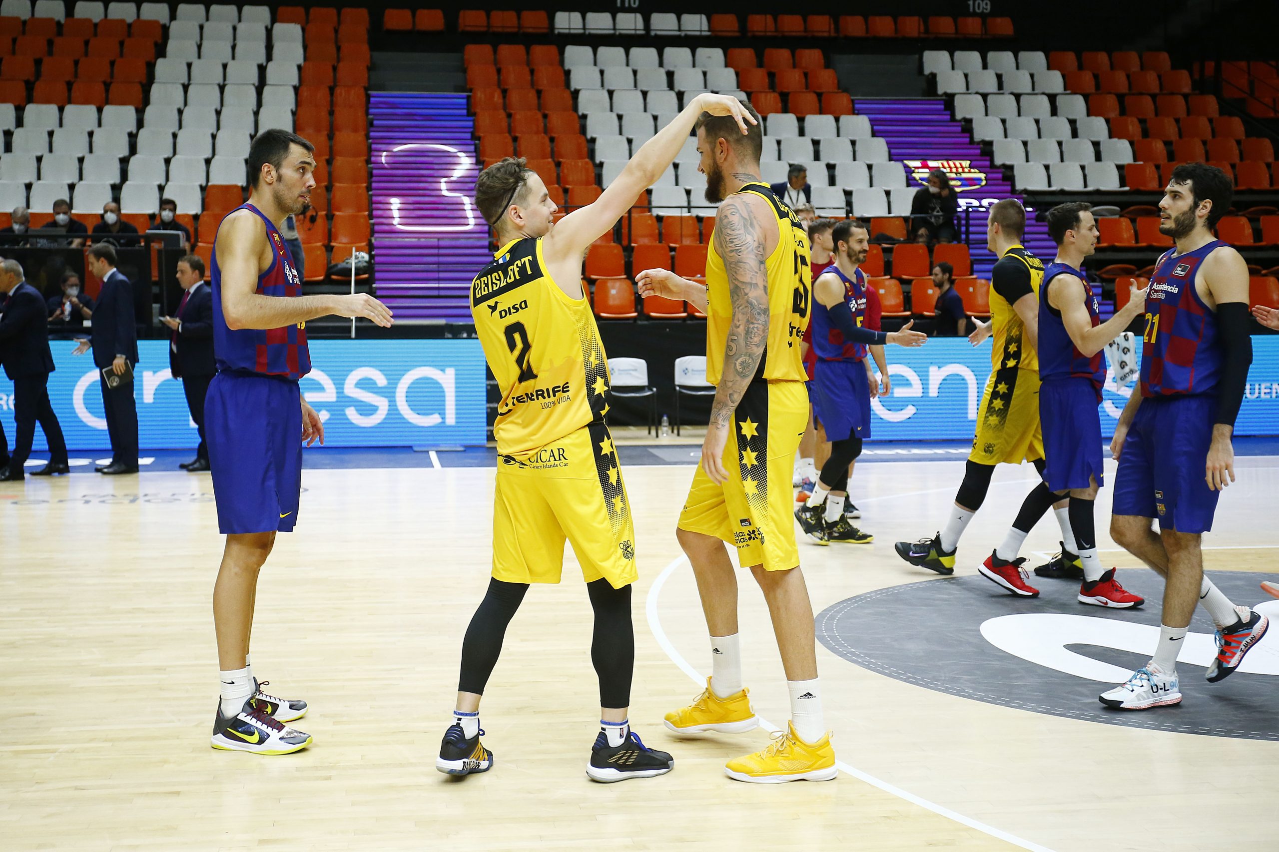 viernes, 26 junio, 2020 - 12:06Acaba con la cabeza alta. El Iberostar Tenerife despidió este jueves noche su participación en la #FaseFinalExcepcional con una victoria de mérito ante el Barça (86-87). Dos tiros libres de Fran Guerra, con el crono casi a cero, certificaron el buen trabajo de los aurinegros para cerrar con una sonrisa la ACB 19/20, a costa de un rival, el azulgrana, que alcanzaba invicto (4/0) la última entrega de la #F12.