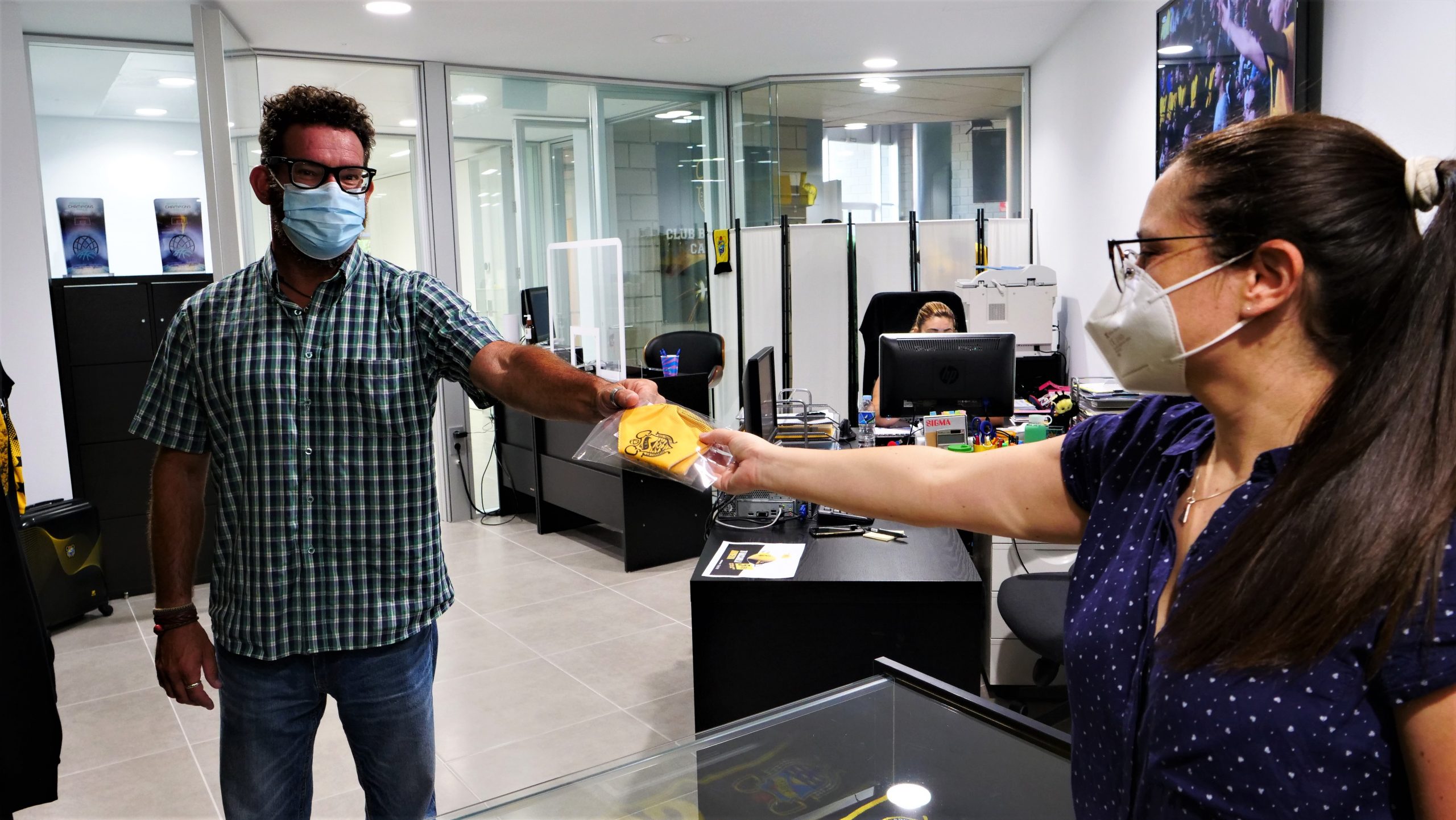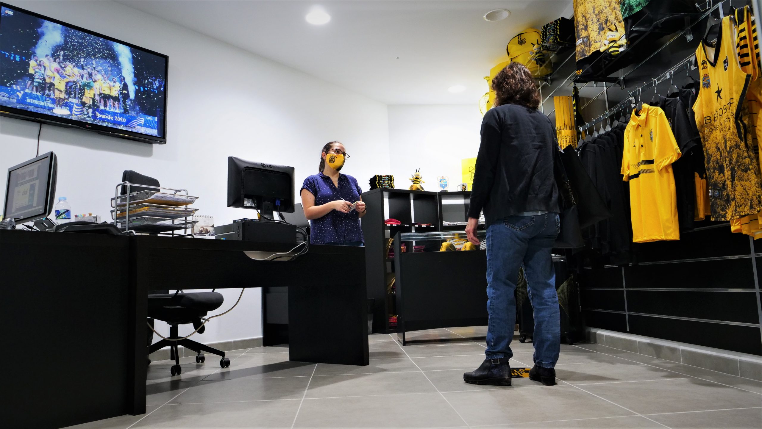 La reapertura coincidió con la venta de la nueva mascarilla aurinegra, un modelo comercial de la marca CBC, que ha tenido una gran respuesta de venta entre los aficionados y que puede adquirirse igualmente en las tiendas acordadas con Base Deportes Natalia en distintos puntos de la Isla.