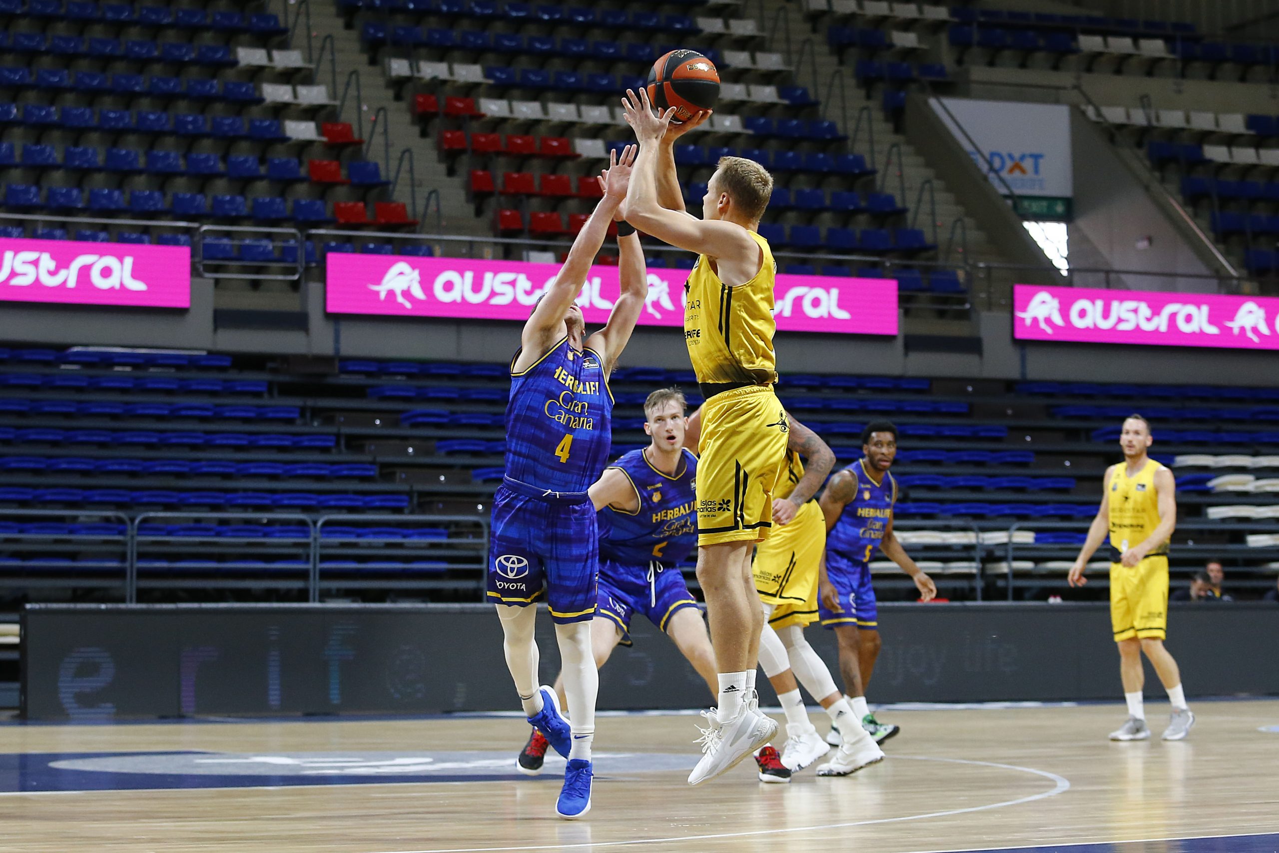 sábado, 29 agosto, 2020 - 03:08El Iberostar Tenerife cayó este sábado por 73-76 ante el Herbalife Gran Canaria, en otro buen test de pretemporada para seguir afinando la puesta a punto. El desacierto en los triples y en los tiros libres de los aurinegros, junto a un parcial de 0-10 de los visitantes camino del último cuarto, privaron a los de Txus Vidorreta de optar con solidez al triunfo, pese a amagar con una nueva remontada.