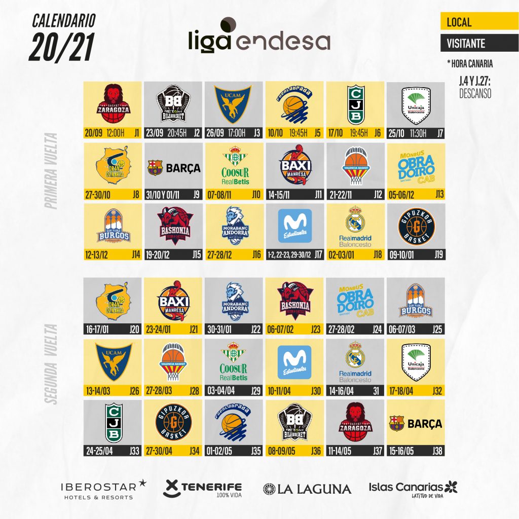 miércoles, 2 septiembre, 2020 - 02:09El Iberostar Tenerife conoce ya cual será su hoja de ruta en la Liga Endesa 2020-21. El grupo de Txus Vidorreta debutará en casa, ante el Casademont Zaragoza, el domingo 20 de septiembre (Santiago Martín, 12:00 hora insular).