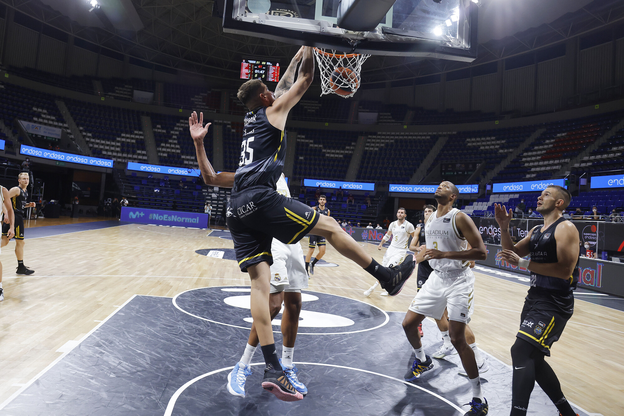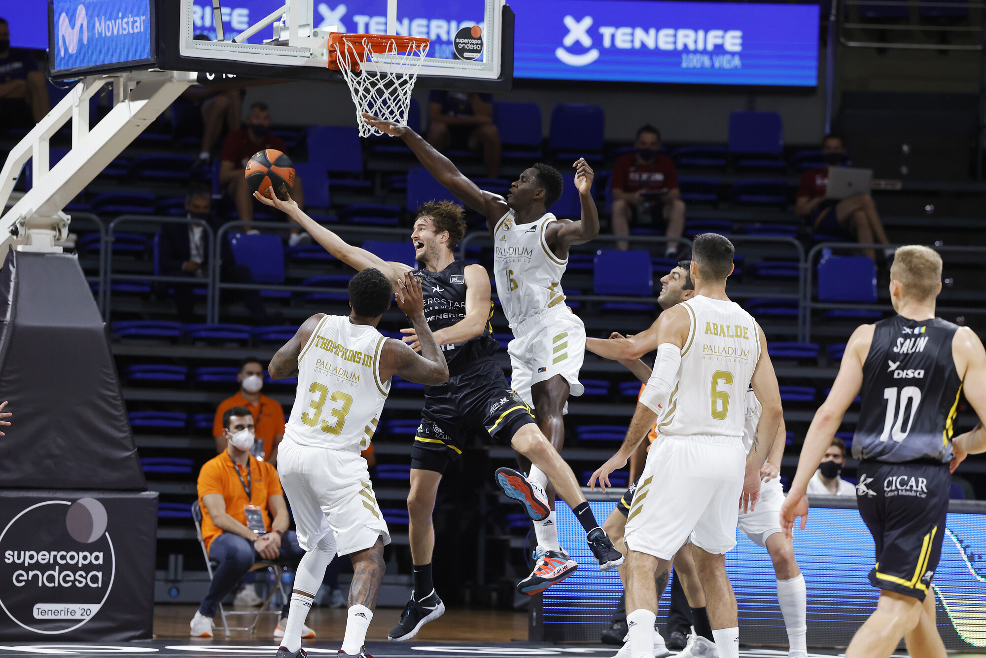 Varias acciones de mérito de Álex López propiciaron otro acercamiento, pero la reacción aurinegra no pasó de ahí. Rudy volvió a aparecer camino del cierre y el Real Madrid, con siete jugadores con nueve o más de valoración, acabaría certificando su triunfo y el billete a la final. Mientras, el Iberostar Tenerife sumaba un nuevo y exigente encuentro que ha de servirle para encontrar su mejor versión de cara al importante reto del miércoles.