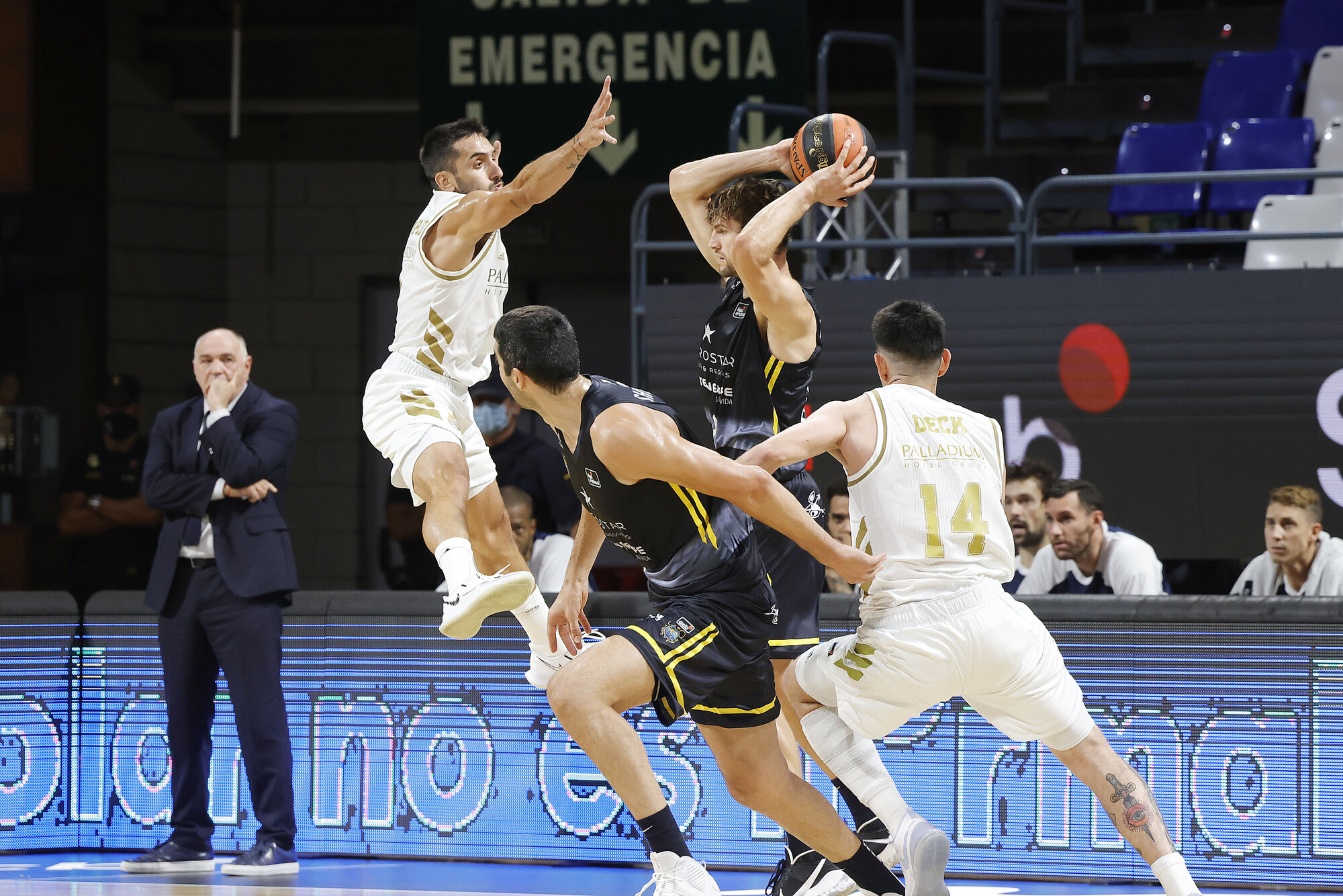 El choque nació con un lastre importante para los aurinegros, cuyas pérdidas iniciales, cuatro en apenas tres minutos, permitieron correr a los de Pablo Laso (8-18), con Gabriel Deck como primera amenaza significativa de una lista de prestaciones no exenta de argumentos. Pese a todo, el Canarias se sobrepuso y trató de reengancharse al encuentro en varias ocasiones.