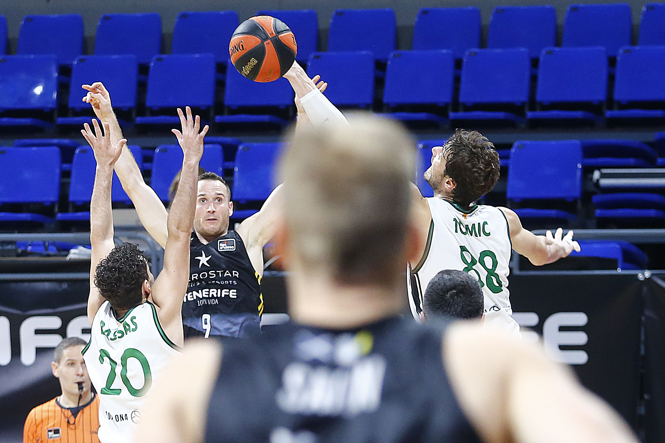 Tras la pausa, el Canarias trató de mejorar prestaciones bajo tablero, reduciendo un poco la brecha abierta en la pelea del rebote y respondió con entereza a los intentos del Joventut por llevar el partido a su trinchera (67-62 tras triple de Fitipaldo). El choque enfilaba su final muy parejo y el Iberostar Tenerife manejó bien sus opciones.