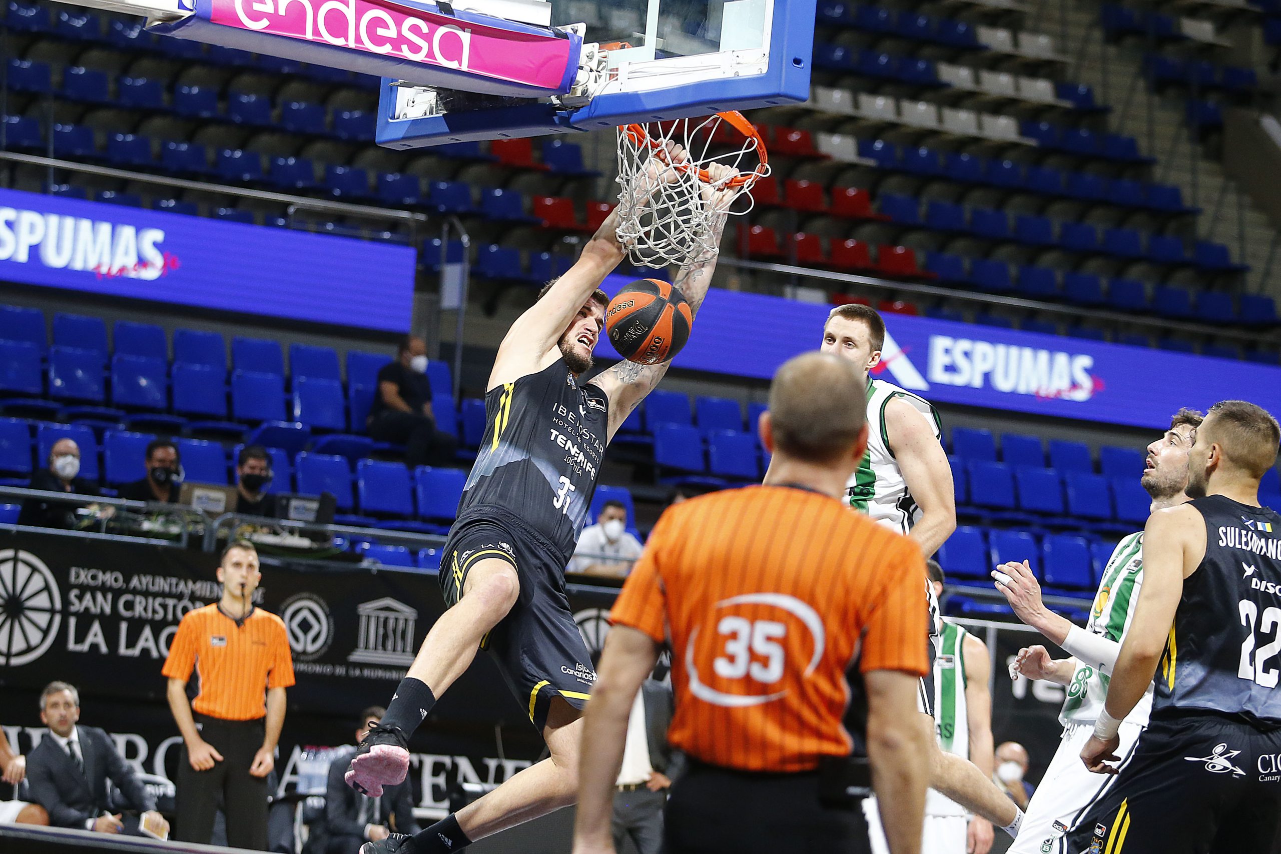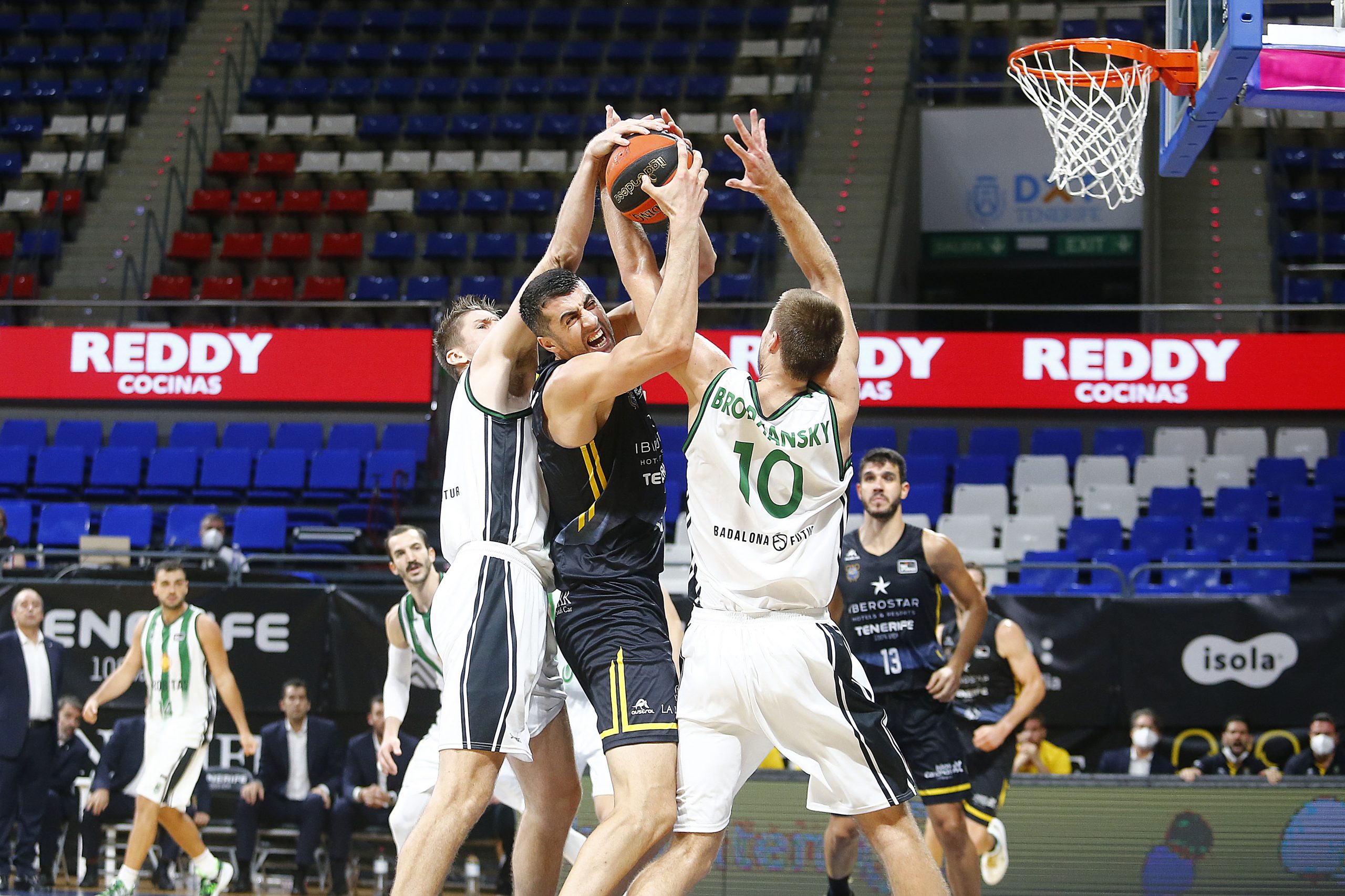 No lo puso nada fácil la Penya, que demostró el porqué de su excelente inicio de temporada (los de Badalona acumulaban un balance de 7/1 entre Eurocup y ACB antes de visitar el Santiago Martín). El partido nació y creció igualado, sin un dueño claro de los acontecimientos. El Iberostar Tenerife trataba de imponer su ritmo ante un Joventut que exprimía el rebote ofensivo (tres en el primer cuarto) y los puntos al cuatro de Brodziansky (13-14).