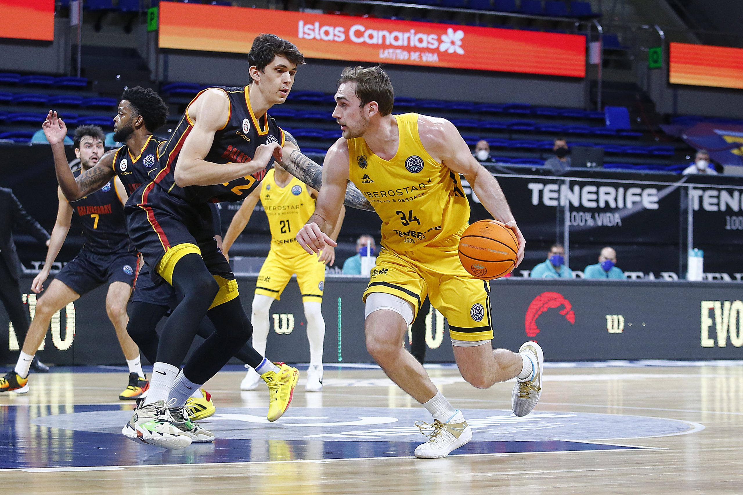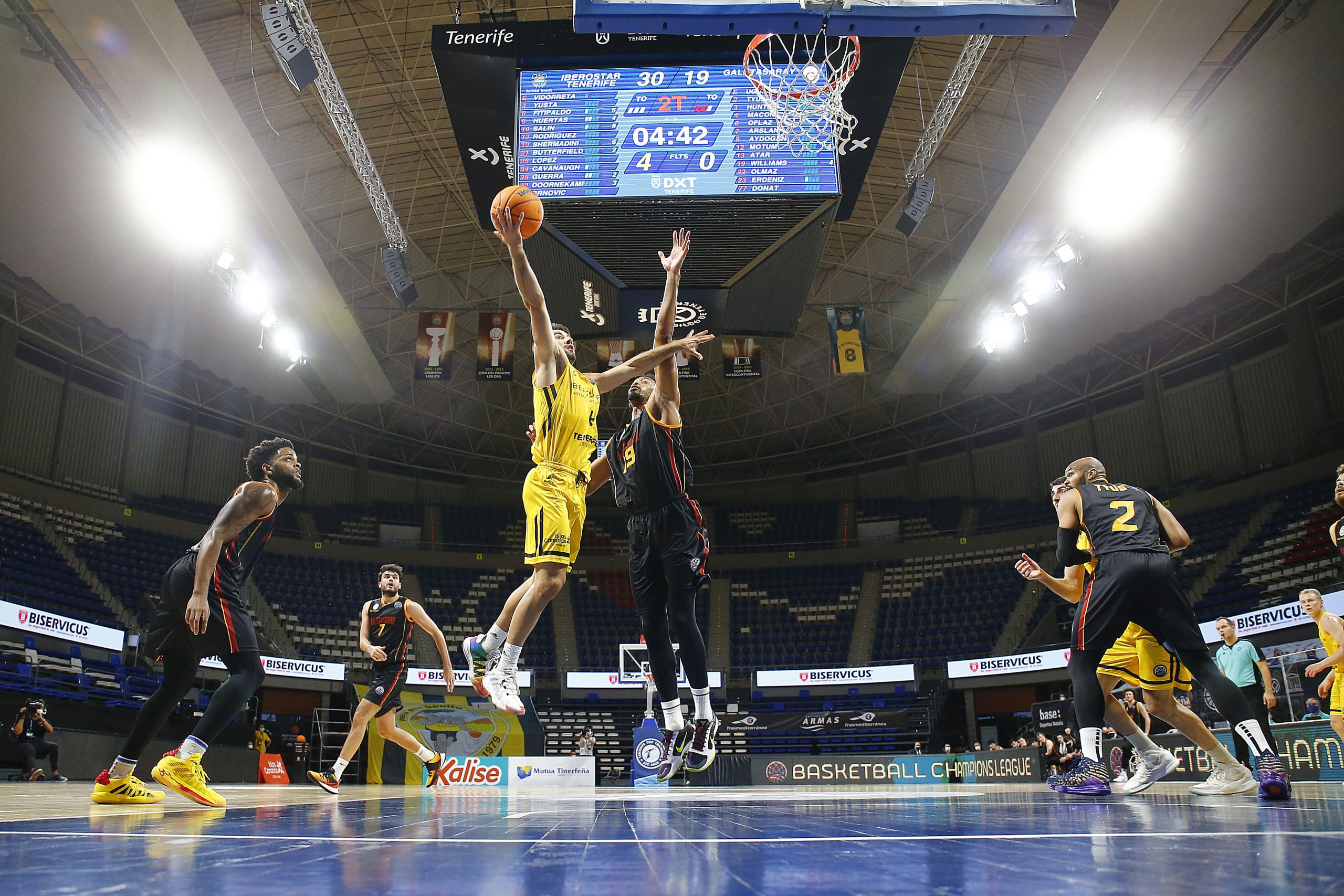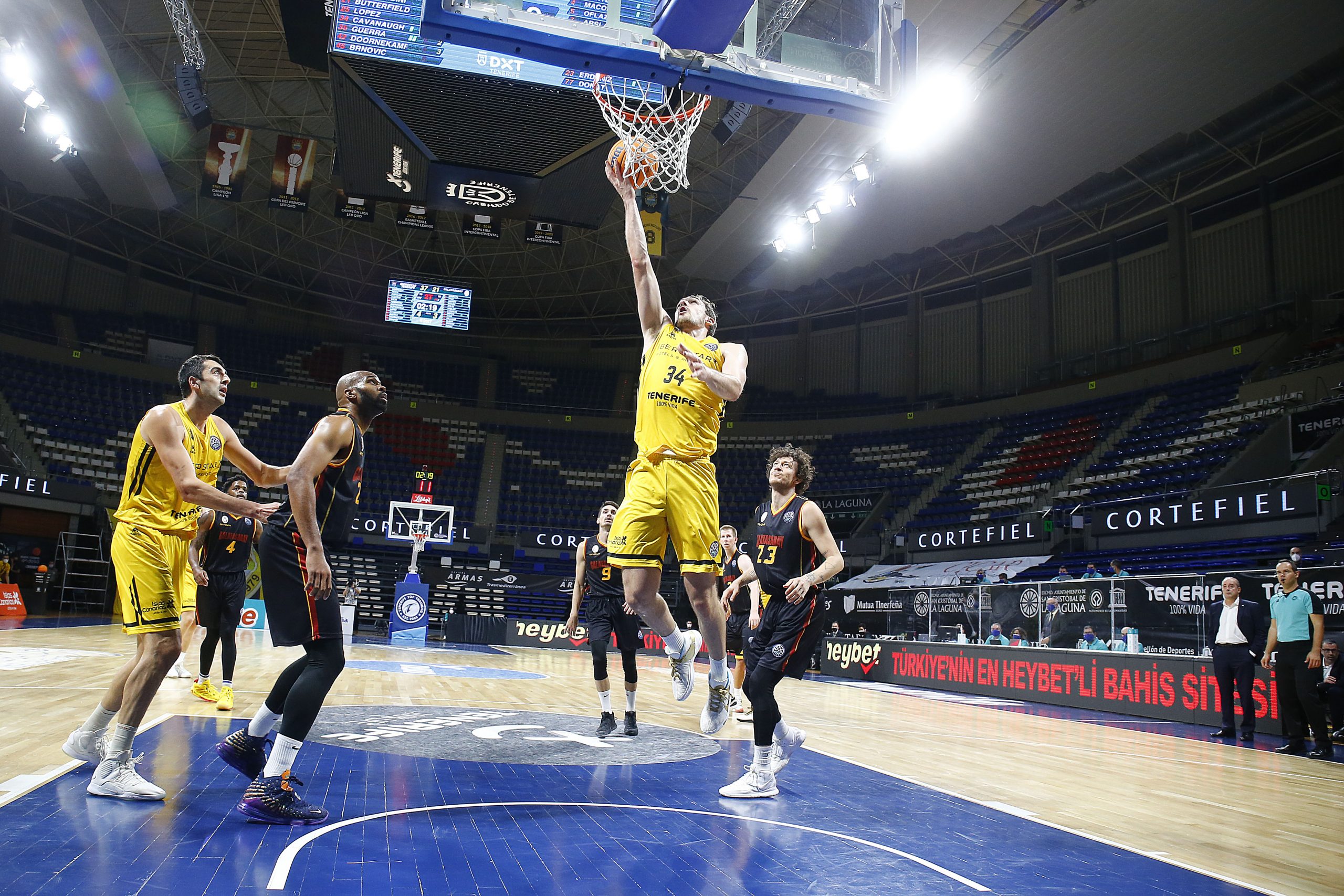 Tras la pausa, el Galatasaray se encomendó a la calidad indudable de sus americanos y trató de aprovechar la tercera falta de Gio y Aaron, que les mandaba al banquillo; pero el Iberostar Tenerife aguantó el tipo. Bruno Fitipaldo movió bien a los suyos (ocho asistencias); y Fran Guerra y Tyler Cavanaugh encadenaron varias acciones de mérito (62-45, tras triple del estadounidense).