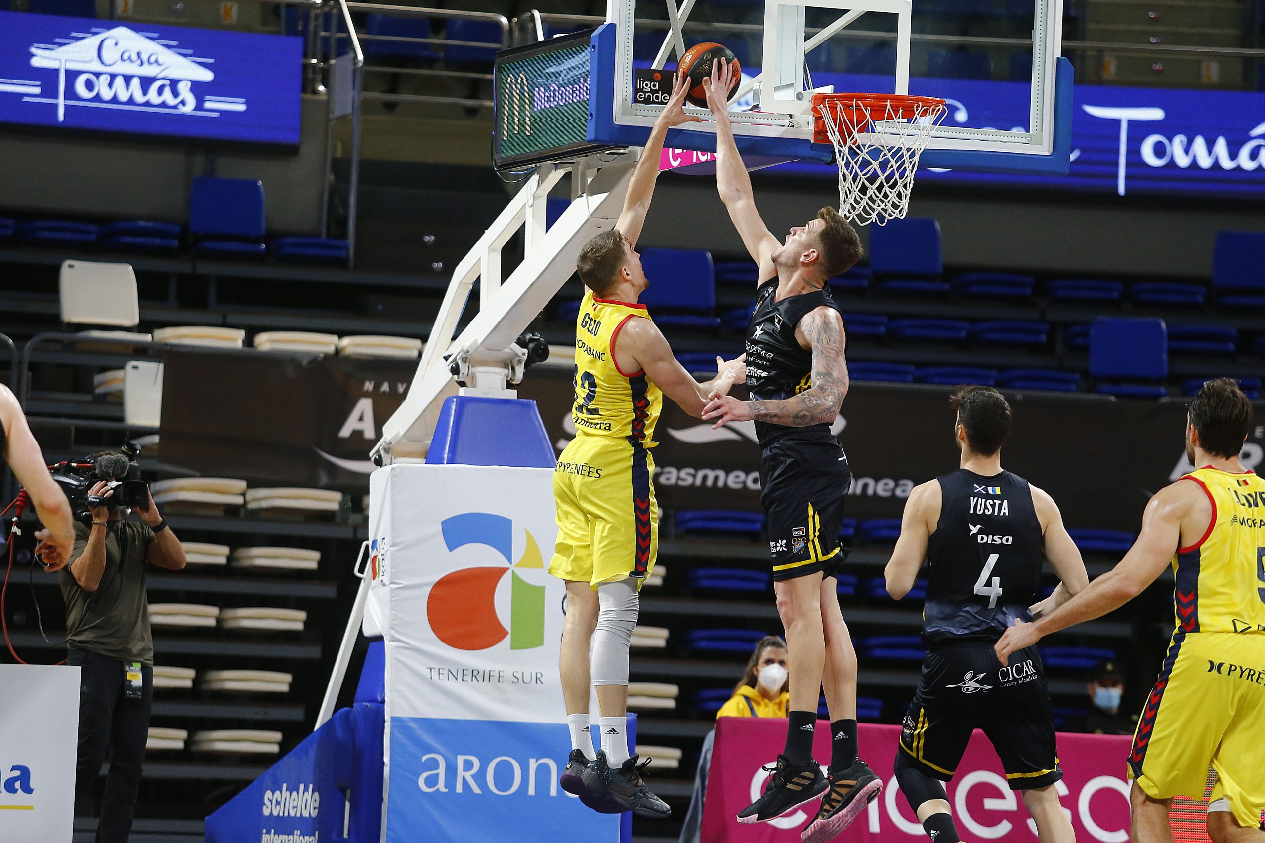 Fue tras la pausa cuando el equipo insular puso de golpe todas sus cartas sobre la mesa. Los buenos minutos de Fran Guerra, varias acciones de mérito de Tyler Cavanaugh y Santi Yusta, matazo incluido para la videoteca; y el acierto desde el 6,75 (seis triples en el tercer cuarto) dispararon a los locales en el electrónico: 75-55 para cerrar el cuarto, con un jugadón de pizarra culminado desde la esquina por Spencer Butterfield.
