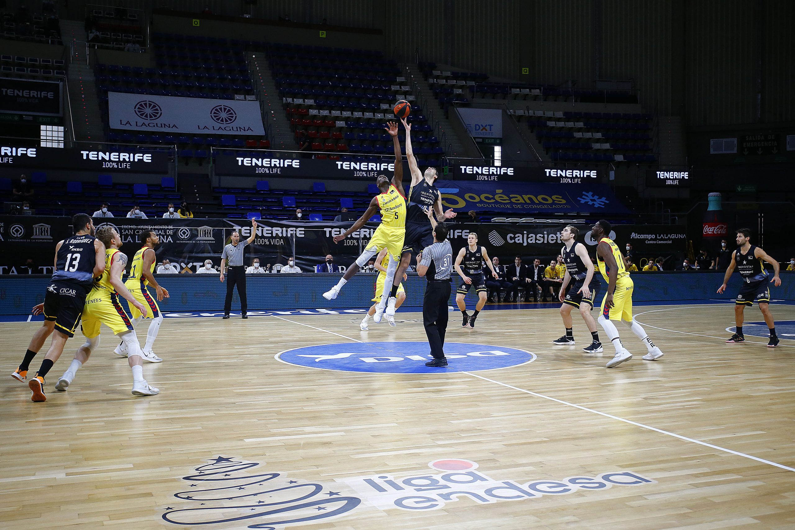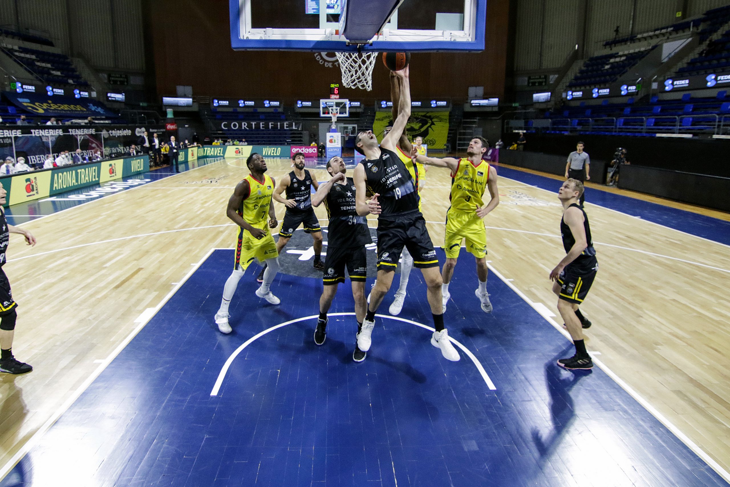 El Iberostar Tenerife se mantenía en la pomada, gracias al poder interior de un Gio Shermadini (20 de nota al receso) que acaparó de inicio el protagonismo ofensivo de los laguneros. Conforme avanzó el choque, el Canarias fue imponiendo su ritmo y sus señas de identidad. El grupo de Txus Vidorreta comenzó a jugar al son de Huertas (seis asistencias al intermedio) y la llegada de los triples colorearon el guión de aurinegro (45-40, min. 20).