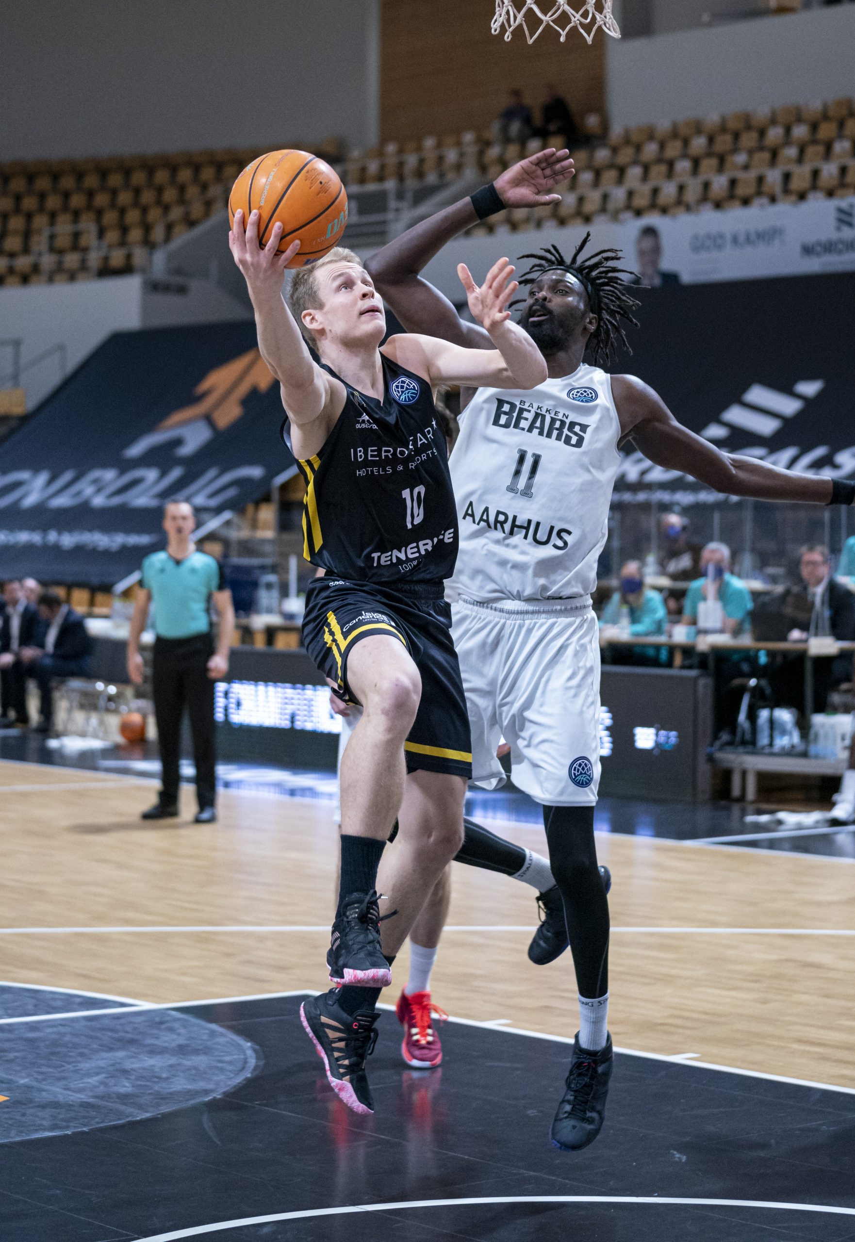 El Iberostar Tenerife no pudo cerrar con triunfo su participación en la fase de grupos de la #BasketballCL, al caer este miércoles noche en su visita al Bakken Bears danés (96-78). Pese a la derrota, los aurinegros pasan al Top 16 como primeros de grupo, tras un balance de cuatro victorias y dos partidos perdidos.